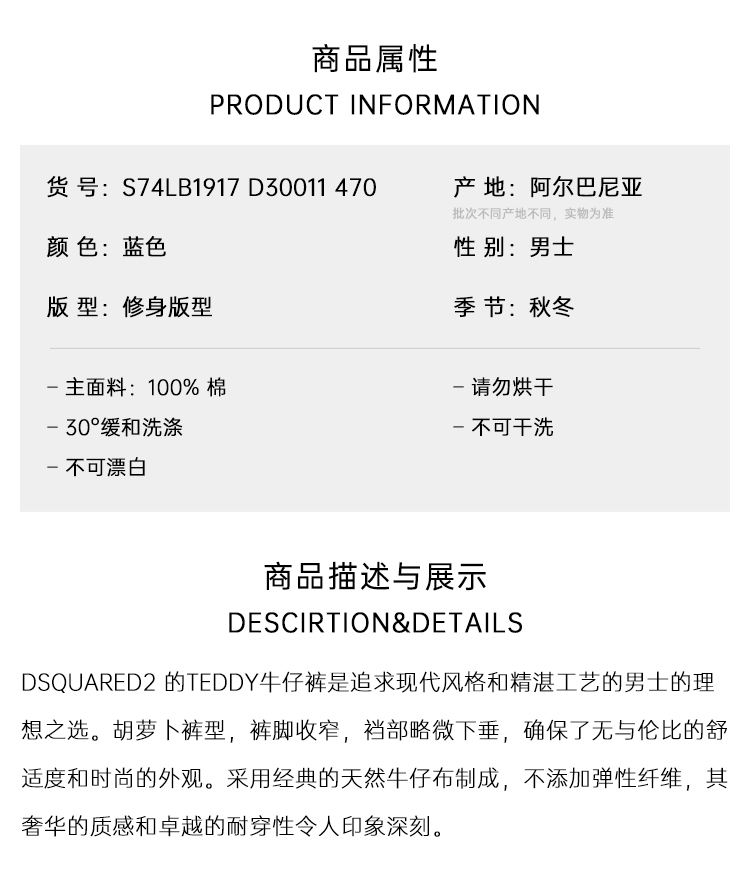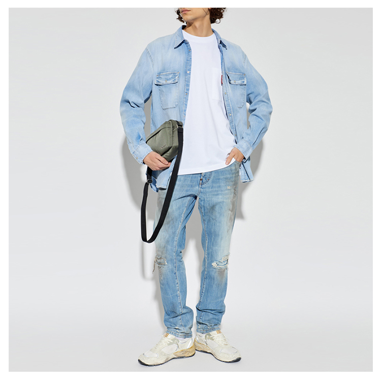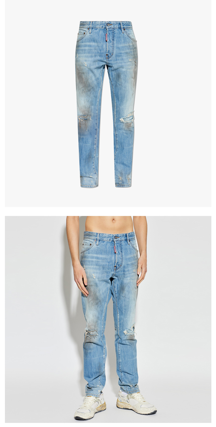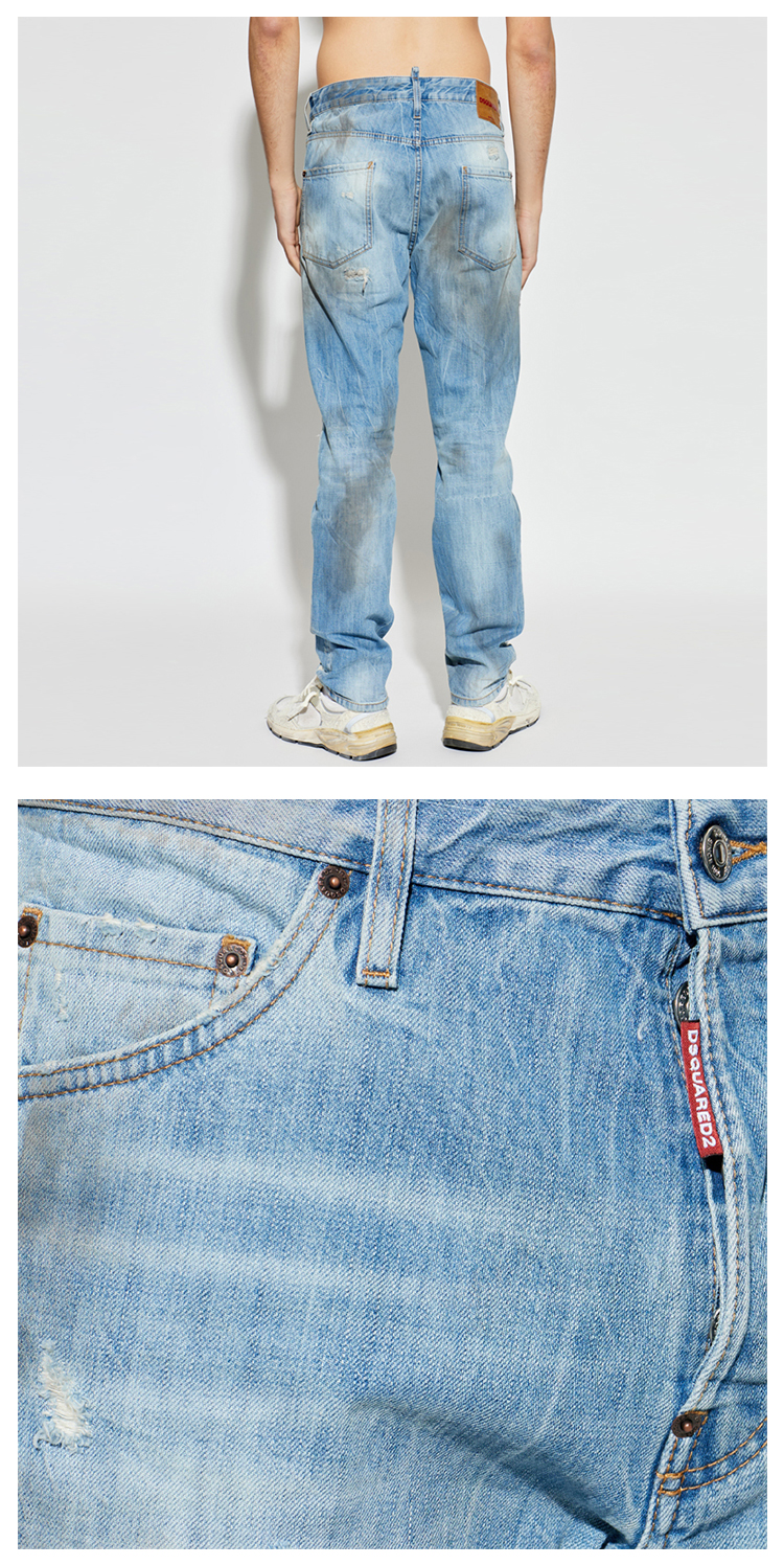 DSQUARED2 男士字母徽标贴片做旧牛仔裤 蓝色 S74LB1917 D30011 470
