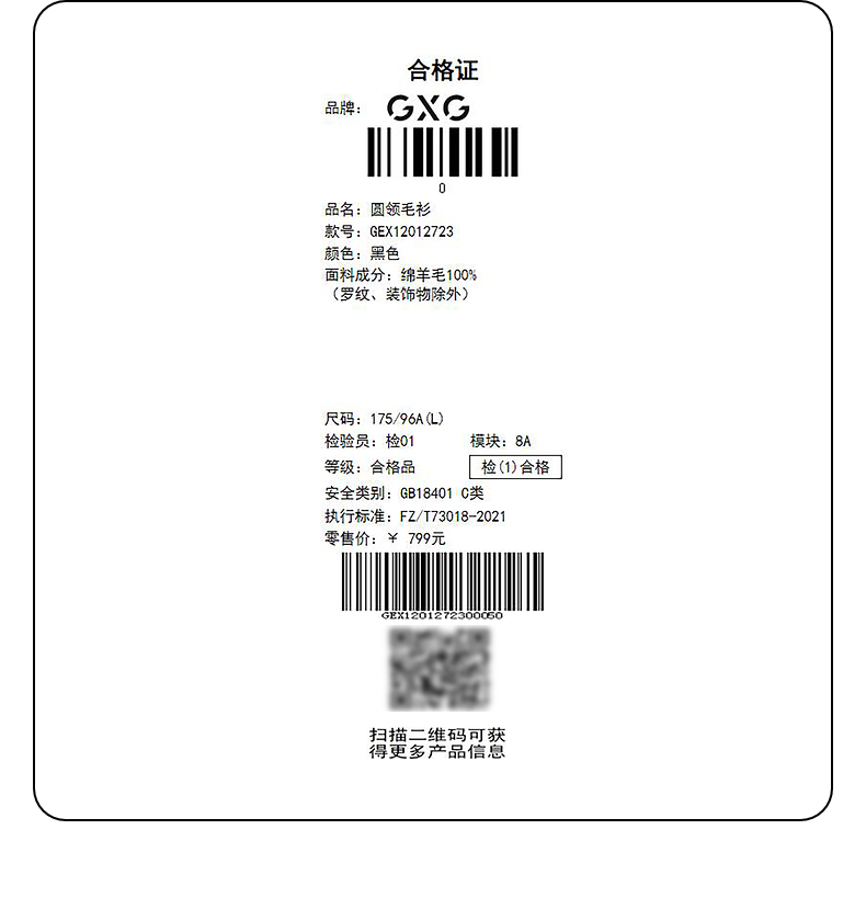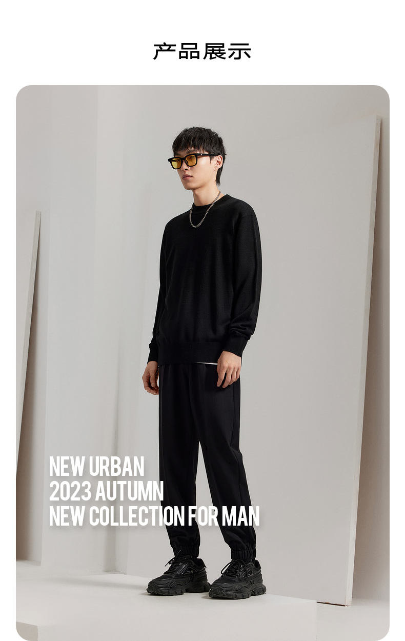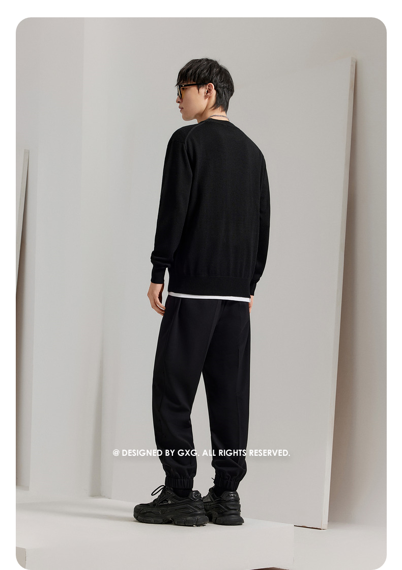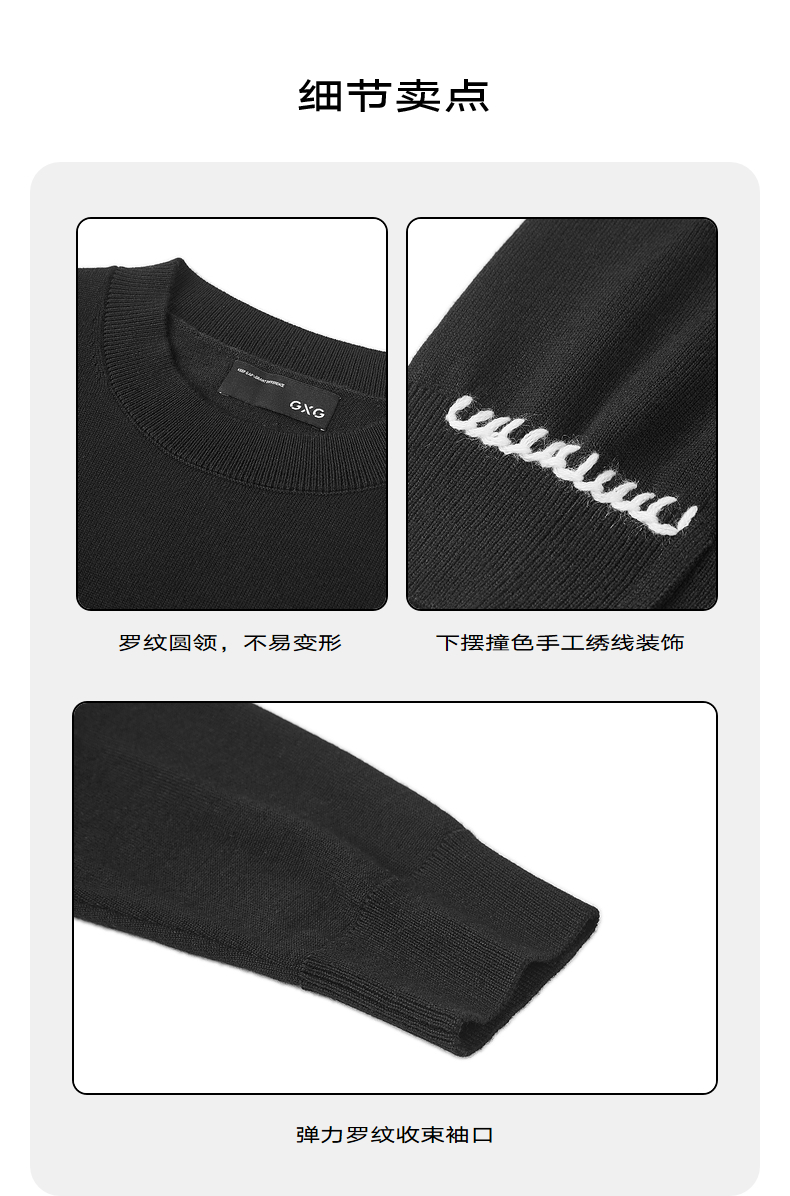 GXG男装 黑色纯羊毛可机洗保暖针织衫毛衣 热卖毛衫 GEX12012723