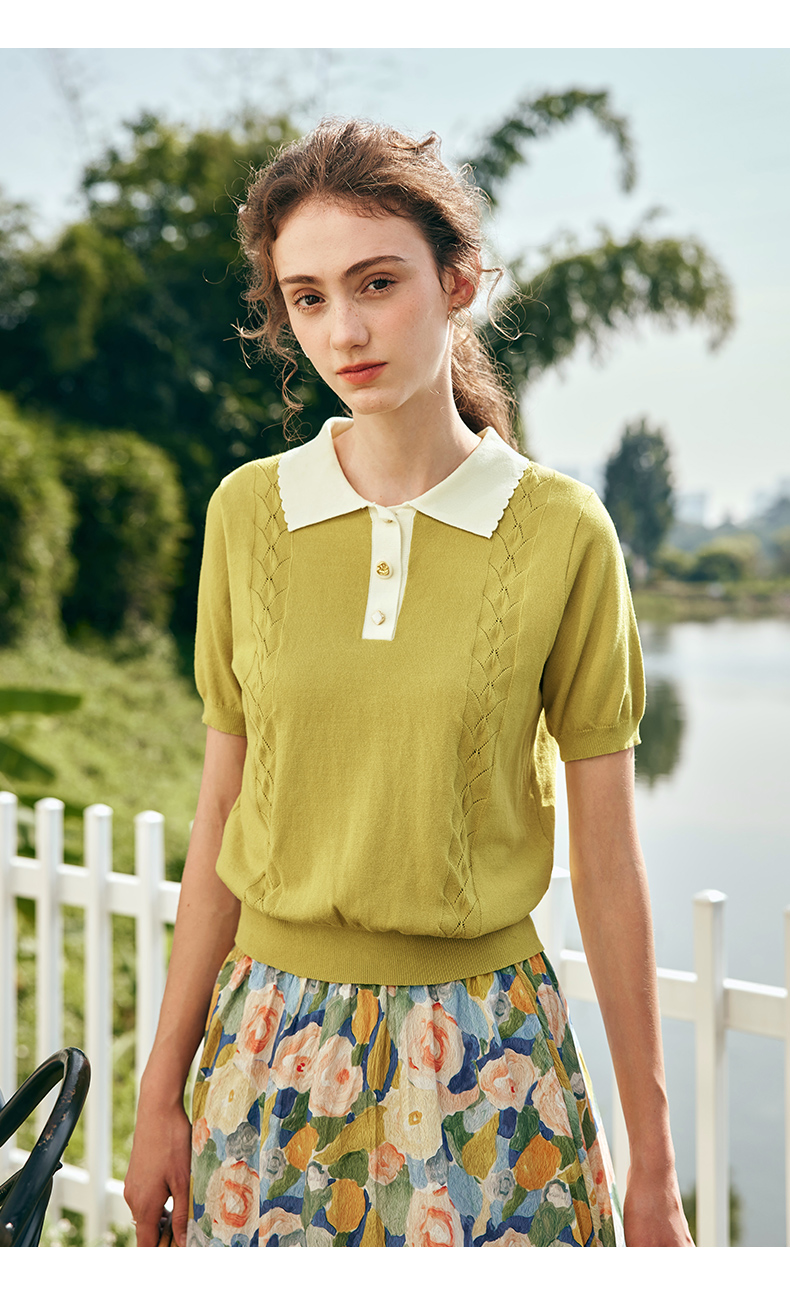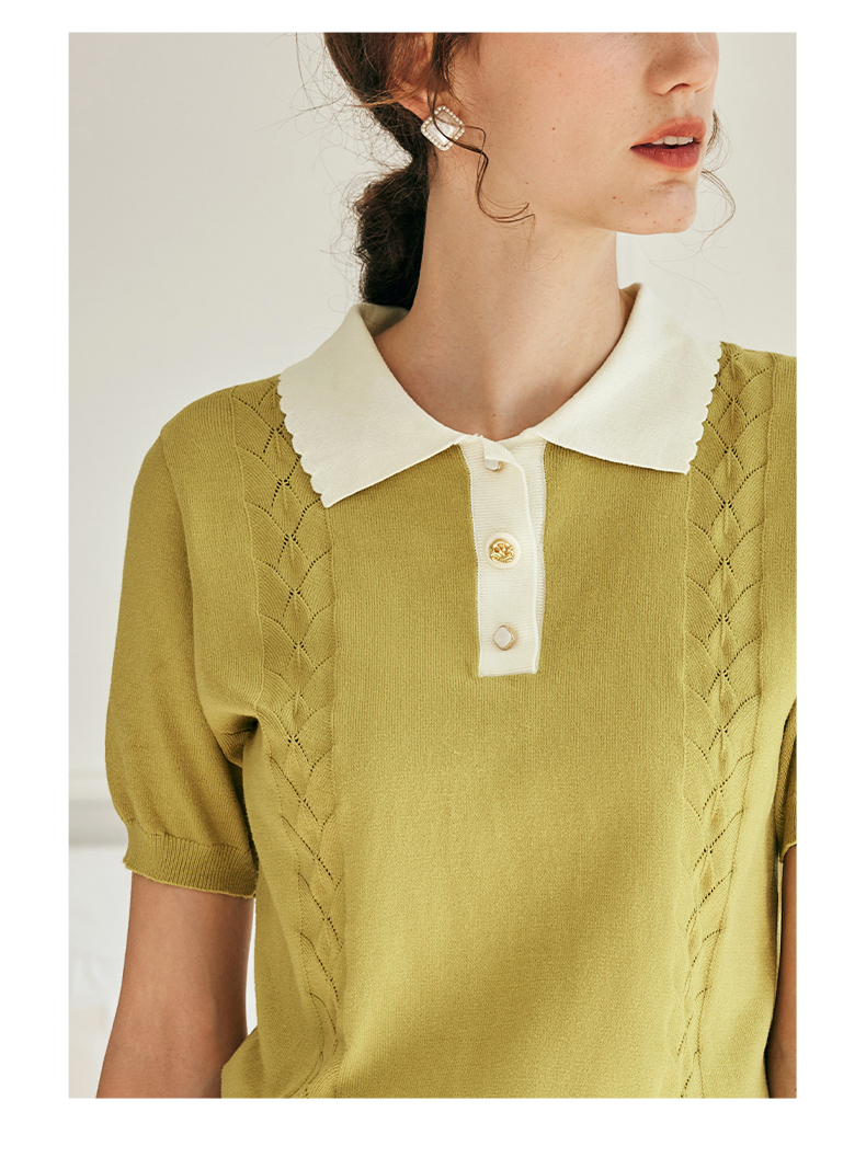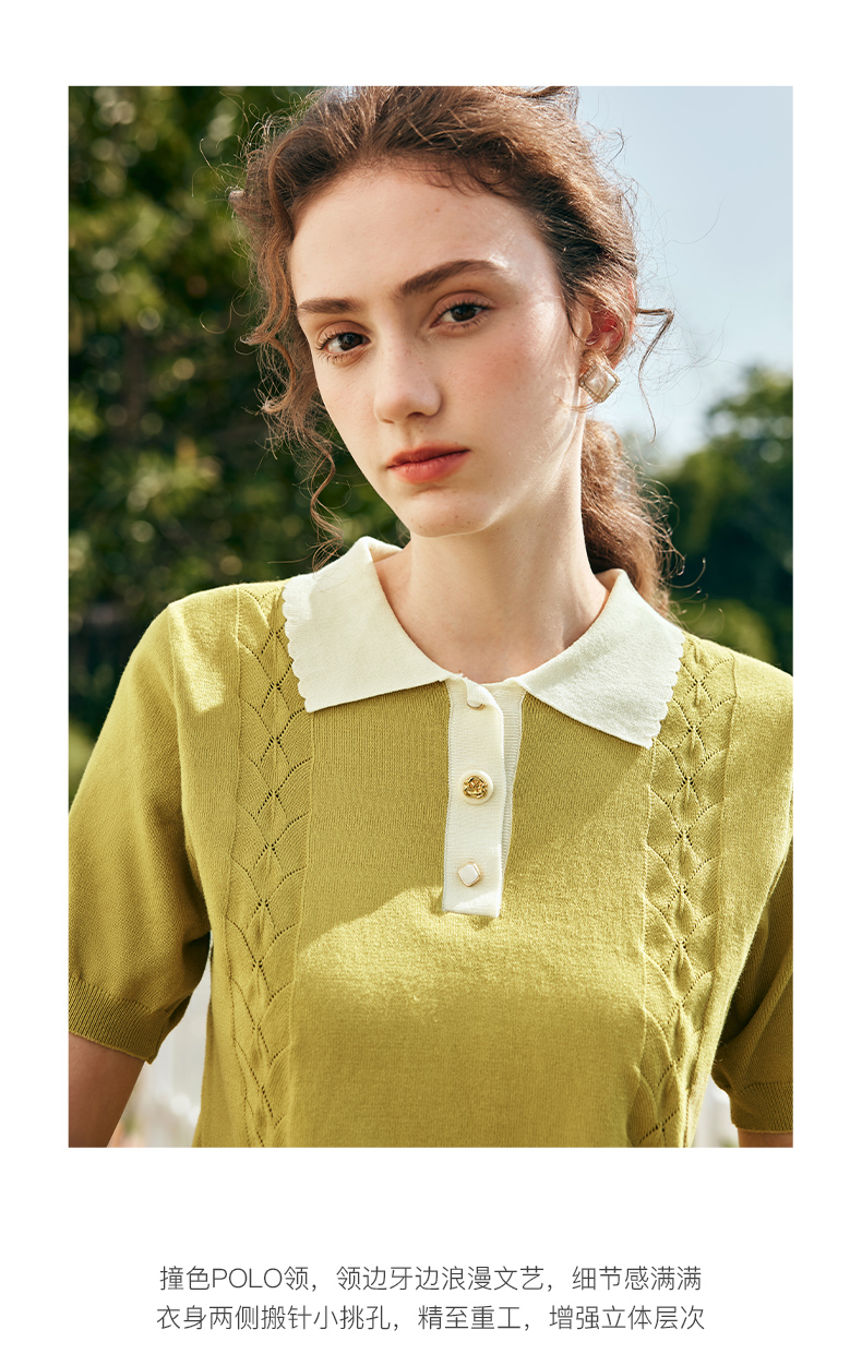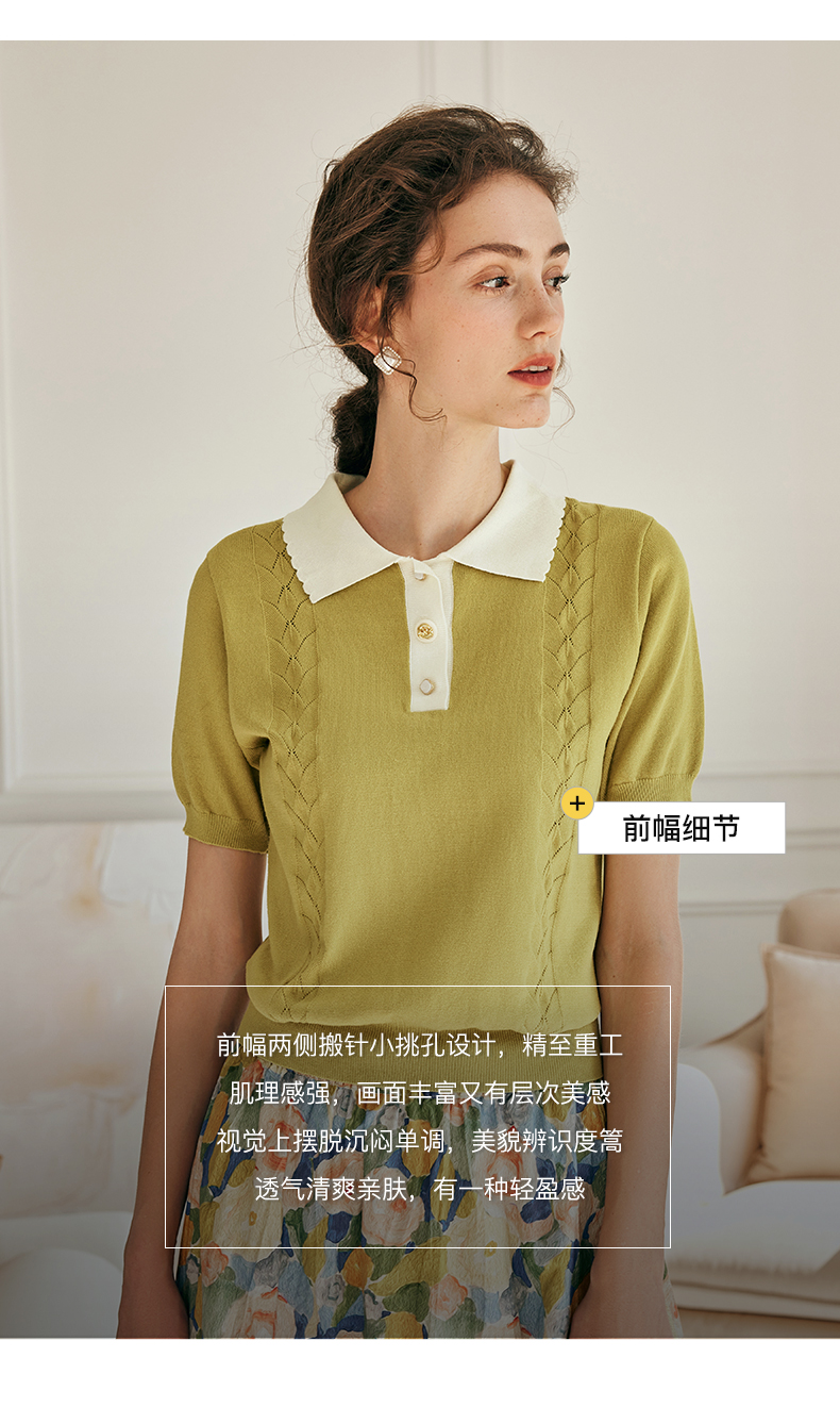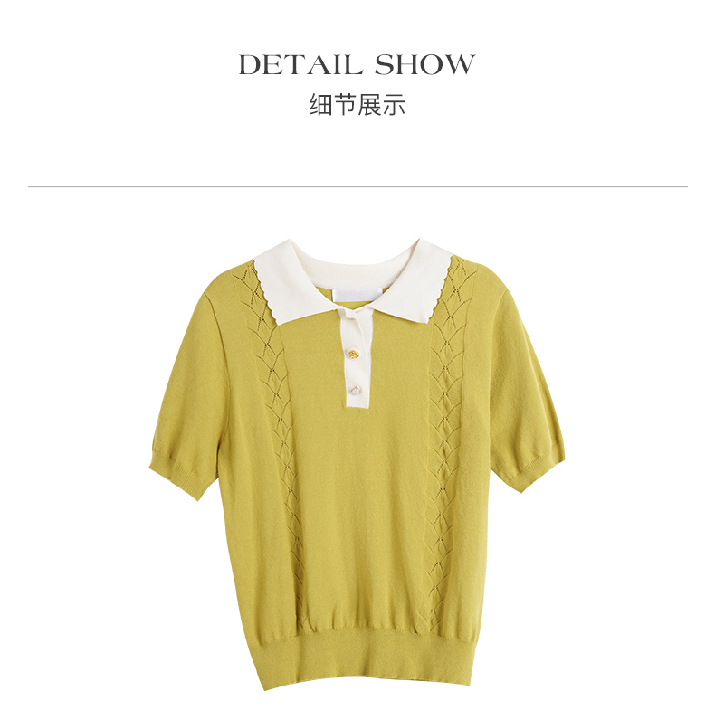 OLrain欧芮儿法式POLO领针织衫女夏季2023年新款宽松冰爽丝套头衫