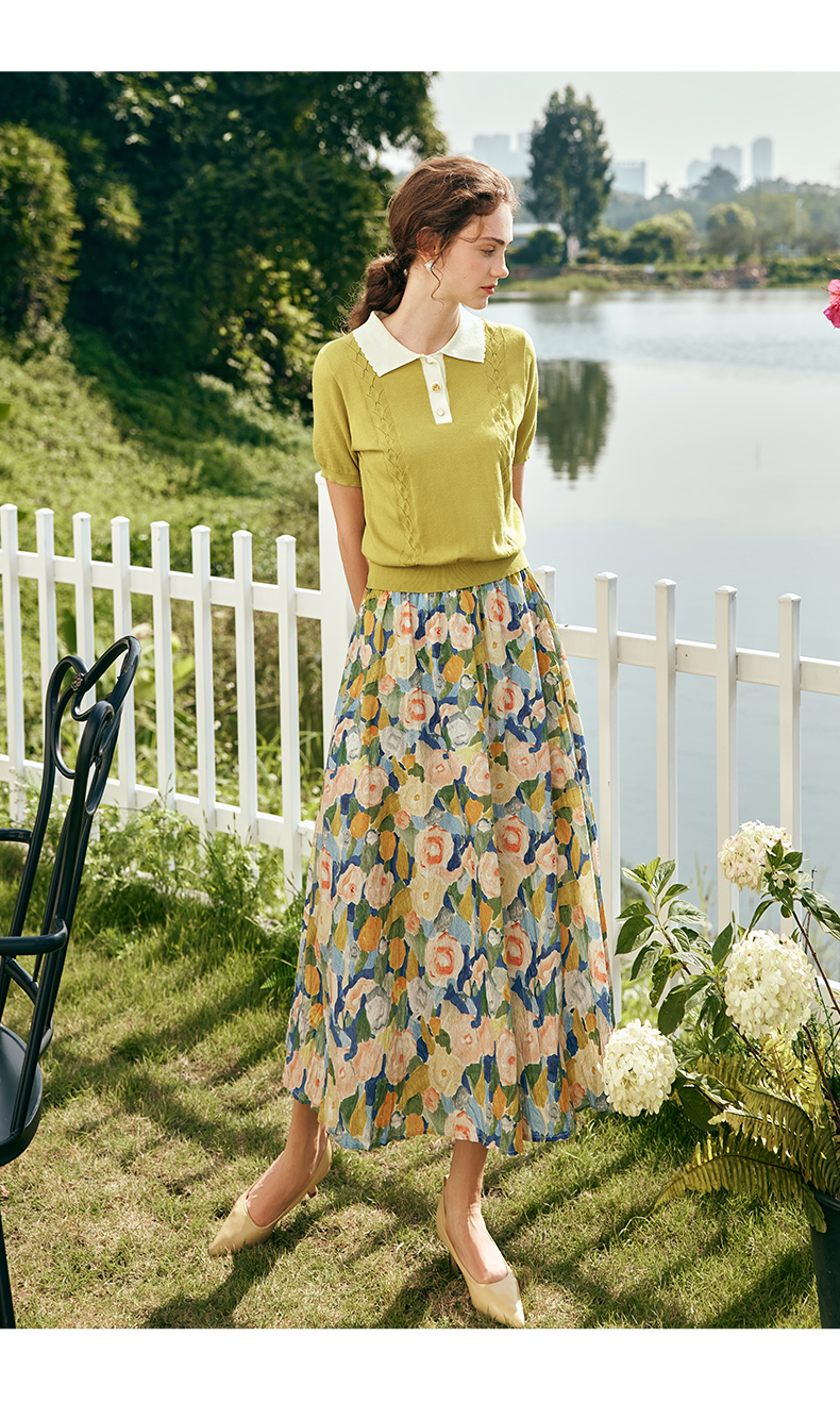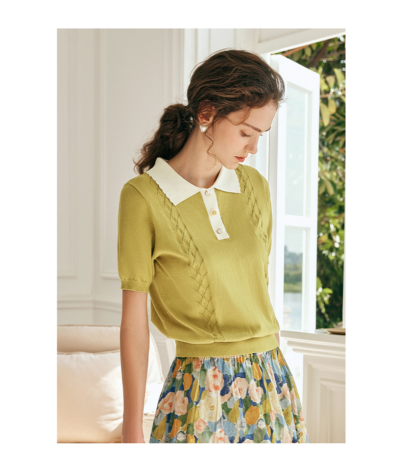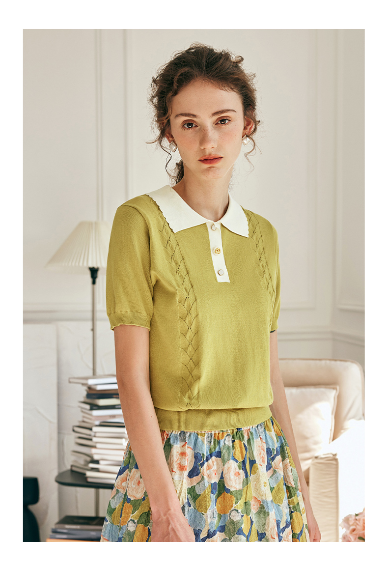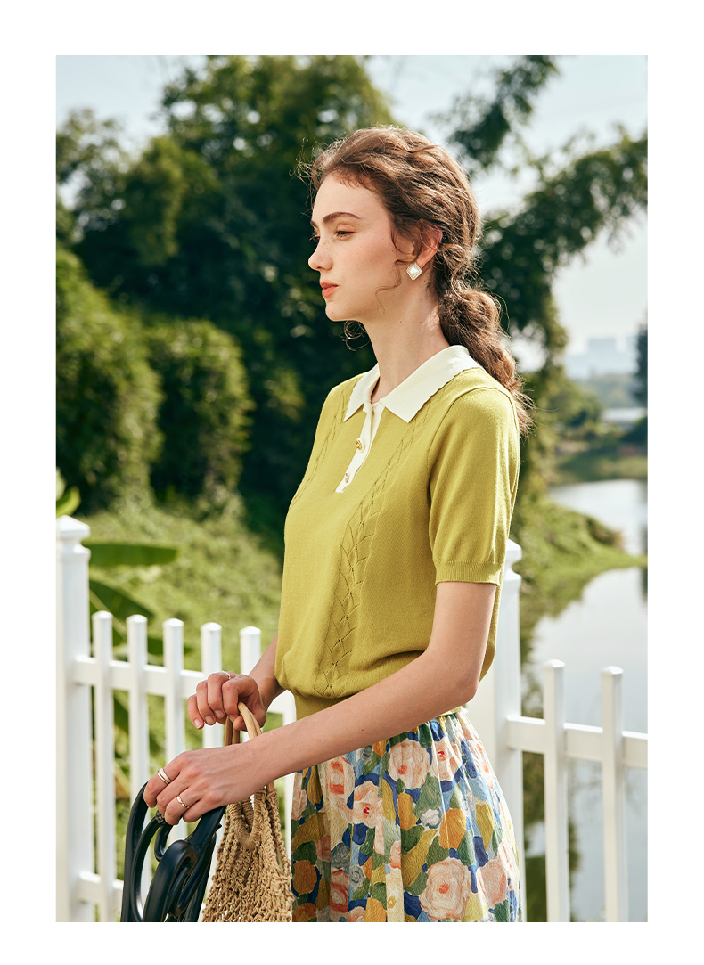OLrain欧芮儿法式POLO领针织衫女夏季2023年新款宽松冰爽丝套头衫