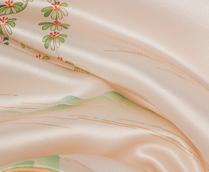 采用真丝印花软缎面料,触感柔软顺滑。