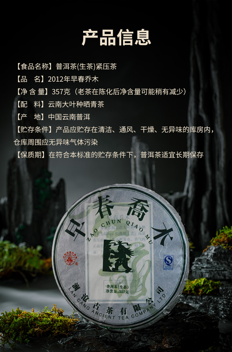 澜沧古茶2012年早春乔木普洱生茶大饼357g