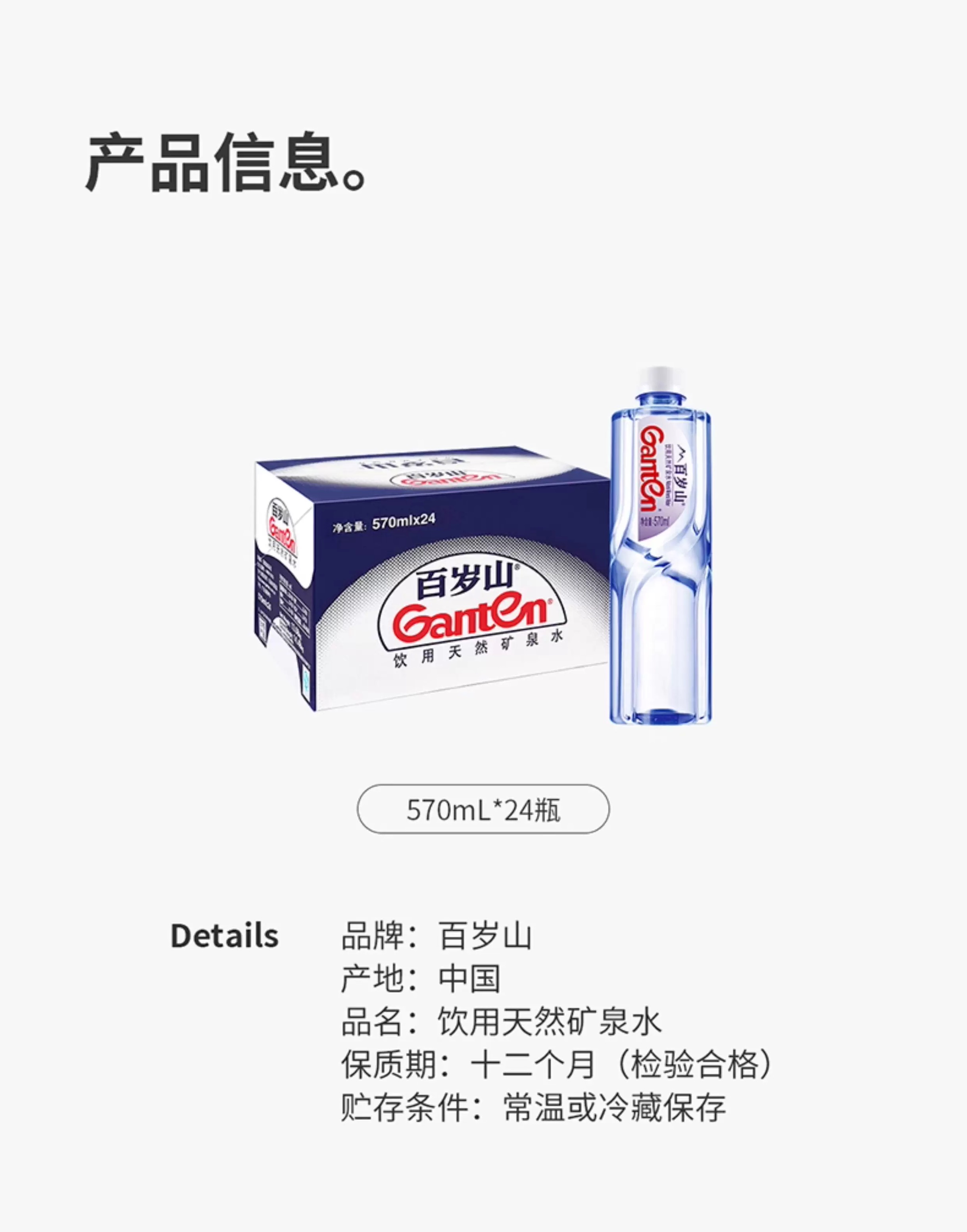 百岁山 天然矿泉水570ml*24瓶 清冽甘甜 水中贵族 72小时发货(发货后不支持拦截撤单)