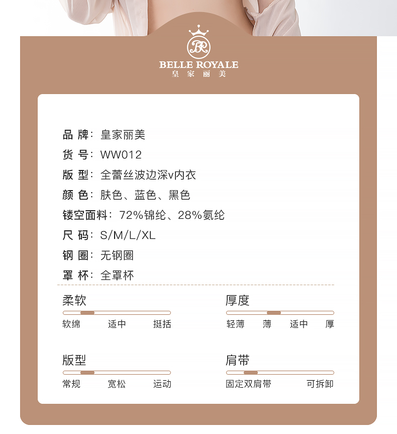 【秒杀品不退不换】皇家丽美轻羽薄款无痕不跑杯内衣大胸显小无钢圈文胸套装WW012