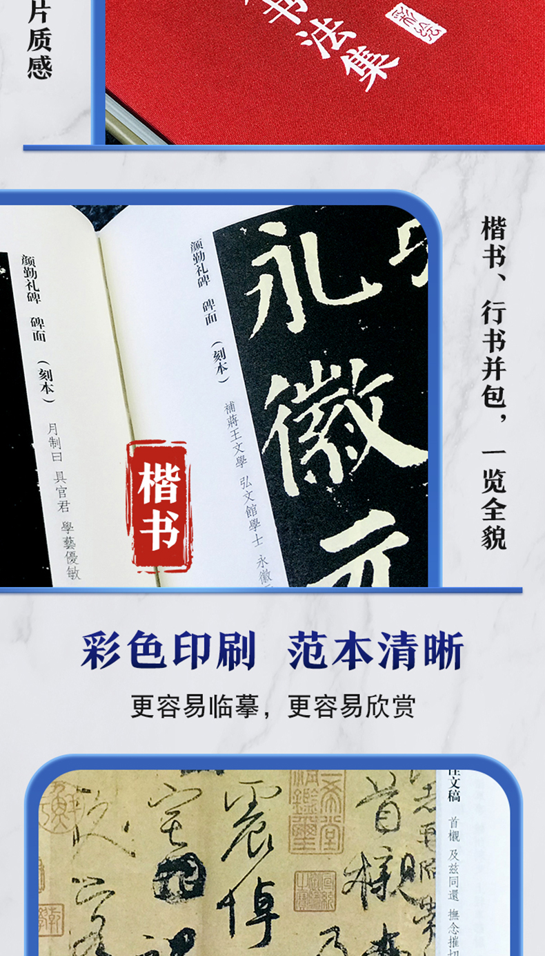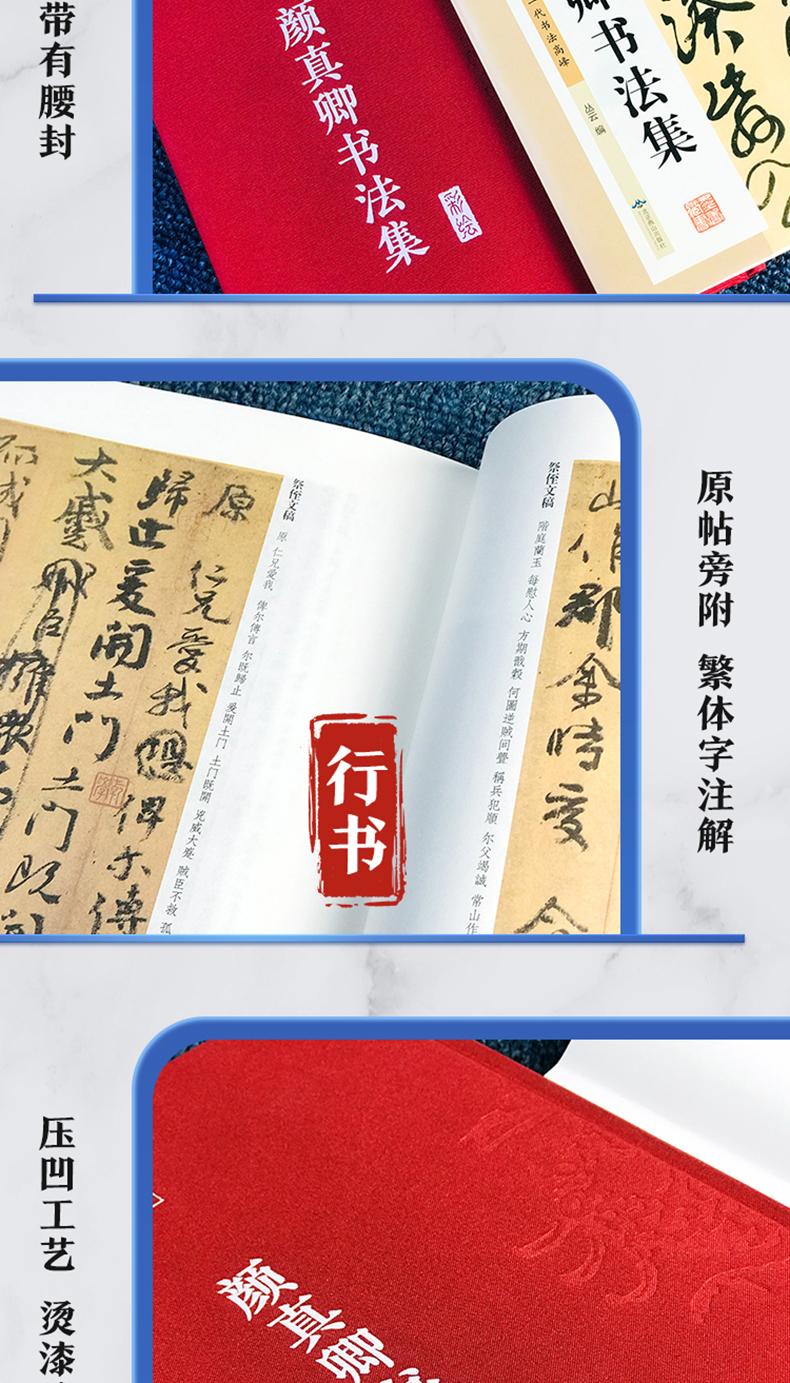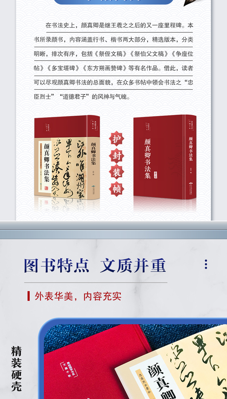 颜真卿书法集 布面精装彩图国学经典书法写真书 楷书行书入门基础教程毛笔字帖颜体标准字帖集字古诗古文书法王羲之三希堂法帖书籍