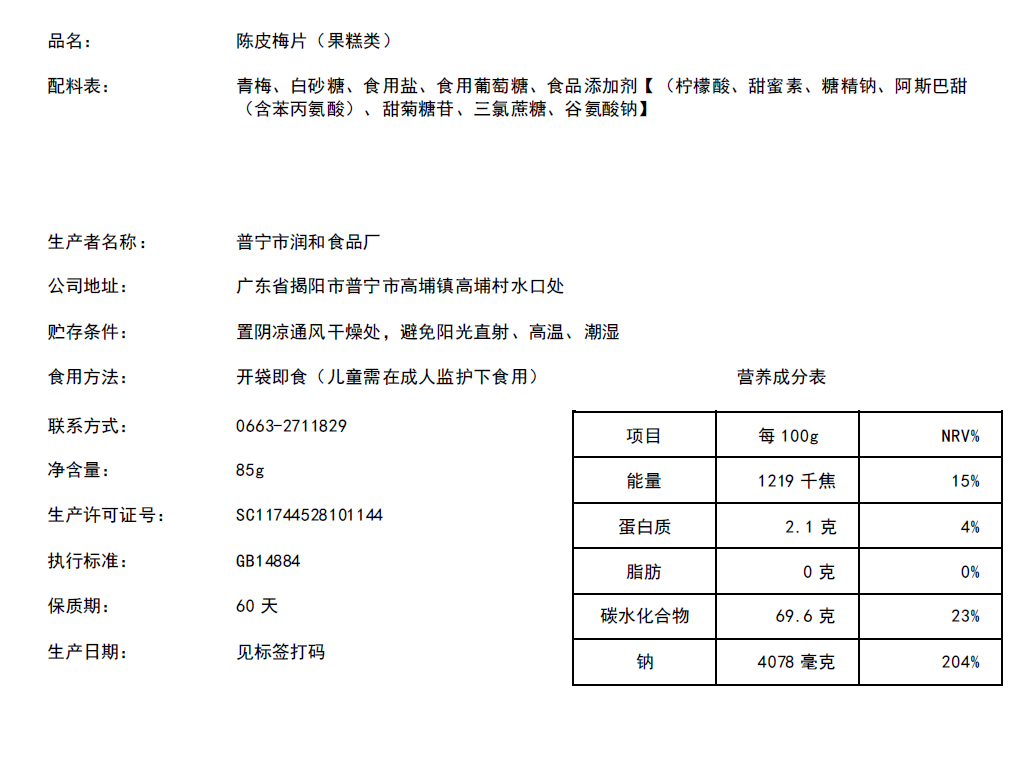 陈皮梅片[0075#]