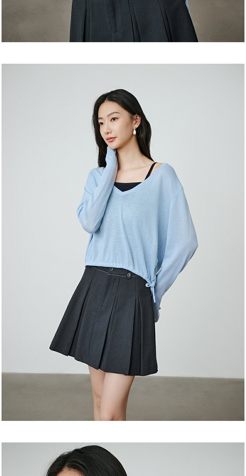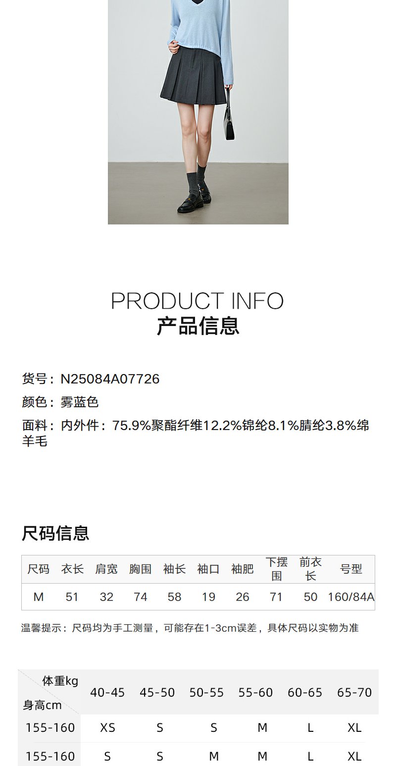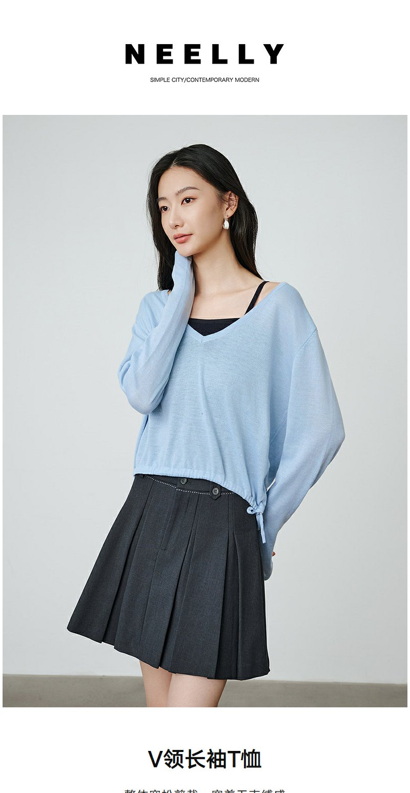 NEELLY纳俪商场同款秋季新款V领宽松减龄针织衫女简约舒适T恤上衣N25084A07726