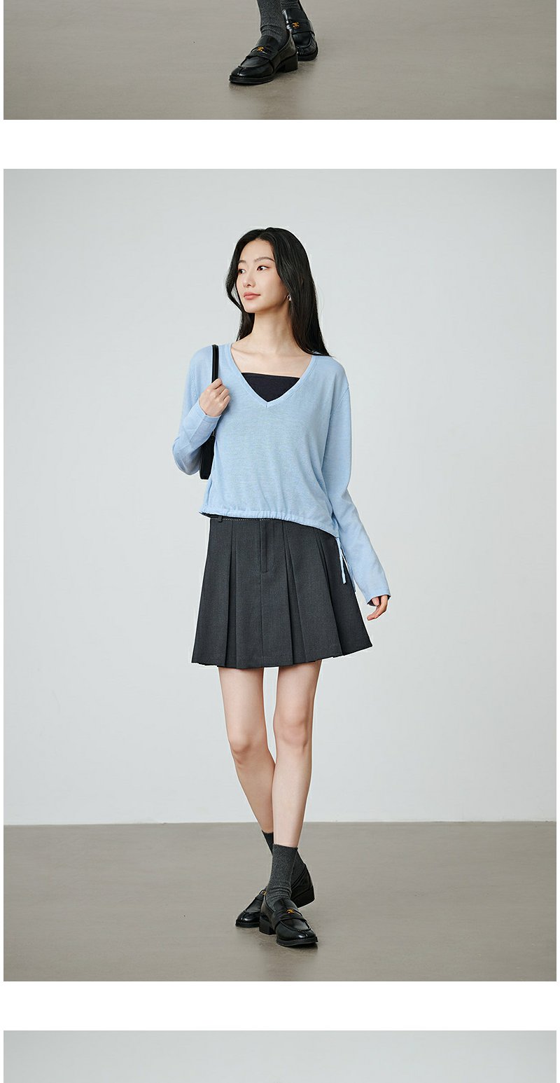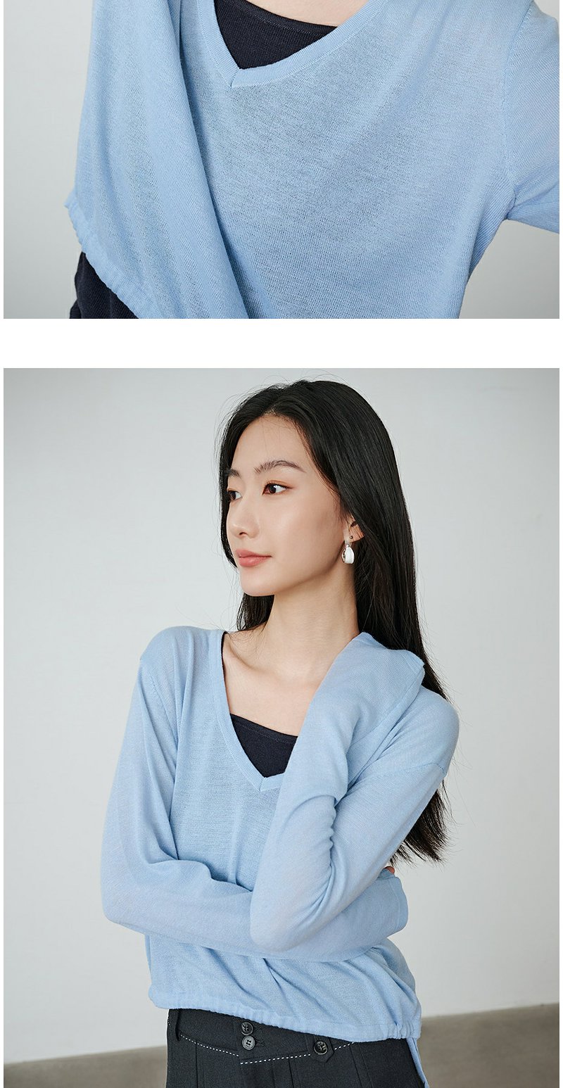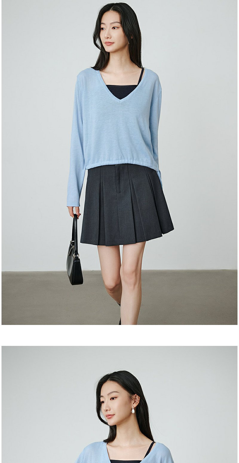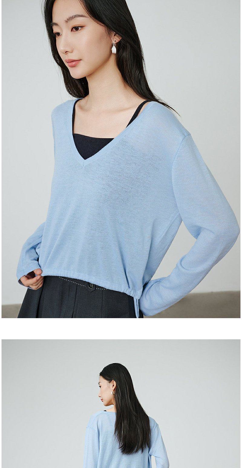 NEELLY纳俪商场同款秋季新款V领宽松减龄针织衫女简约舒适T恤上衣N25084A07726