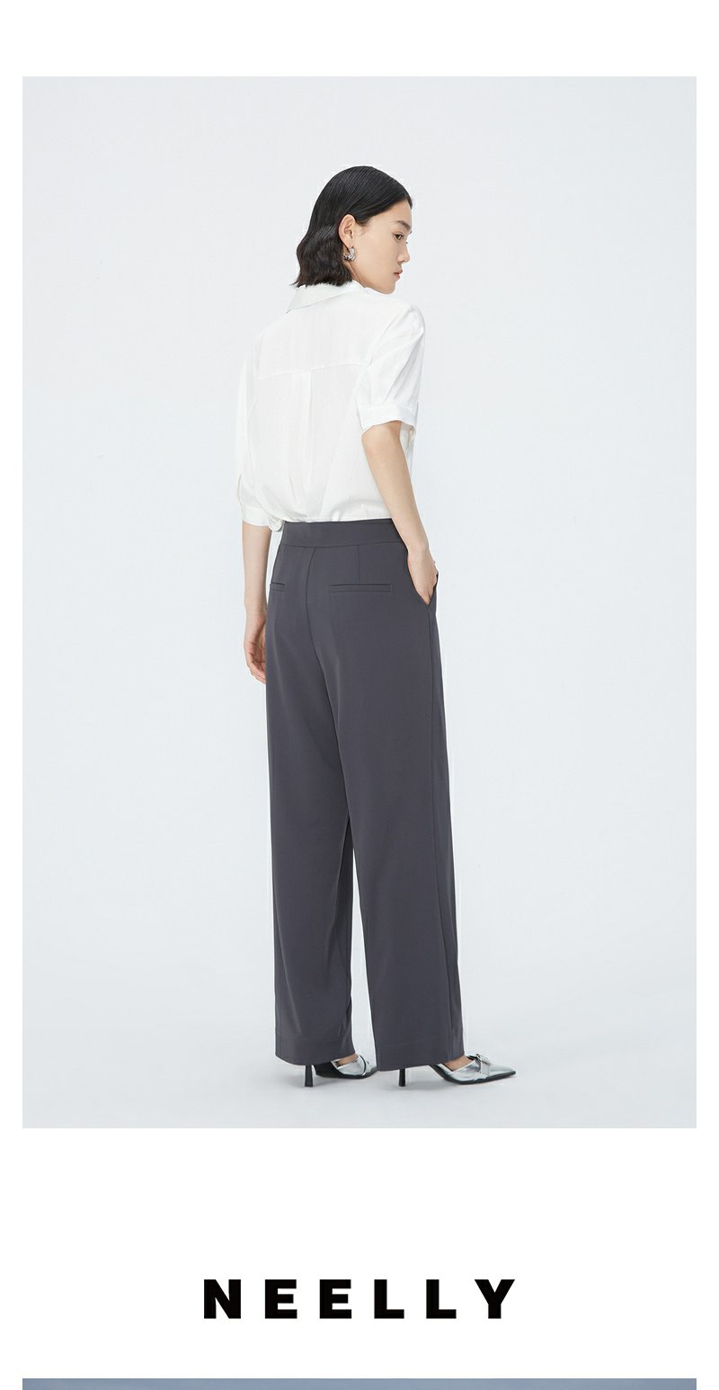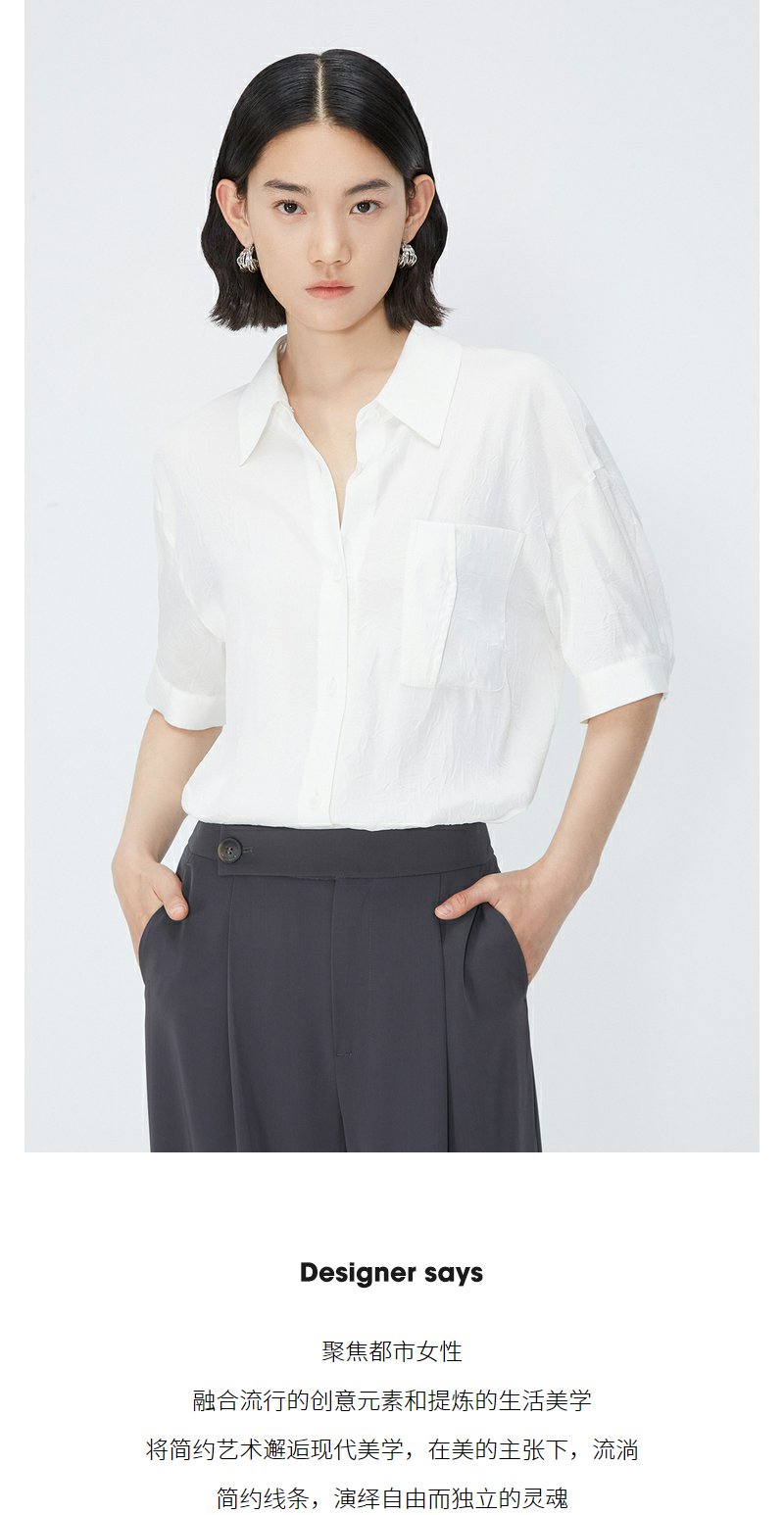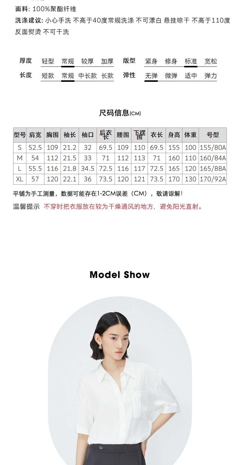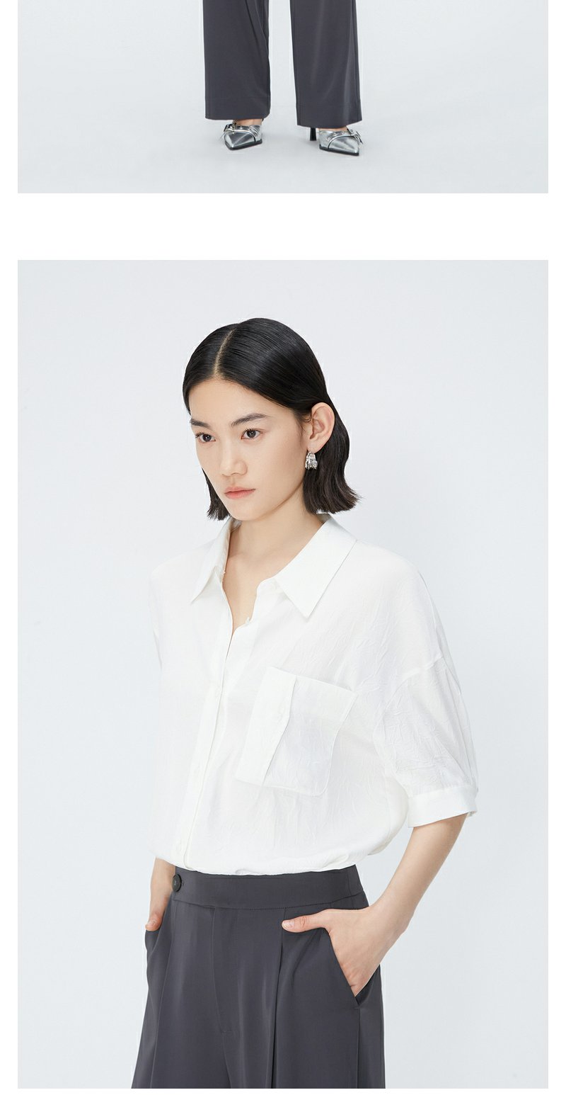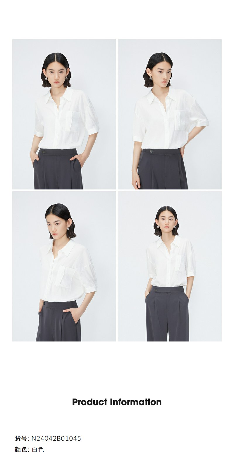 NEELLY纳俪商场同款白色短袖翻领衬衫女垂感休闲气质五分袖白衬衣 N24042B01045