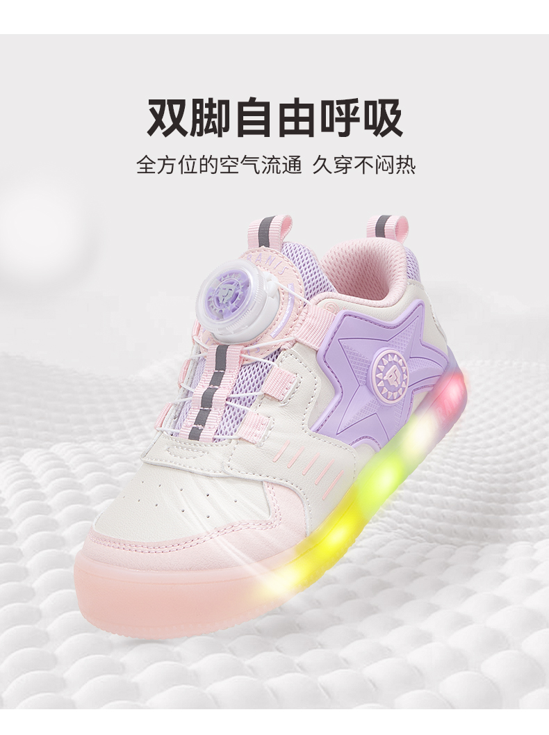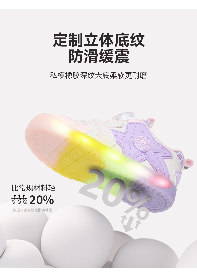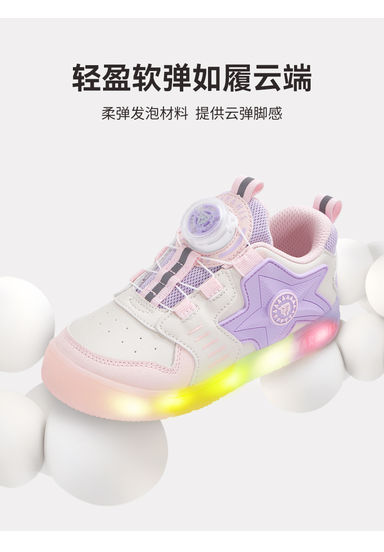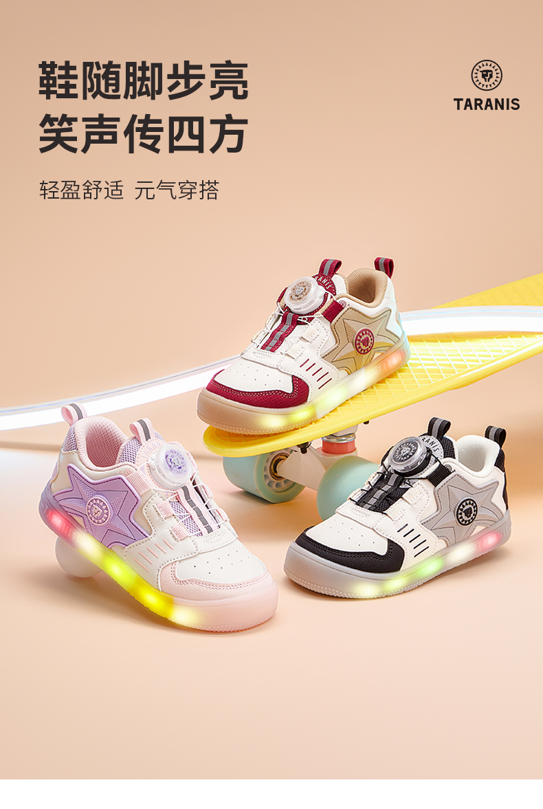 泰兰尼斯儿童闪灯板鞋秋季男童闪灯鞋女童板鞋舒适透气休闲板鞋字 T02X5C7649