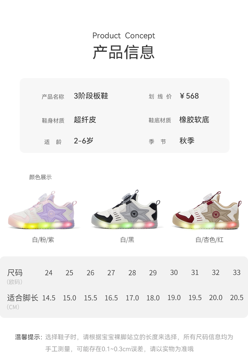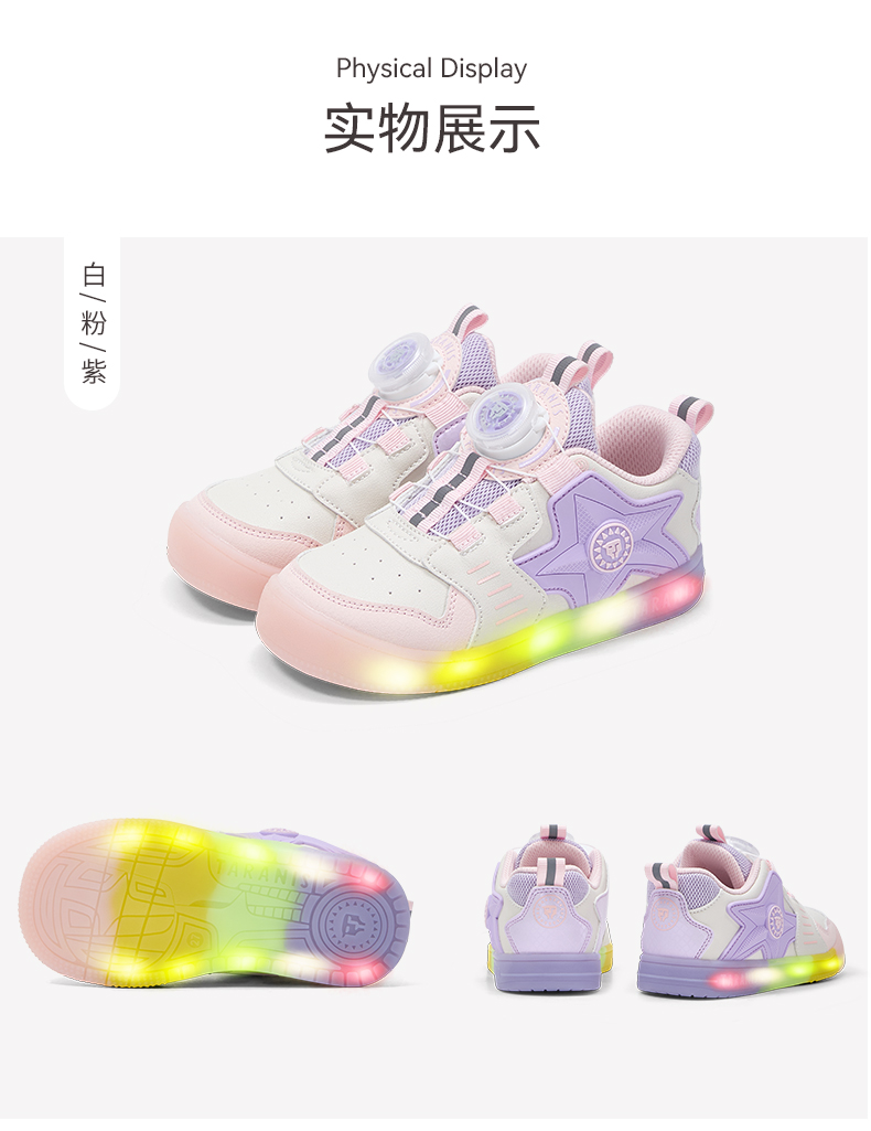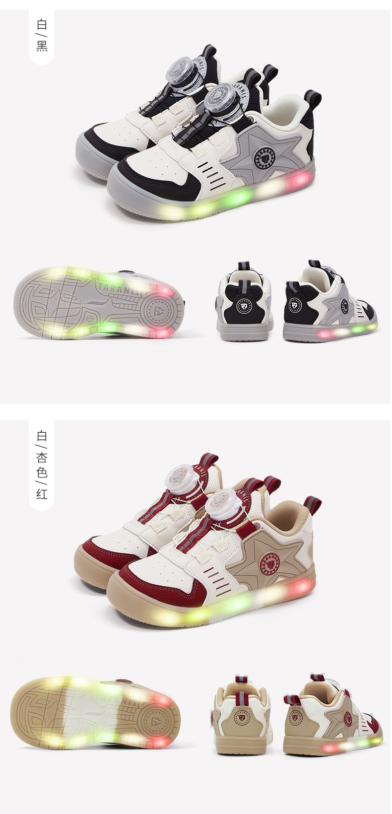 泰兰尼斯儿童闪灯板鞋秋季男童闪灯鞋女童板鞋舒适透气休闲板鞋字 T02X5C7649