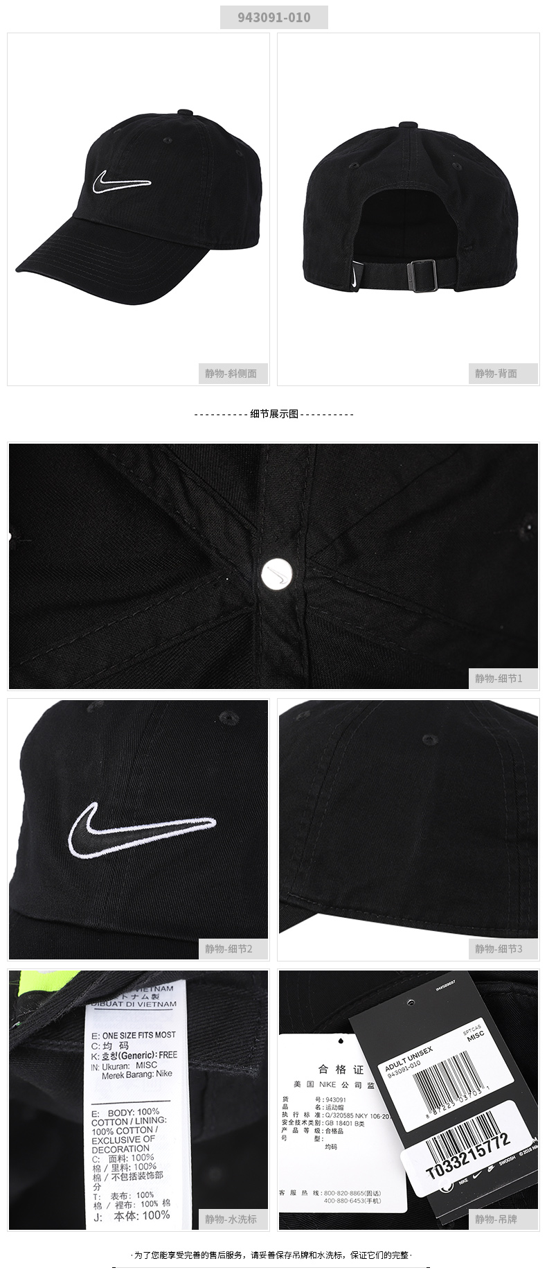 耐克旗舰男帽女帽 22春新品运动帽户外出行旅游遮阳帽子透气时尚休闲棒球帽鸭舌帽943091
