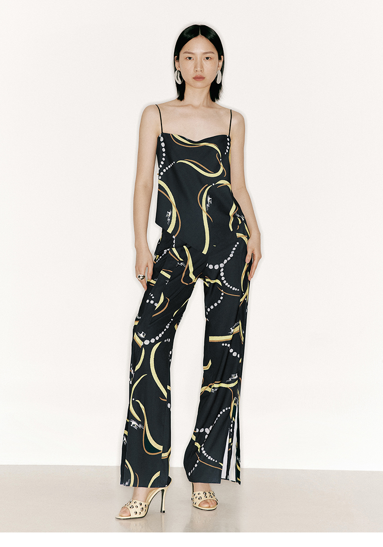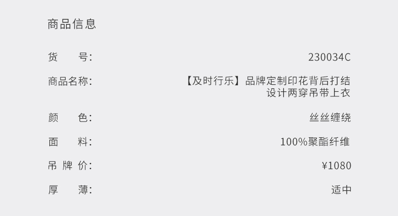 【及时行乐】品牌定制印花背后打结设计两穿吊带上衣/230034C