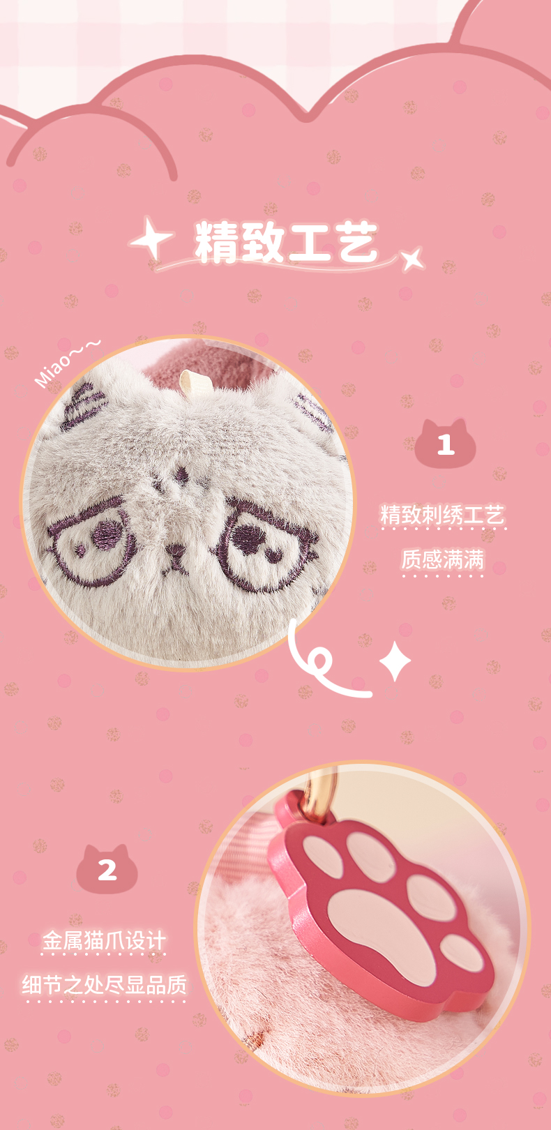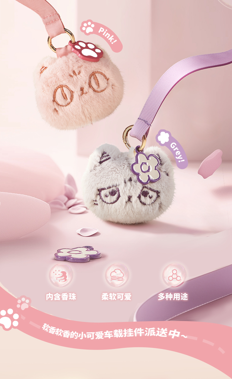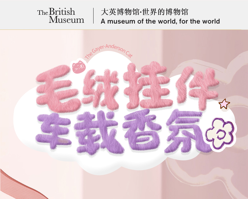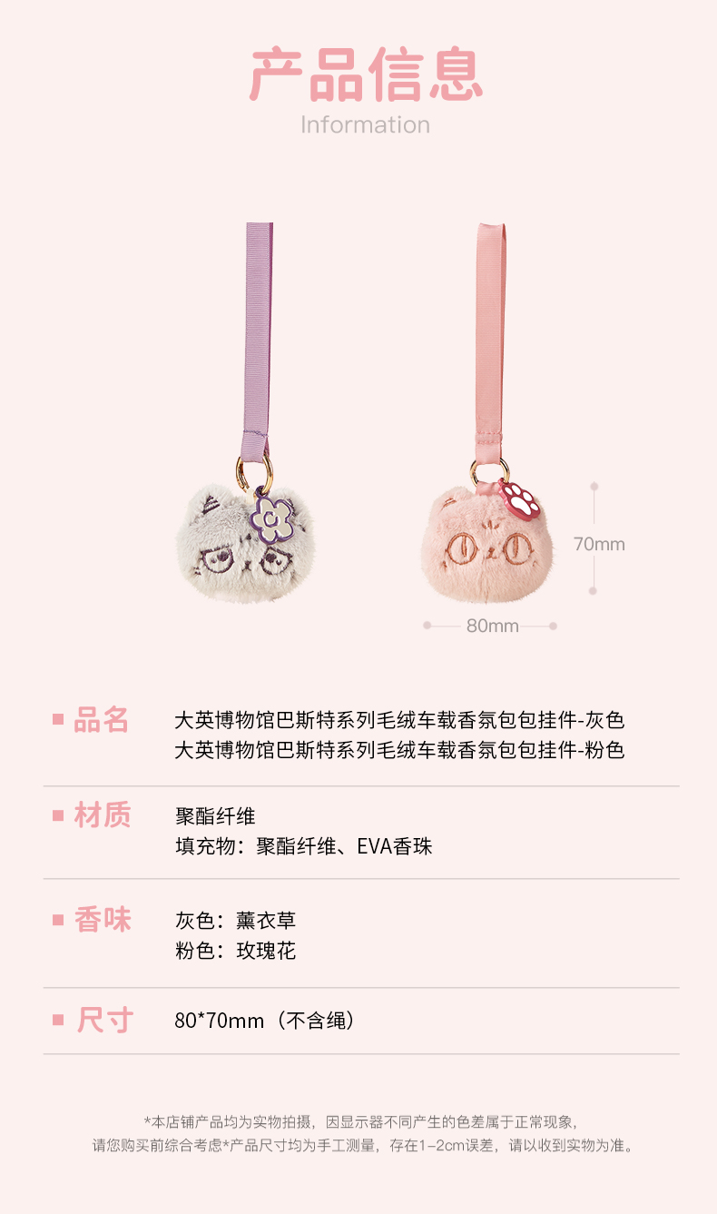 大英博物馆 巴斯特系列 毛绒车载香氛包包挂件 粉色 灰色