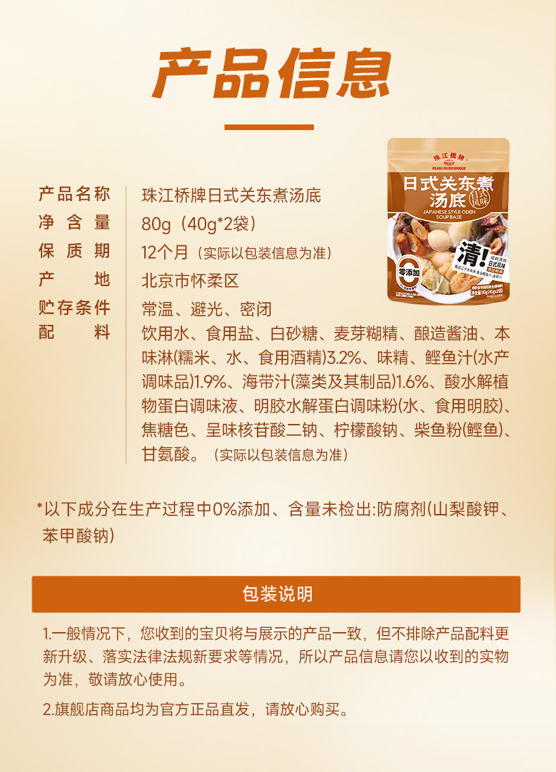 【火锅季】珠江桥牌 日式关东煮汤底80g/袋(内含40gx2袋)