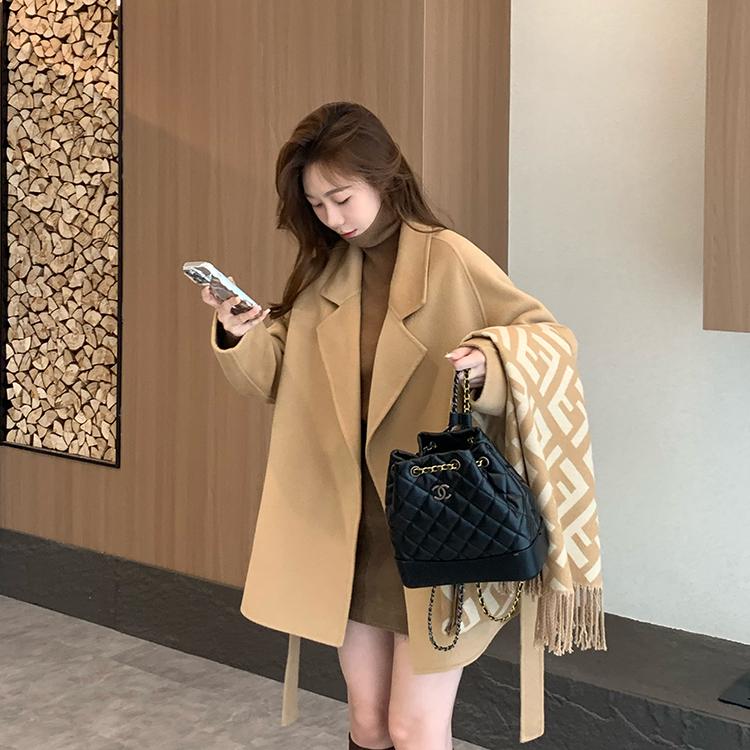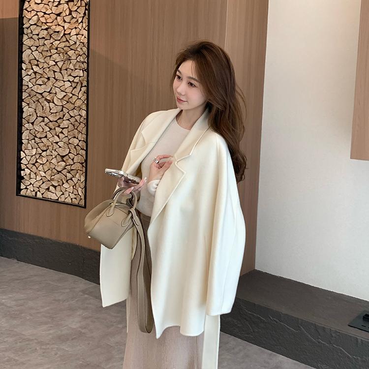 金蘑菇菇 “伦敦假日”短款气质浴袍风大衣 羊绒双面呢大衣