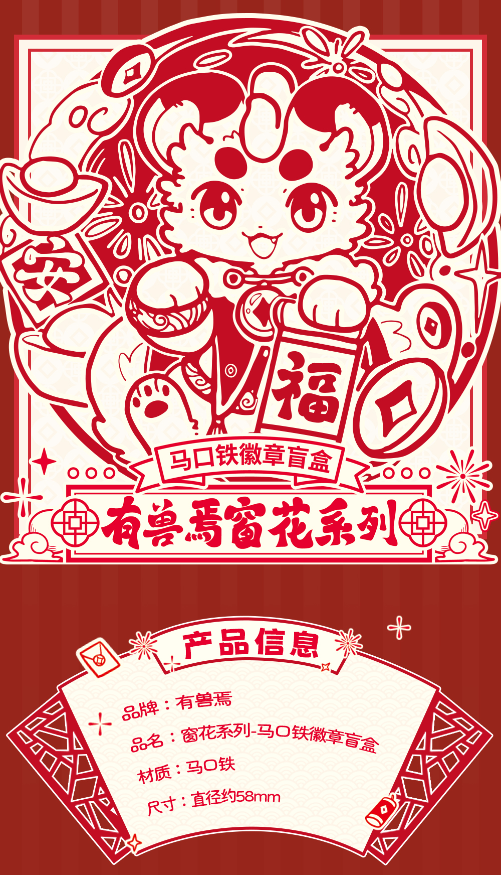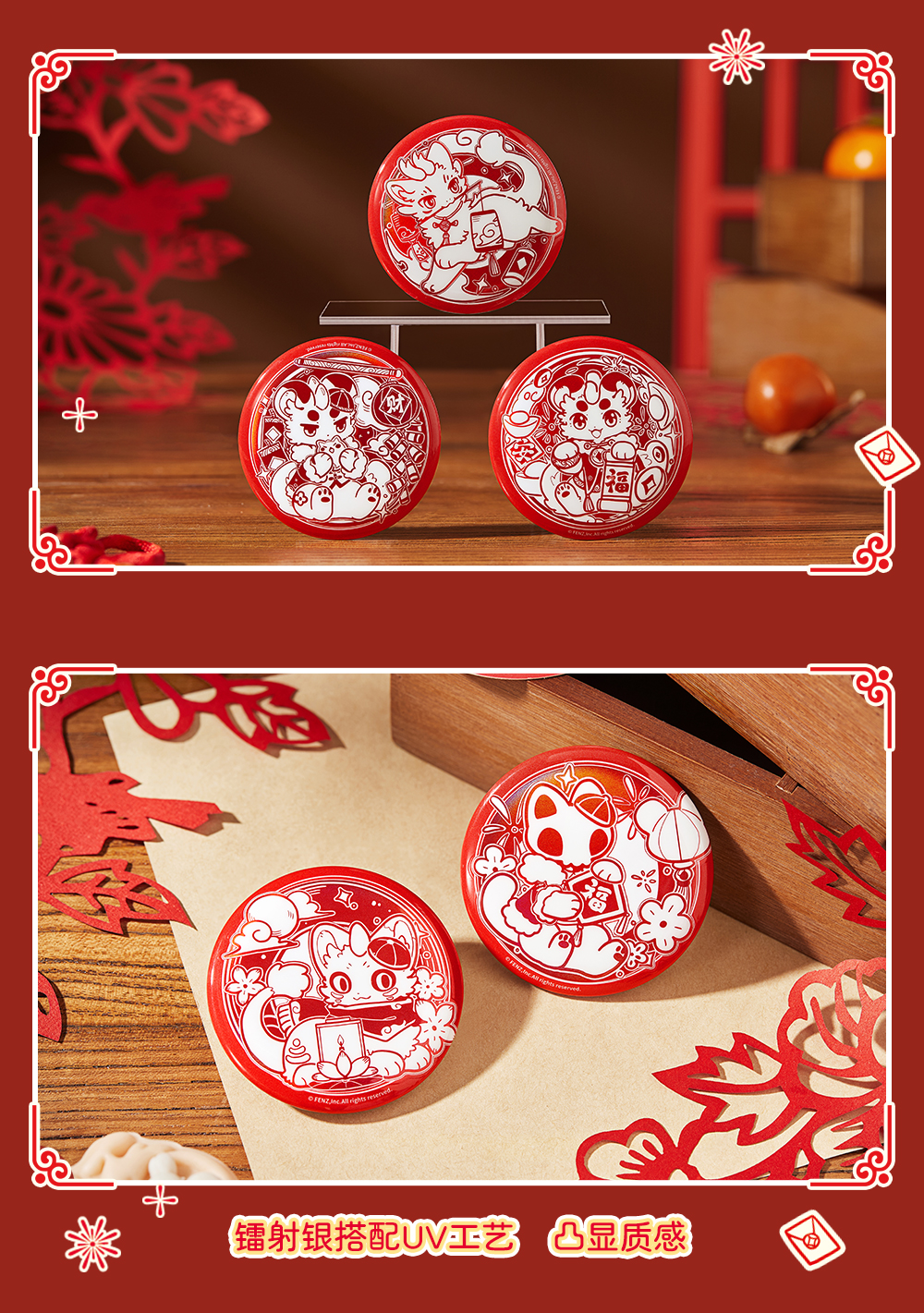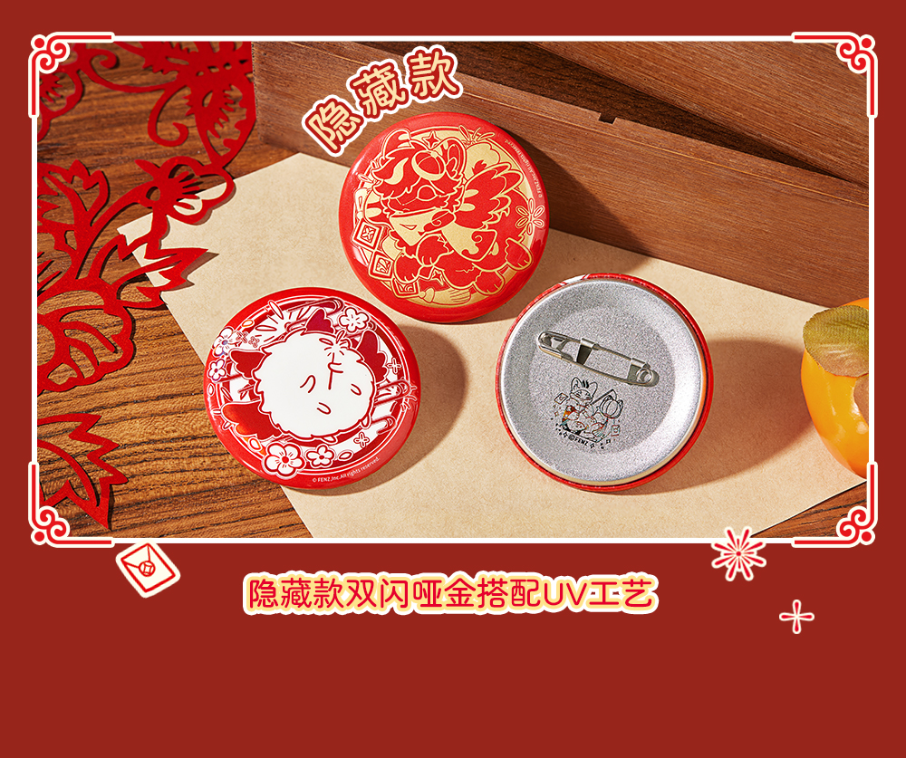 《非人哉官方店》有兽焉窗花系列马口铁徽章盲盒镭射银UV新年吧唧胸针
