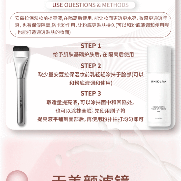 [2瓶优惠装] 安蔻拉提亮液30ML 透亮水光妆感提亮肤色化妆师专用保湿不卡粉隐形毛孔