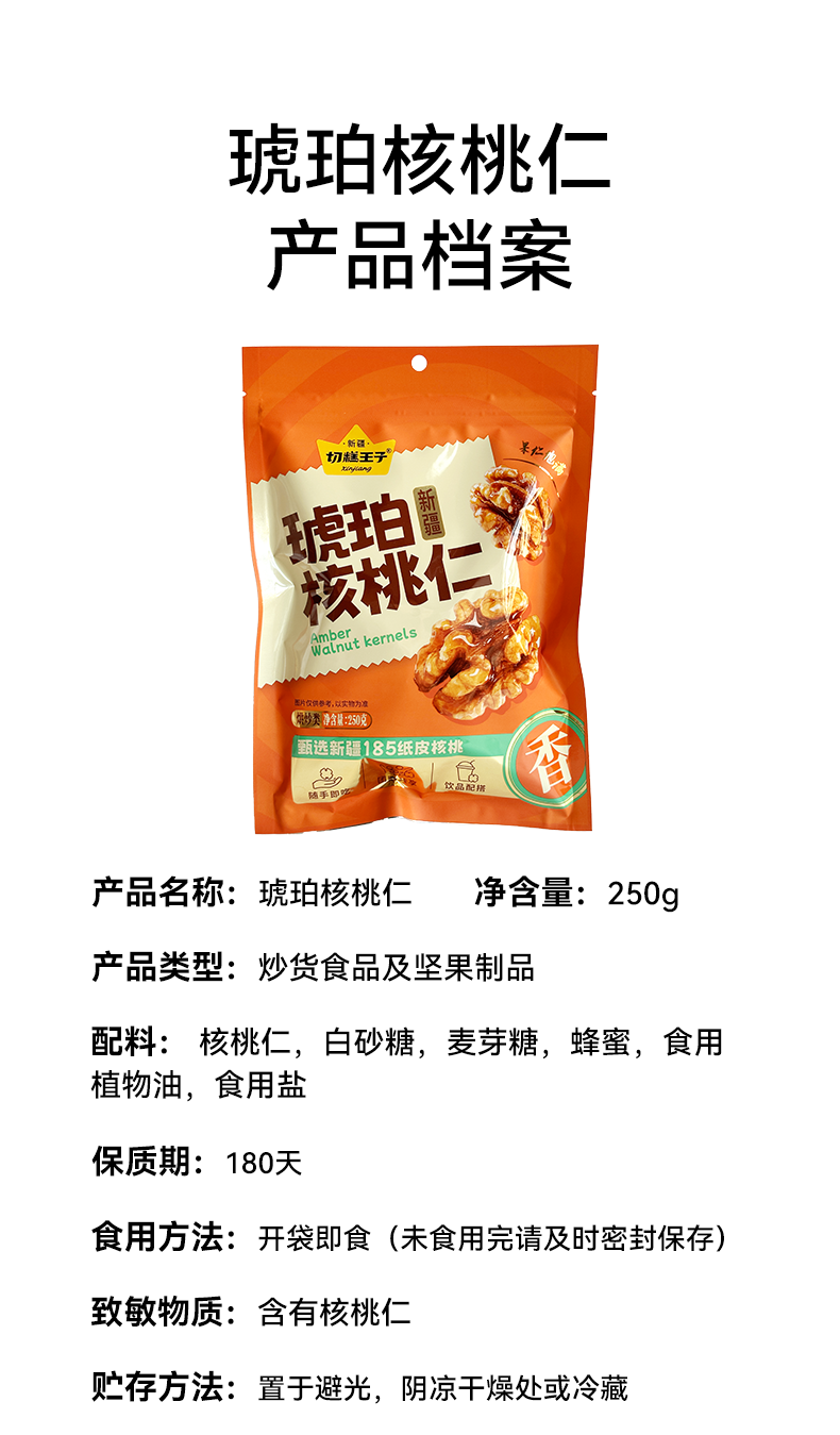 【切糕王子琥珀核桃仁】 甄选新疆阿克苏185核桃仁 新货新果炒制 甜而不腻香酥满口