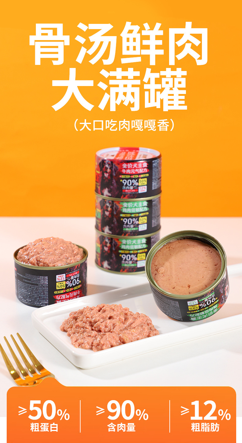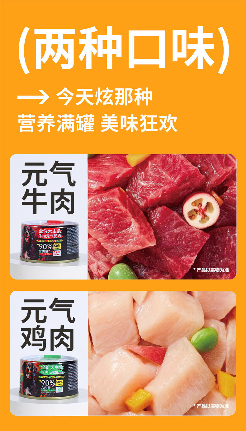 【低至1.8元/罐】原始兽全价主食犬罐头100g*20罐整箱 鸡肉\牛肉味 90%含肉量 含钙配方 0添加 线下专供