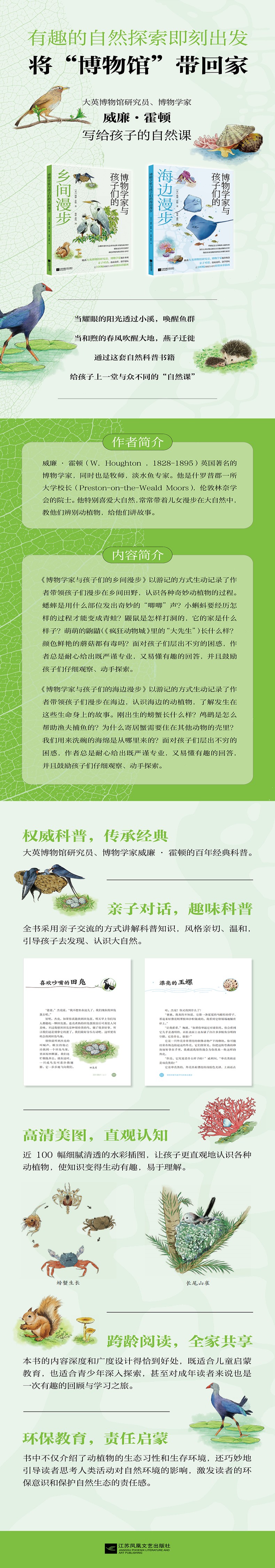 本书是一本鼓励孩子与大自然亲密接触的图书,兼具文学性与知识性,共有12个篇章,按照月份顺序,以游记的方式生动记录了作者带领孩子们漫步在海边,认识海边的动植物,了 解发生在这些生命身上的故事。刚出生的螃蟹长什么样?鸬鹚是怎么帮助渔夫捕鱼的?为什么寄居蟹需要住在其他动物的壳里?我们用来洗碗的海绵是从哪里来的?面对孩子们层出不 穷的困惑,作者总是耐心给出既严谨专业,又易懂有趣的回答,并且鼓励孩子们仔细观察、动手探索。