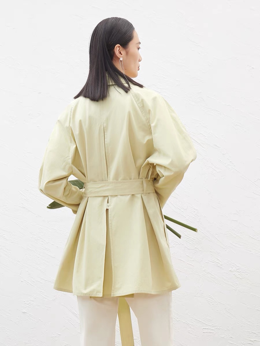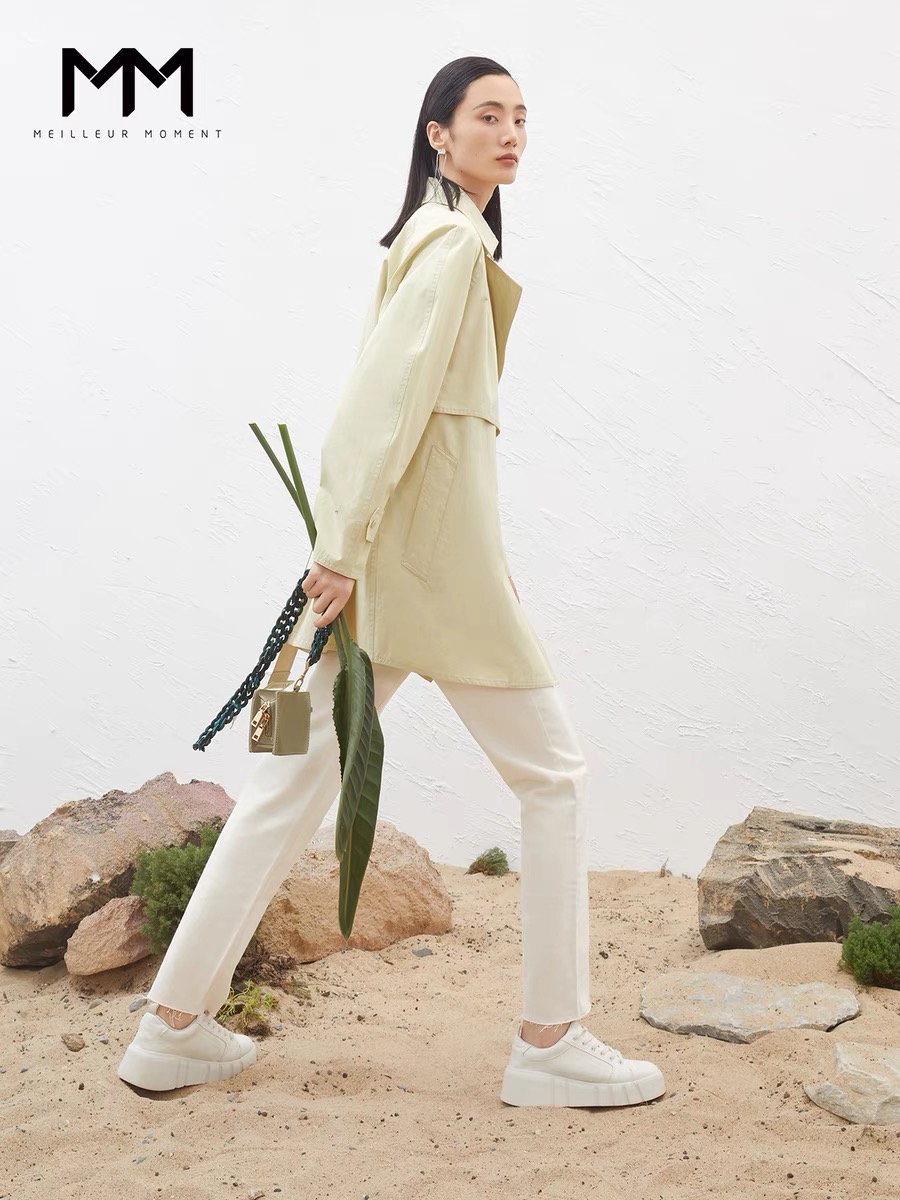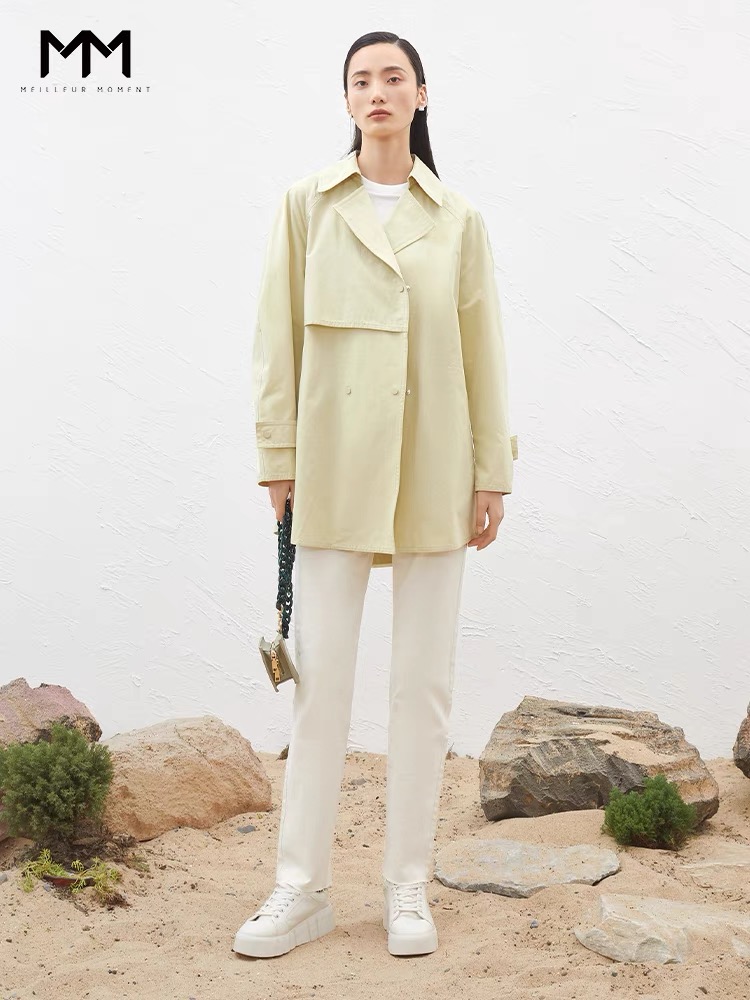 3F 【Meilleur moment麦檬】2022春季纯棉中长款风衣外套小个子女5D2260091