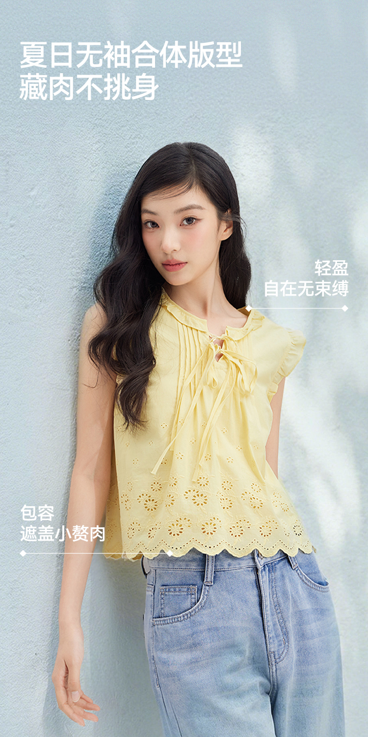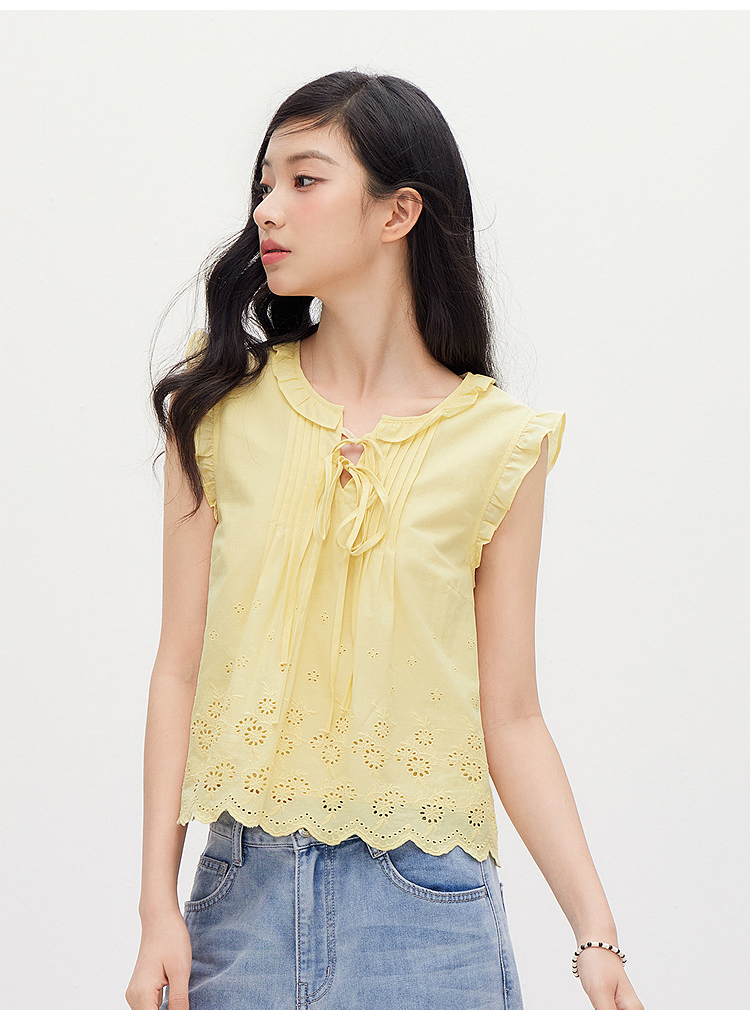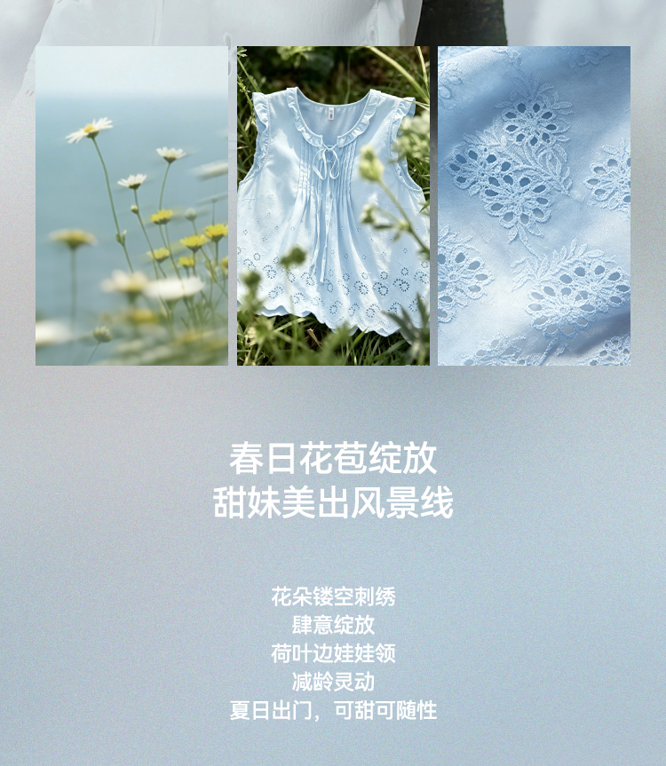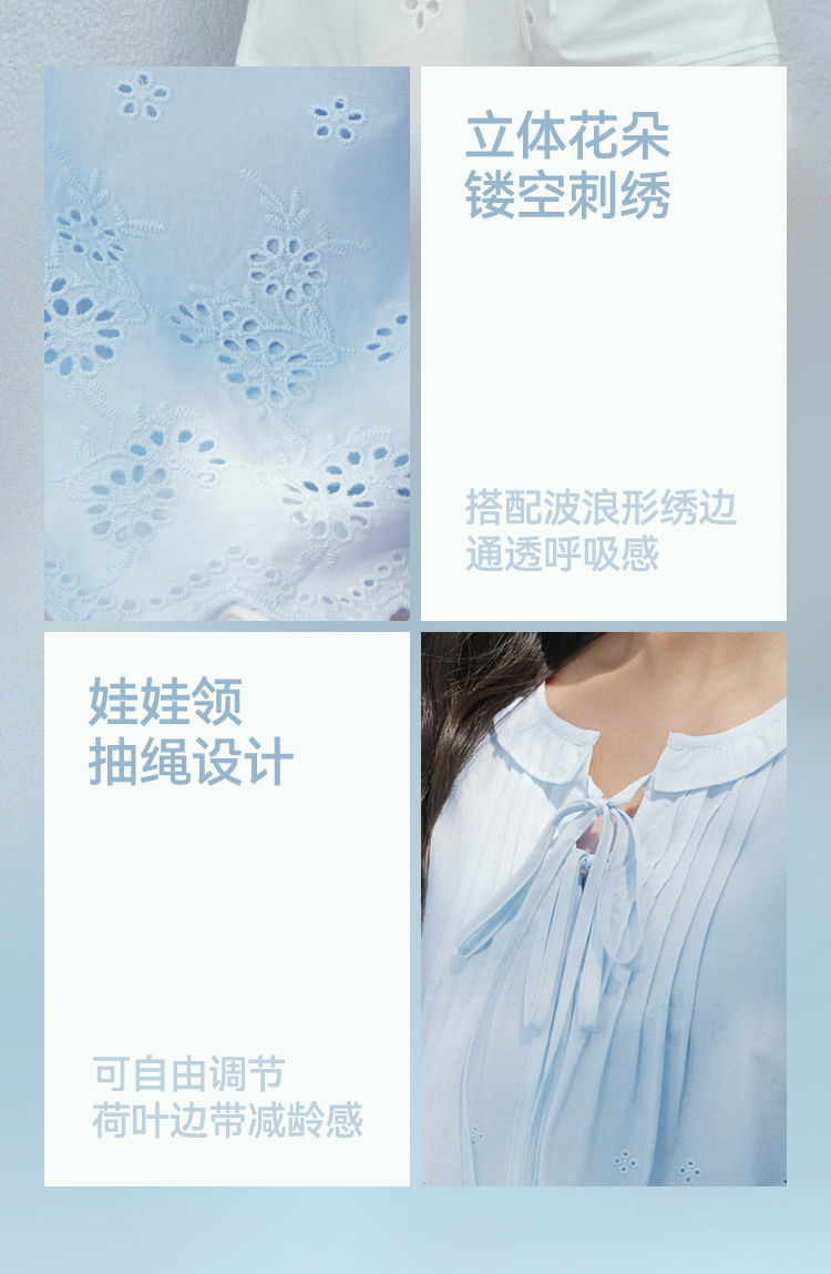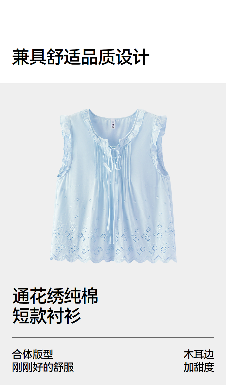 森马衬衫女夏短款纯棉绣花蝴蝶结上衣木耳边花边2026新款甜美衬衣