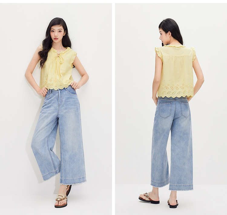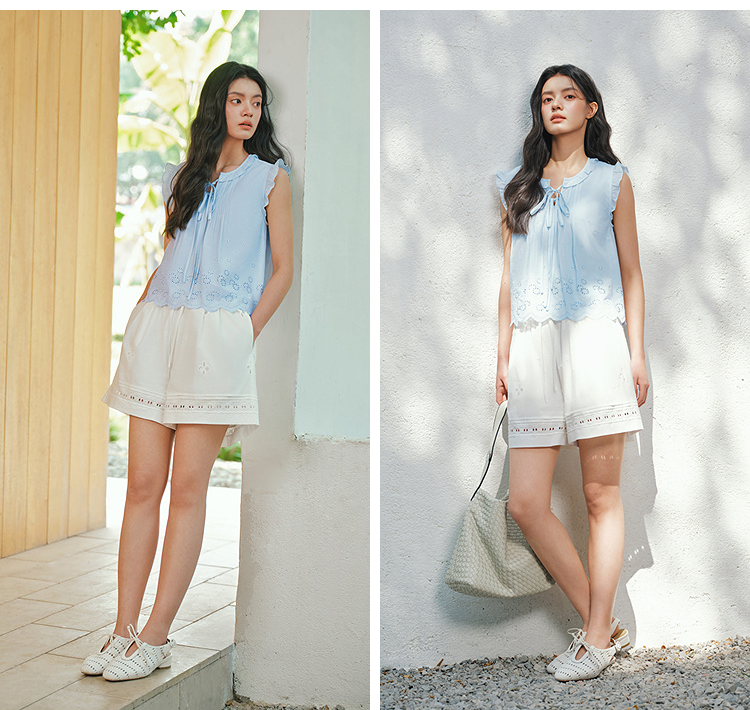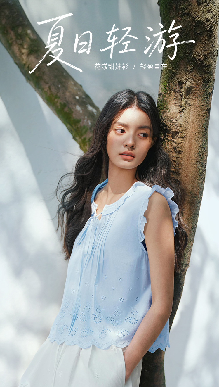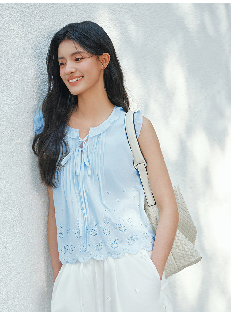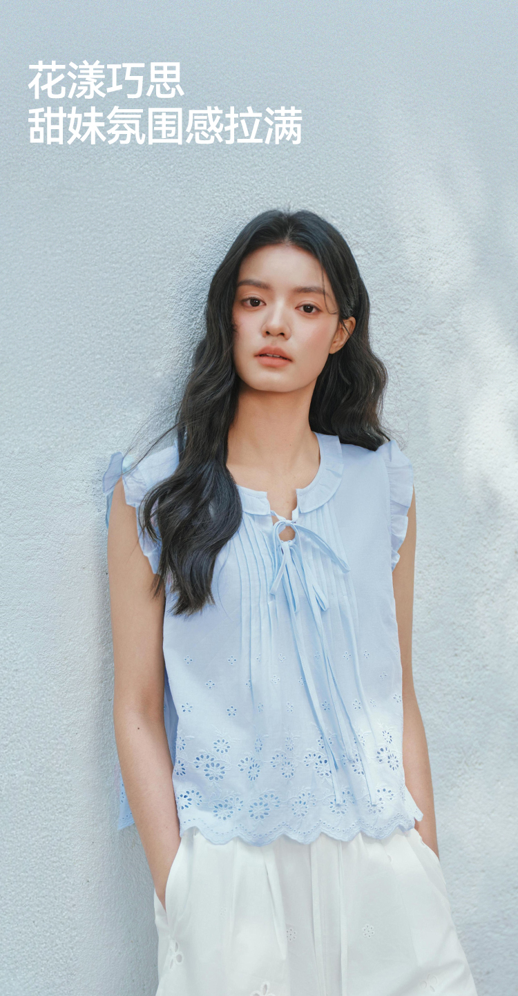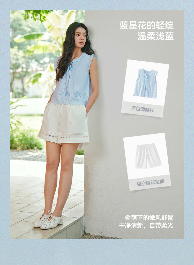 森马衬衫女夏短款纯棉绣花蝴蝶结上衣木耳边花边2026新款甜美衬衣