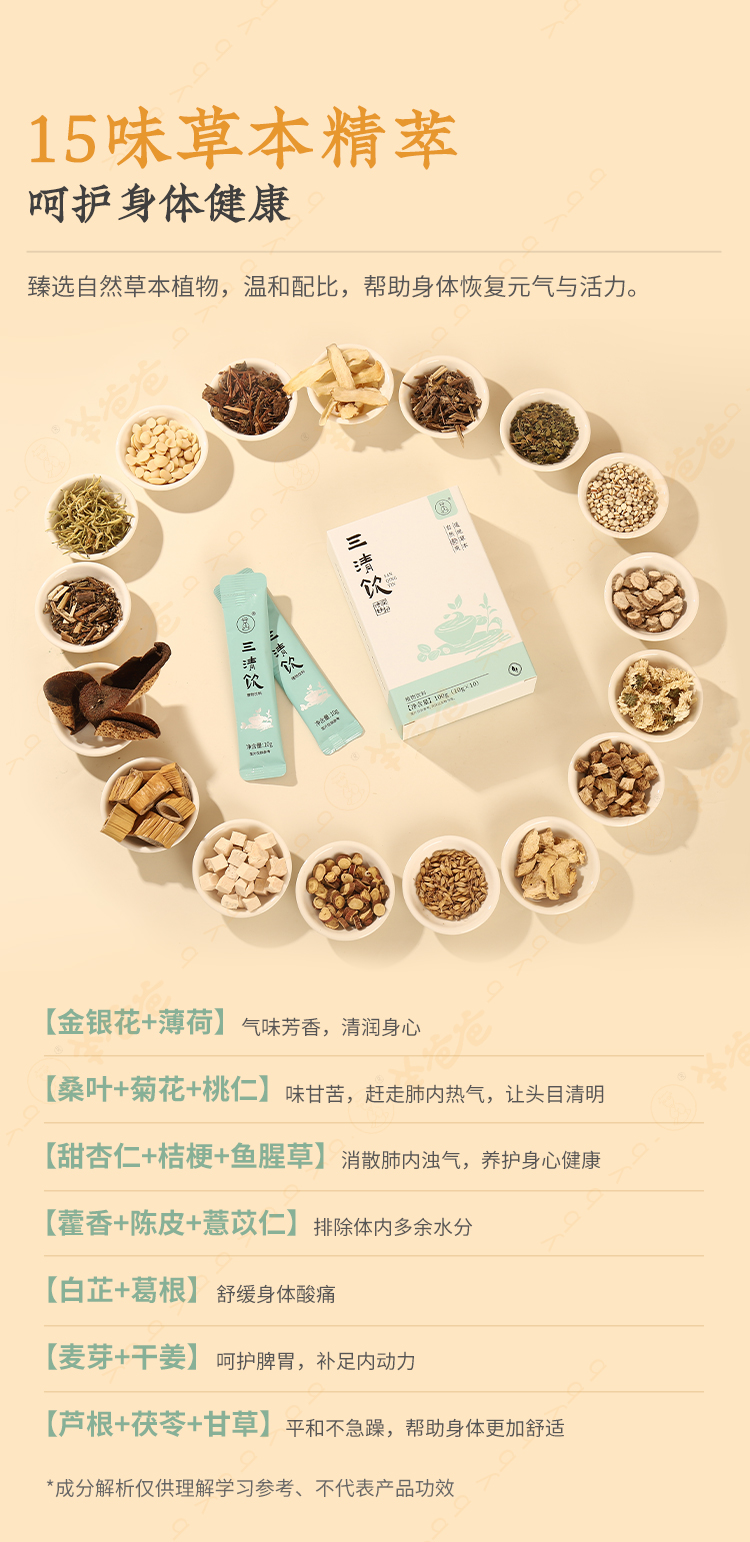 ³【羊爸爸三清饮】15味草本精粹 金银花+芦根+杏仁+桔梗+甘草等 10条/盒 XN03-CRMM-BA