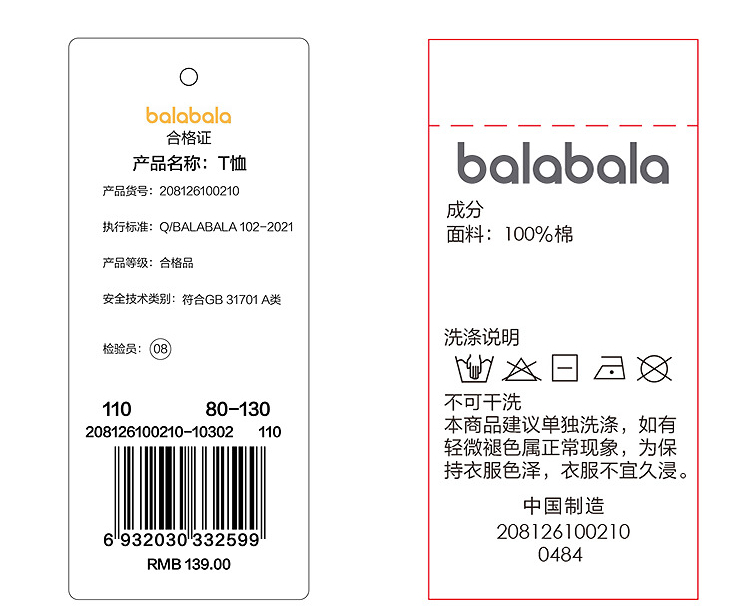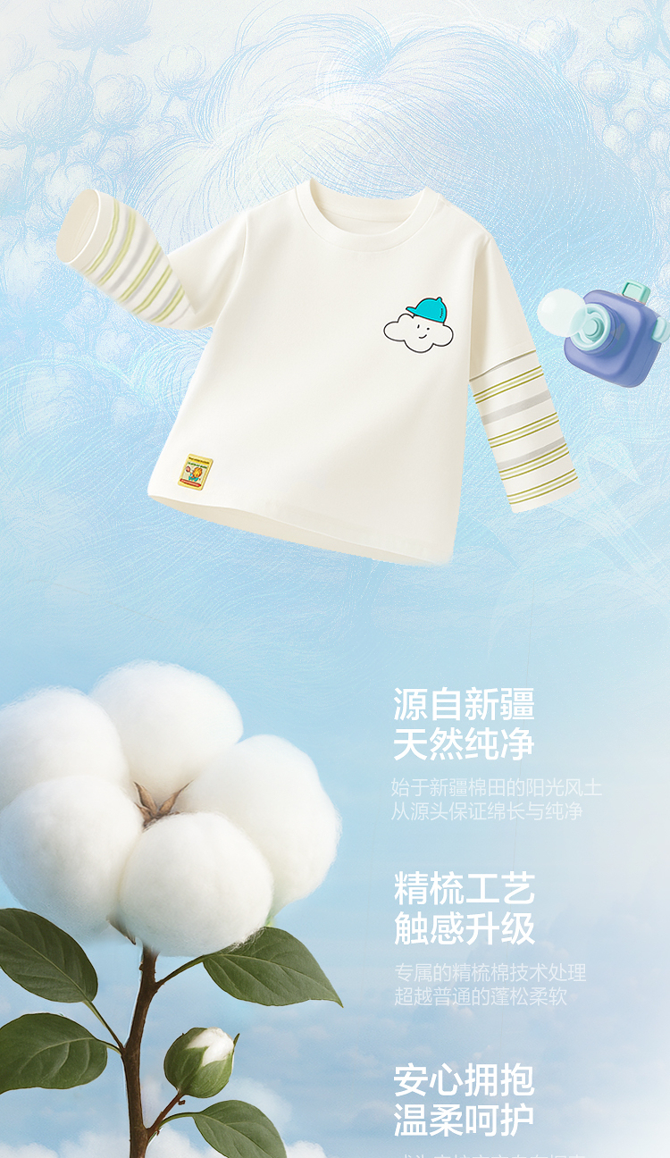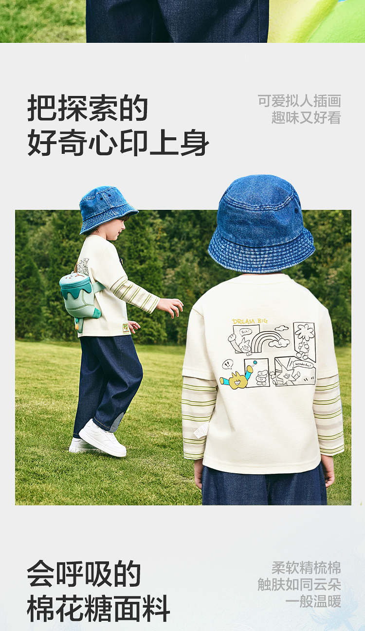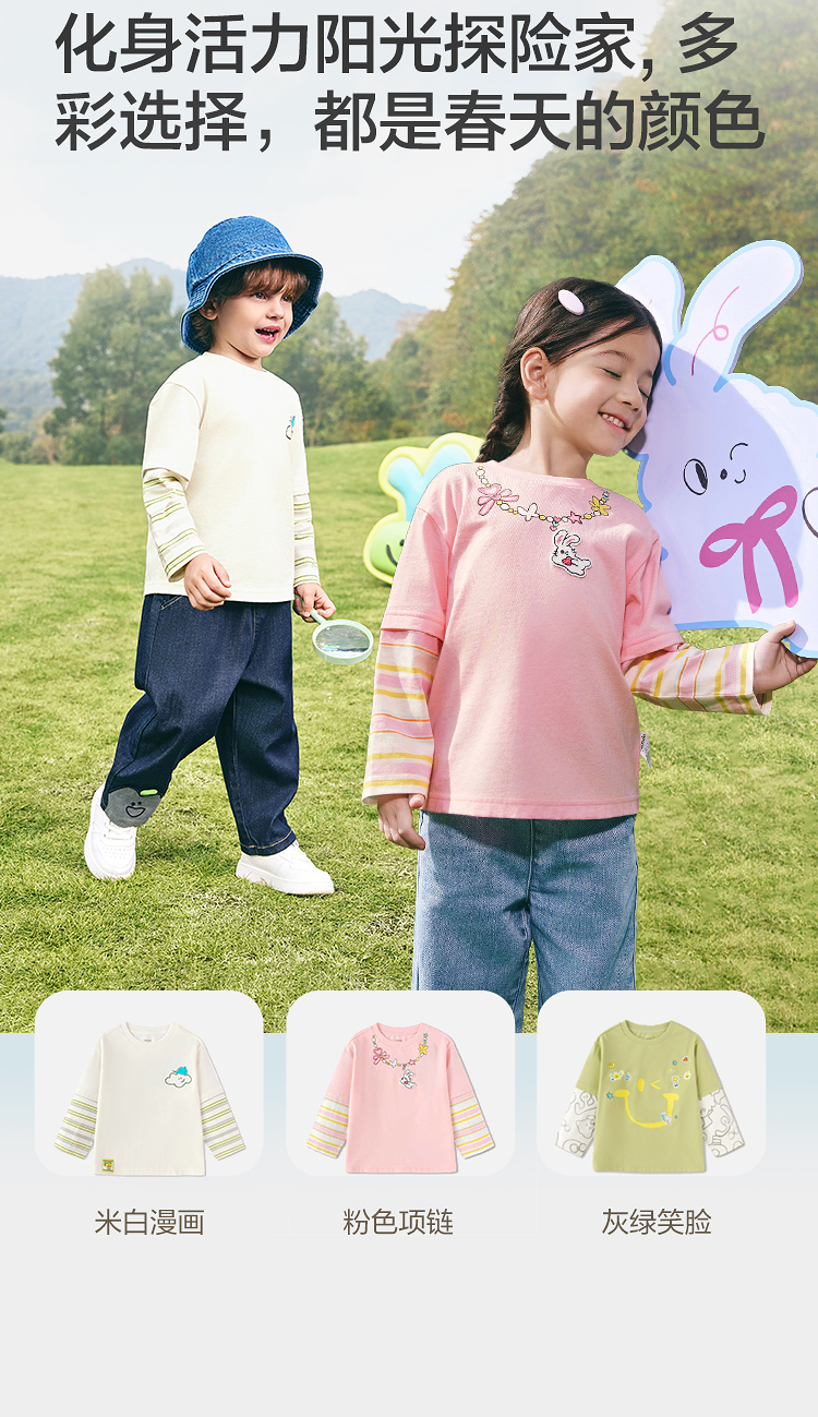 【balaOne】巴拉巴拉童装儿童长袖t恤男女童2026新款春装纯棉上衣