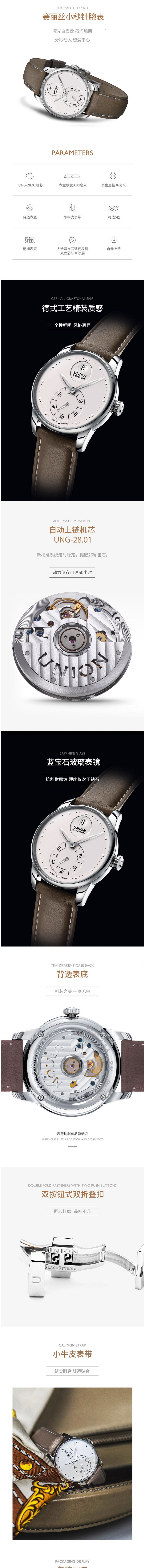 宇联(UNION GLASHÜTTE)德国手表赛丽丝系列小牛皮女士白色小秒针机械腕表 D013.228.16.011.00