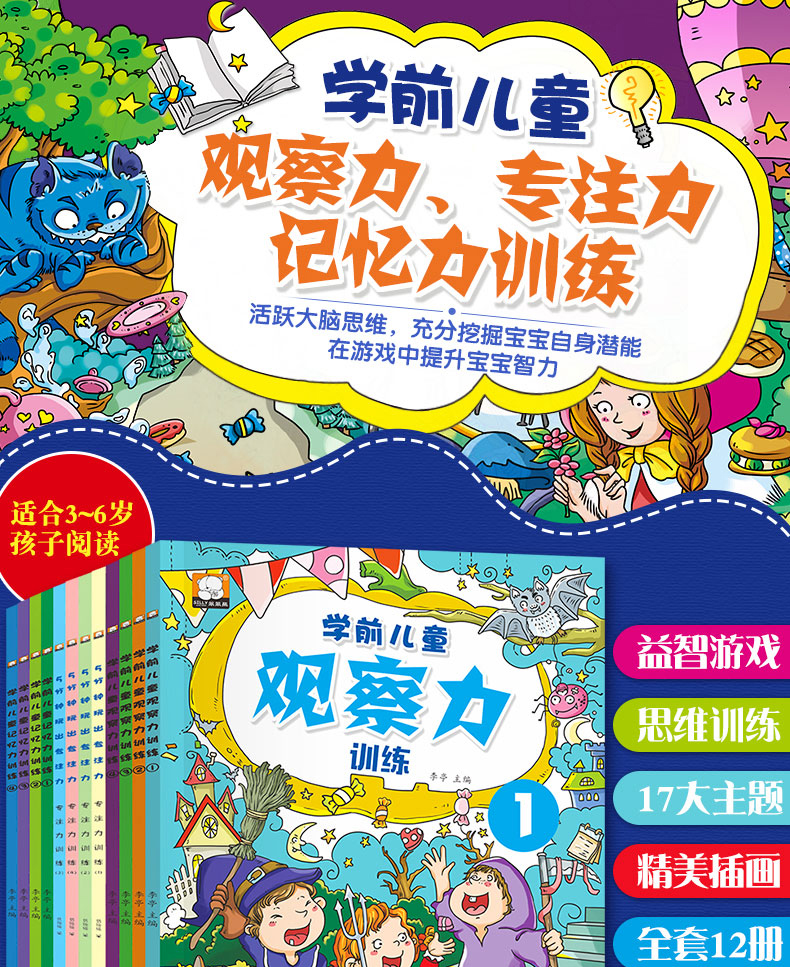 12册找不同迷宫书专注力训练书3-4-6岁儿童益智注意力观察记忆力智力开发大脑思维书籍走全脑学前 培养孩子幼儿逻辑左右脑找茬相同