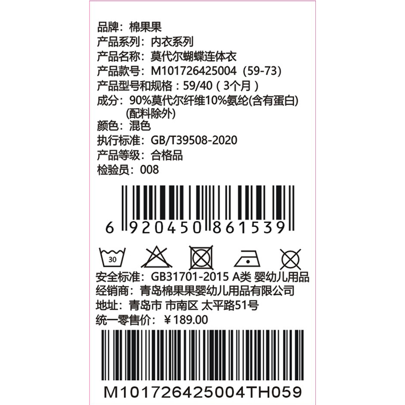 棉果果春季新品商场同款男童女童莫代尔哈衣爬服蝴蝶连体衣M101726425004 商品图5