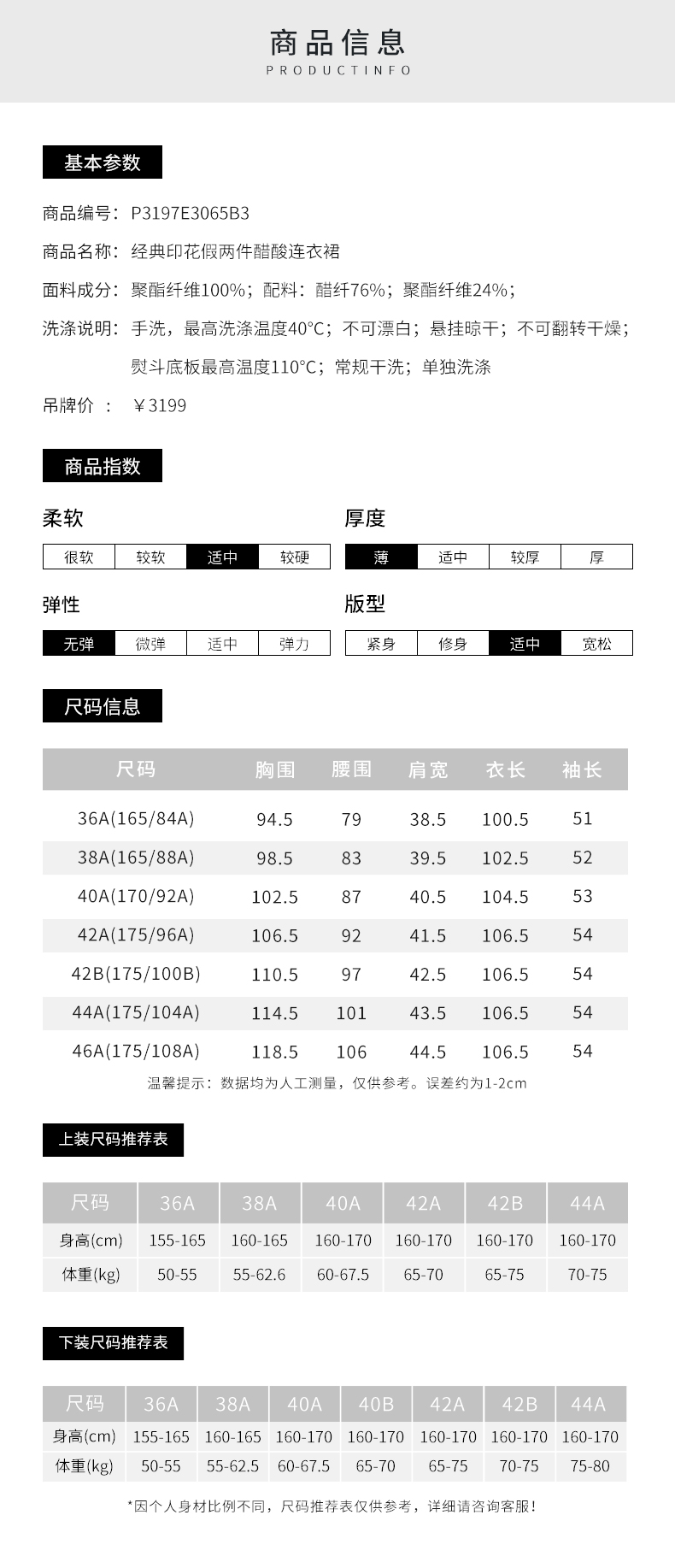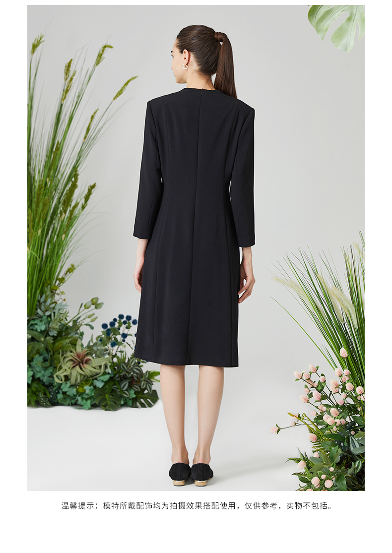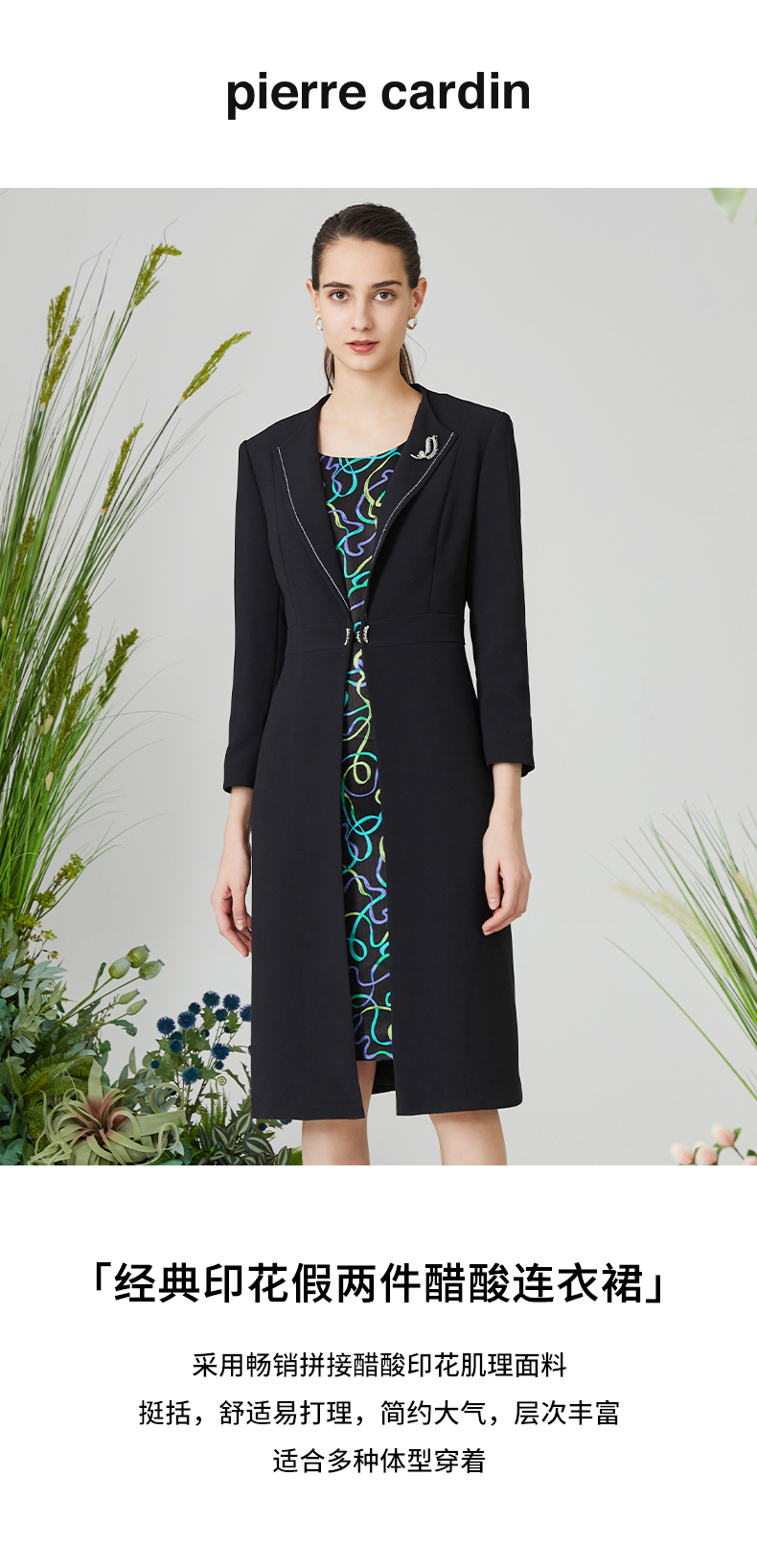 皮尔卡丹女装春季新款通勤经典假两件连衣裙P3197E3065B3