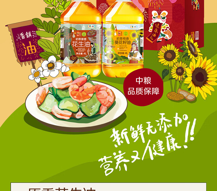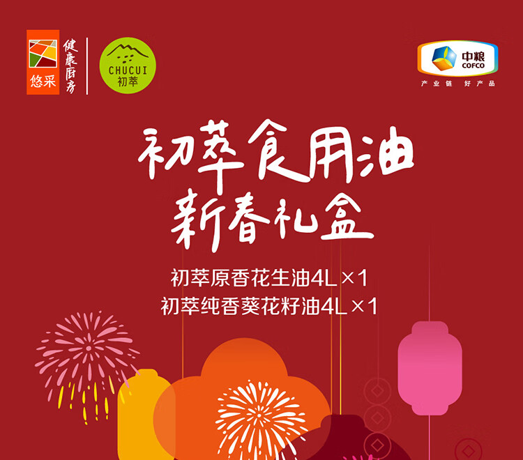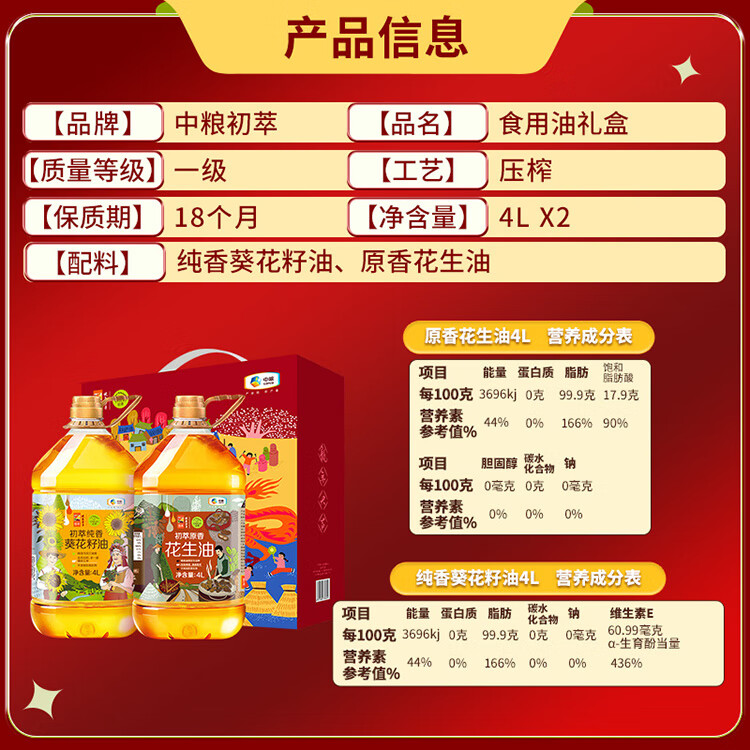 【特惠127.9】中粮初萃食用油礼盒4L*2(初萃原香花生油4L+初萃纯香葵花籽油4L)-(效期至26年3月19日)-专享价
