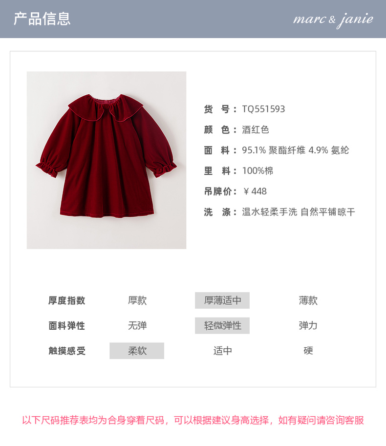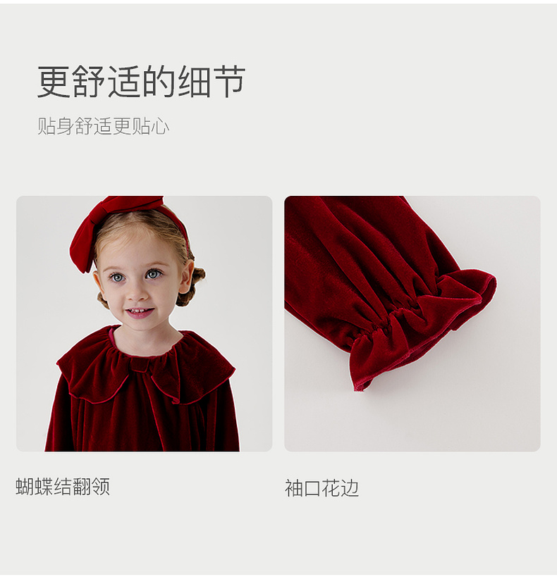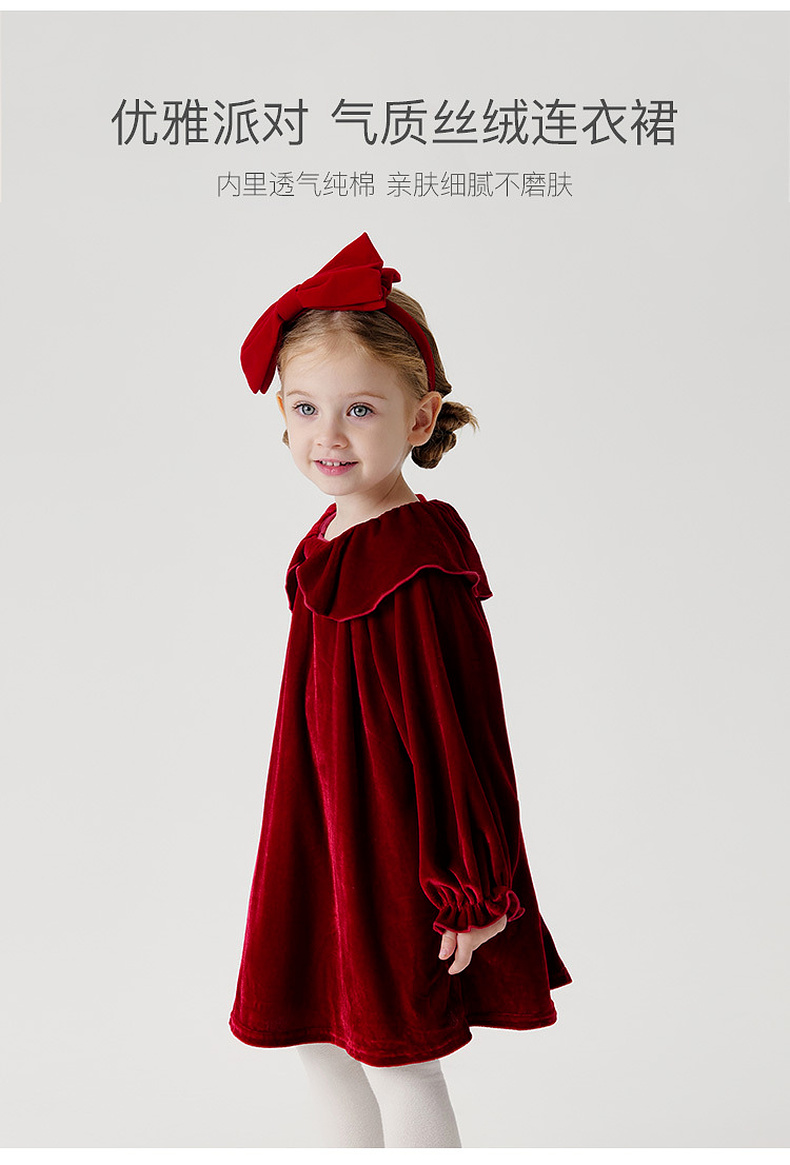 马克珍妮女童优雅蝴蝶领丝绒连衣裙2025年秋冬新款551593