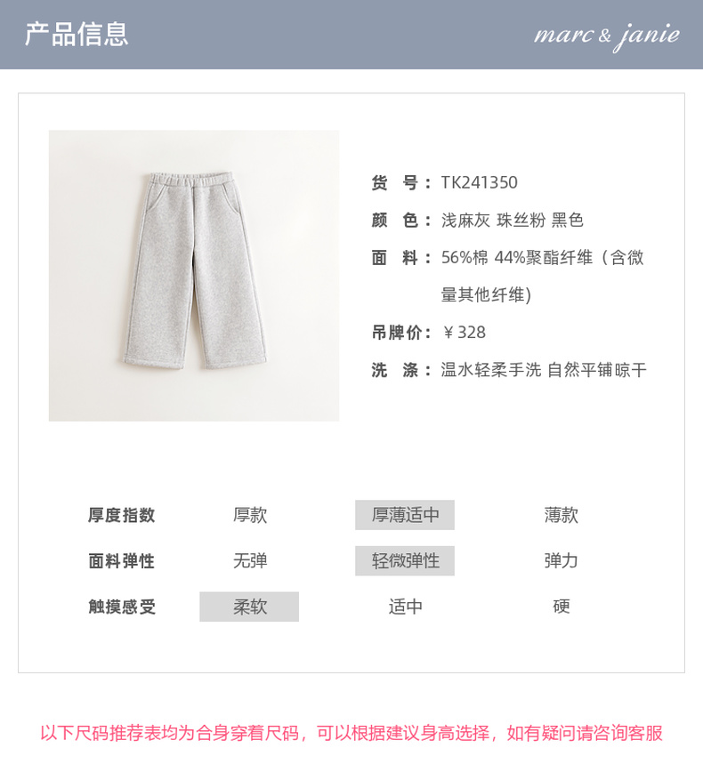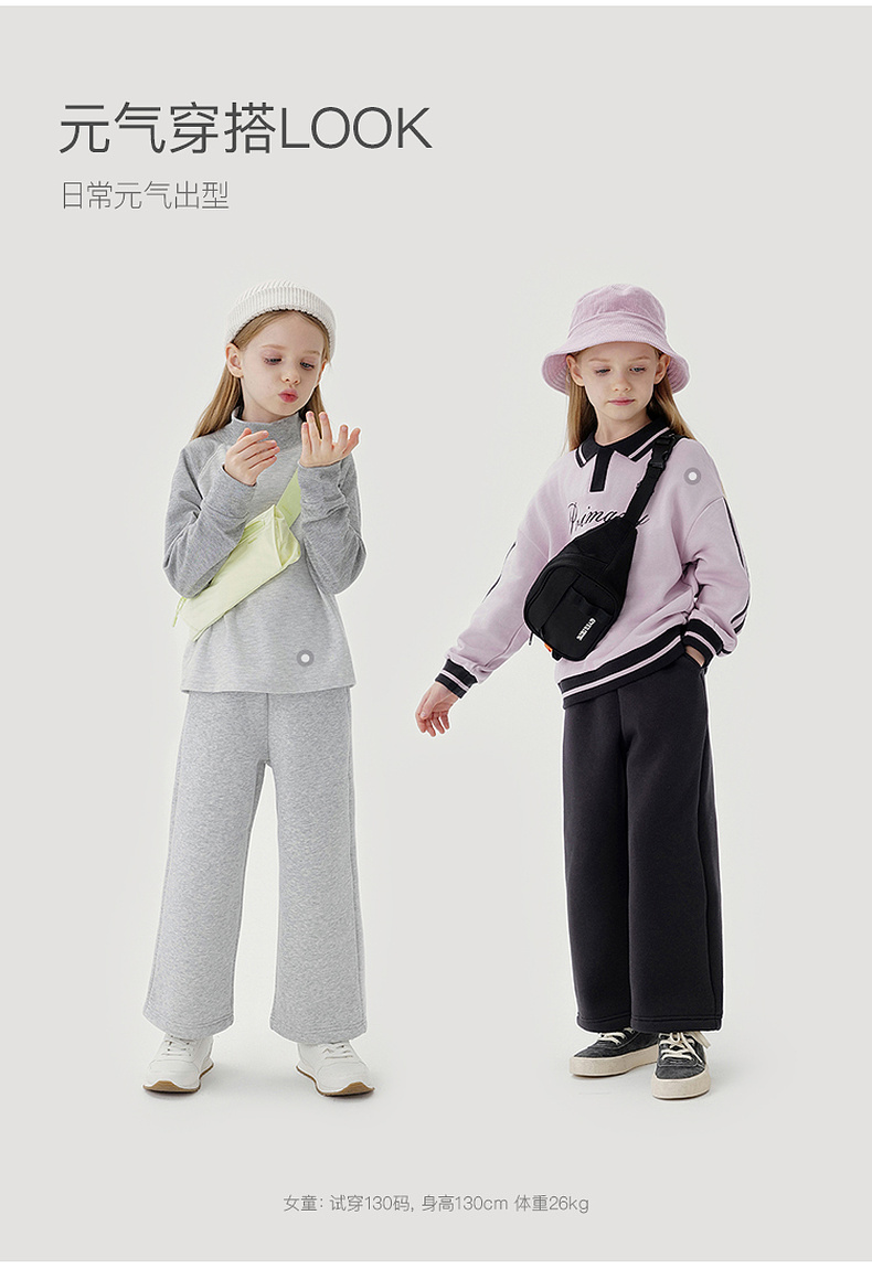 [抗静电]马克珍妮女童百搭宽松加绒阔腿裤儿童裤子冬装新款241350