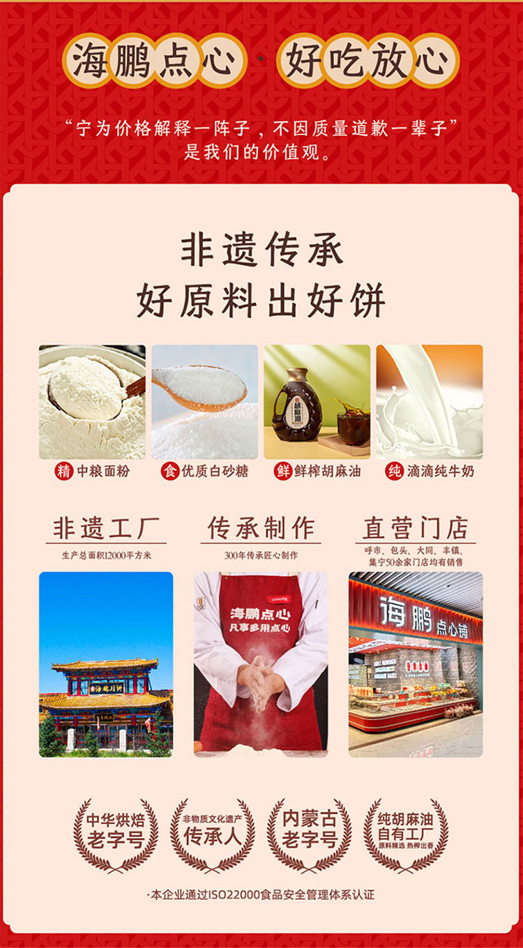 【传统月饼】海鹏丰镇月饼玫瑰、红枣、冰糖、黑糖蜂蜜、木糖醇月饼特色胡麻油糕点5枚装