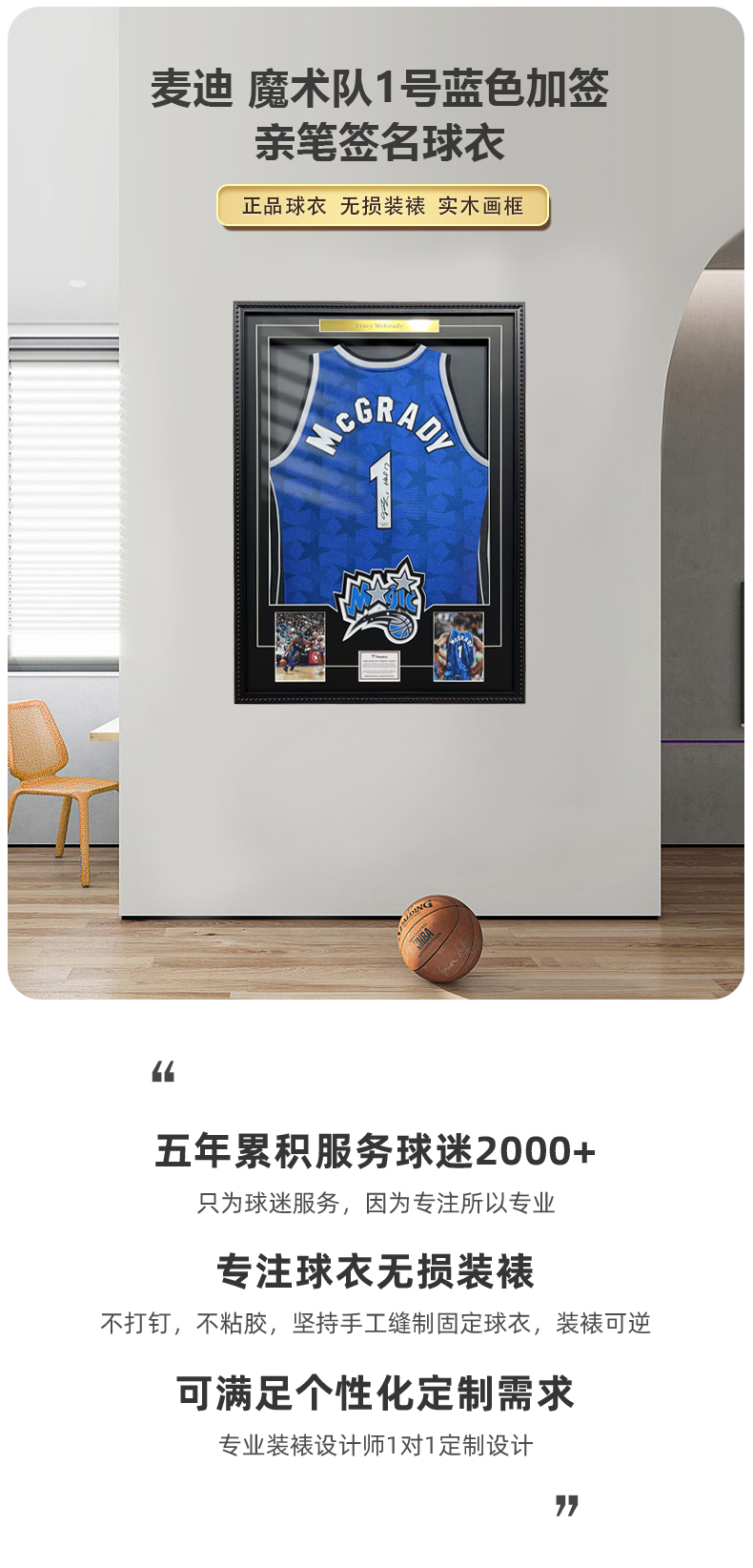 收藏系列 麦迪 魔术队1号蓝色加签款 亲笔签名球衣