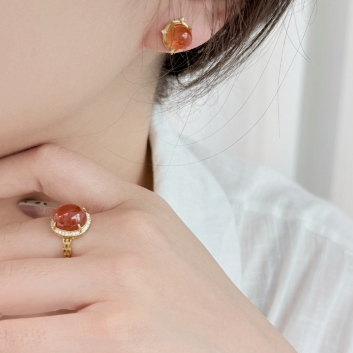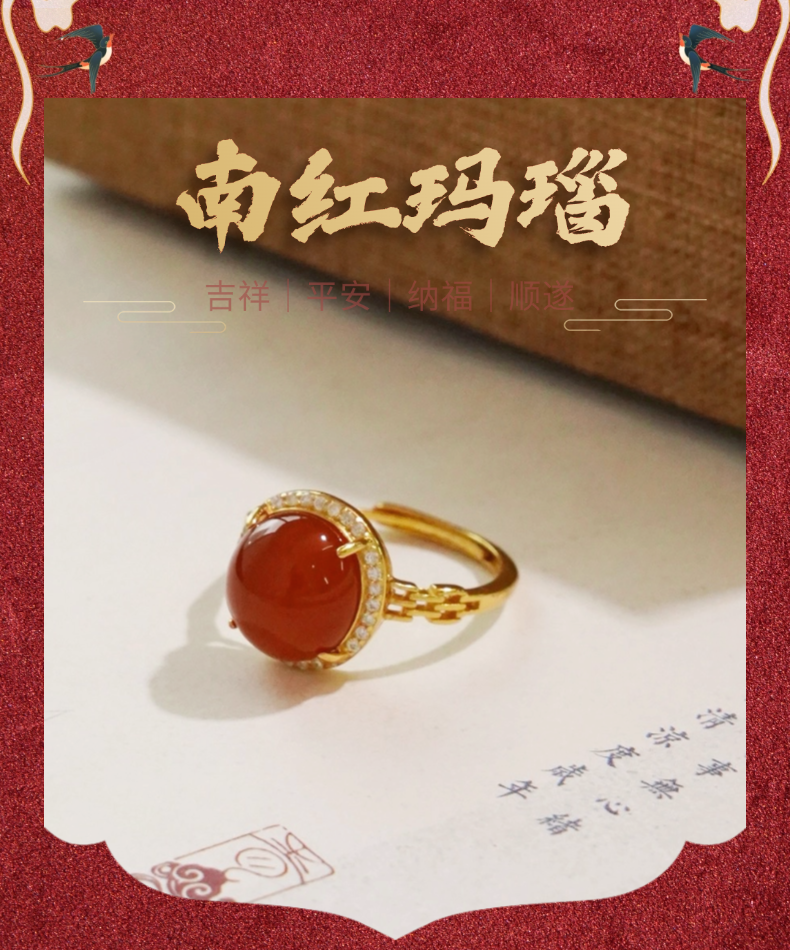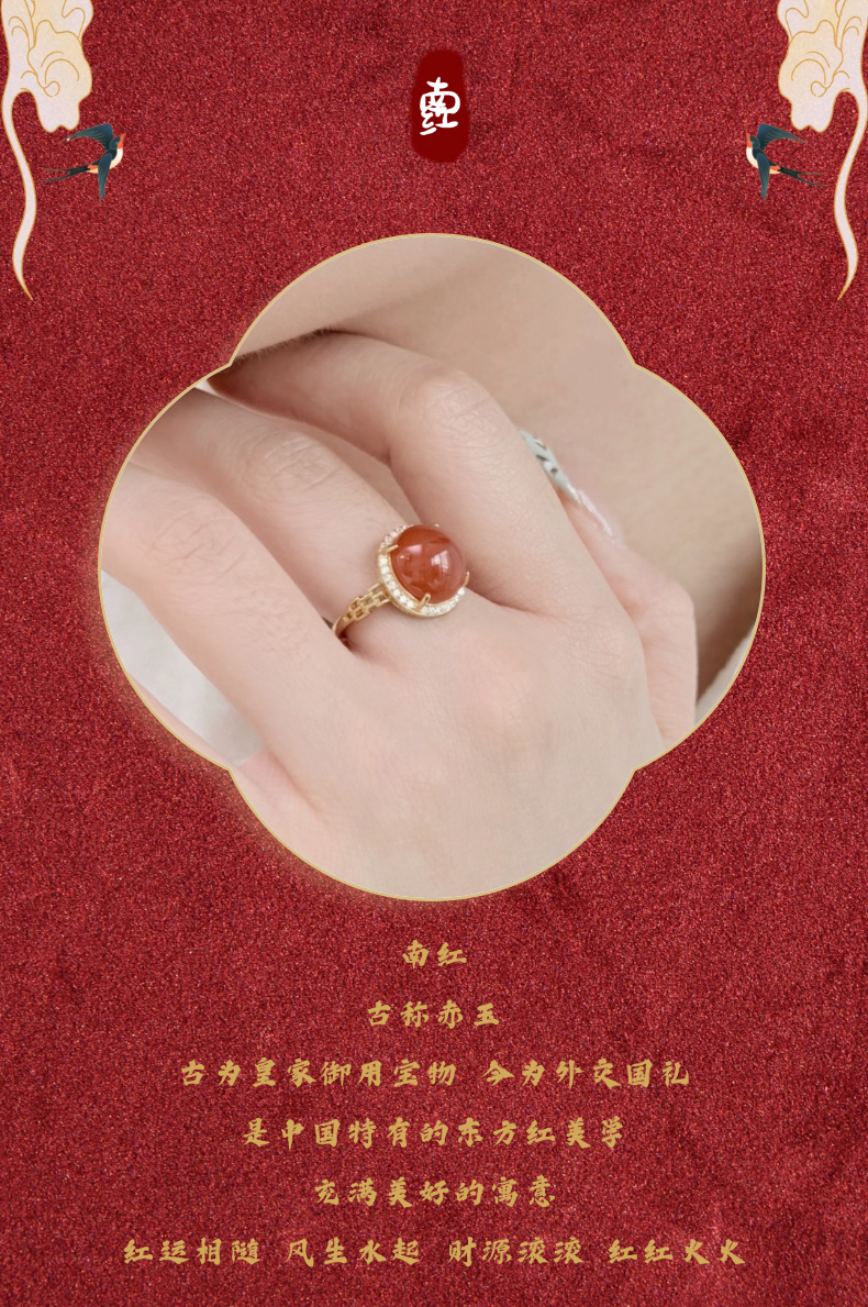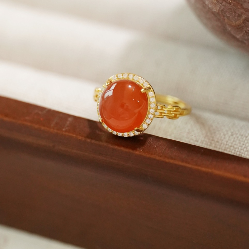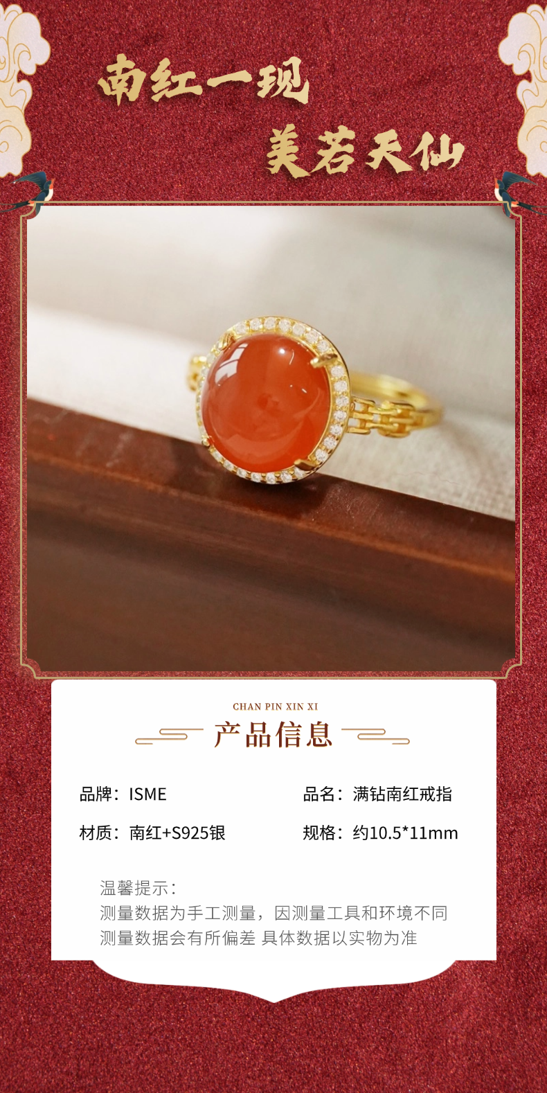 ISME满钻南红戒指 红玛瑙喜气红运富贵吉祥 10mm大单珠戒指红色首饰