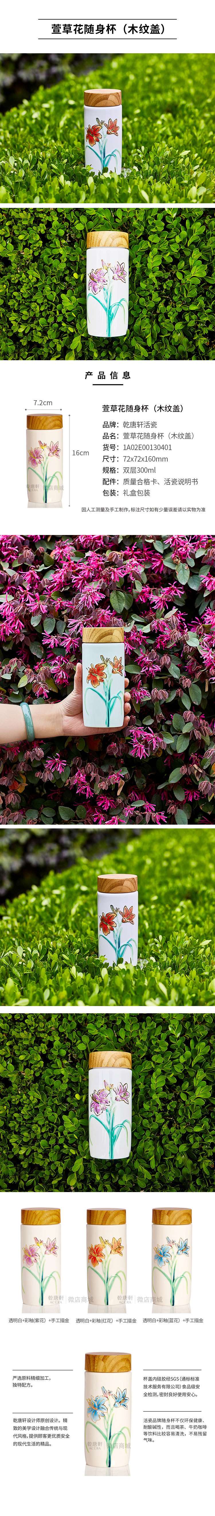 萱草花随身杯(木纹盖)双层300ml 可定制