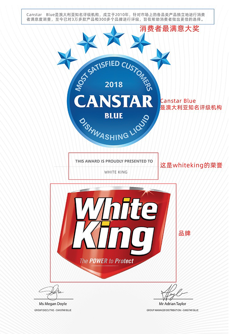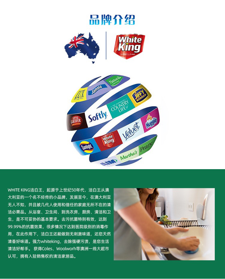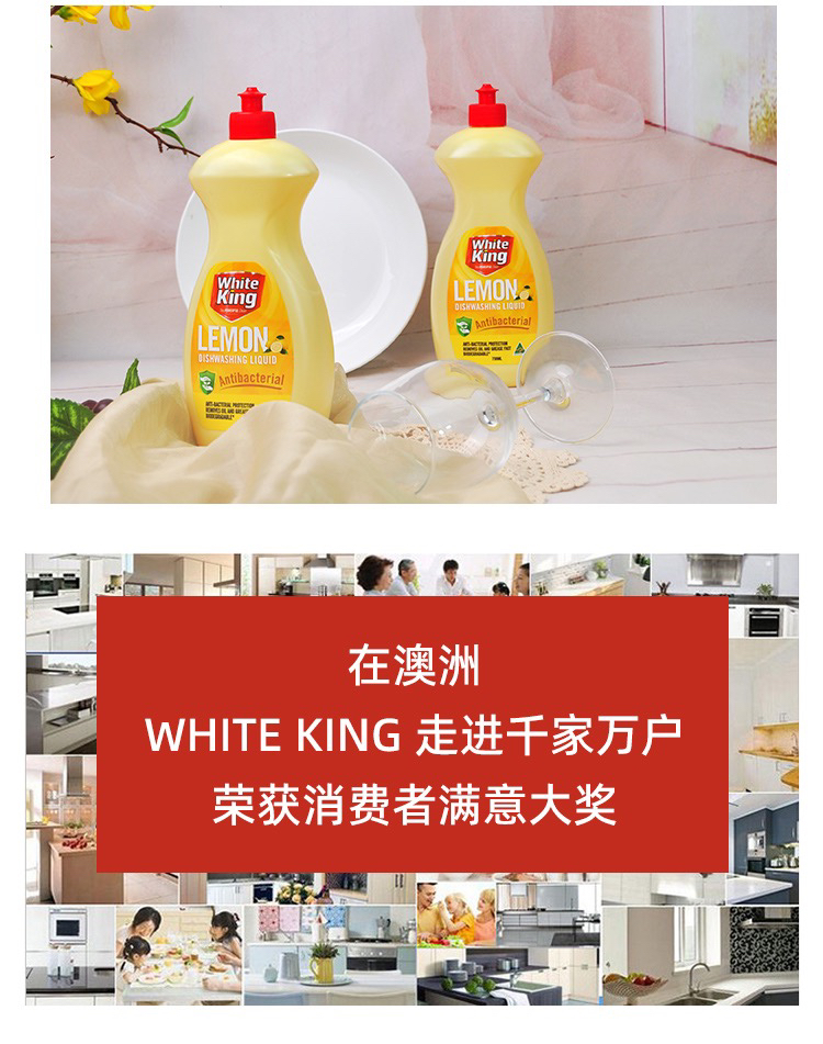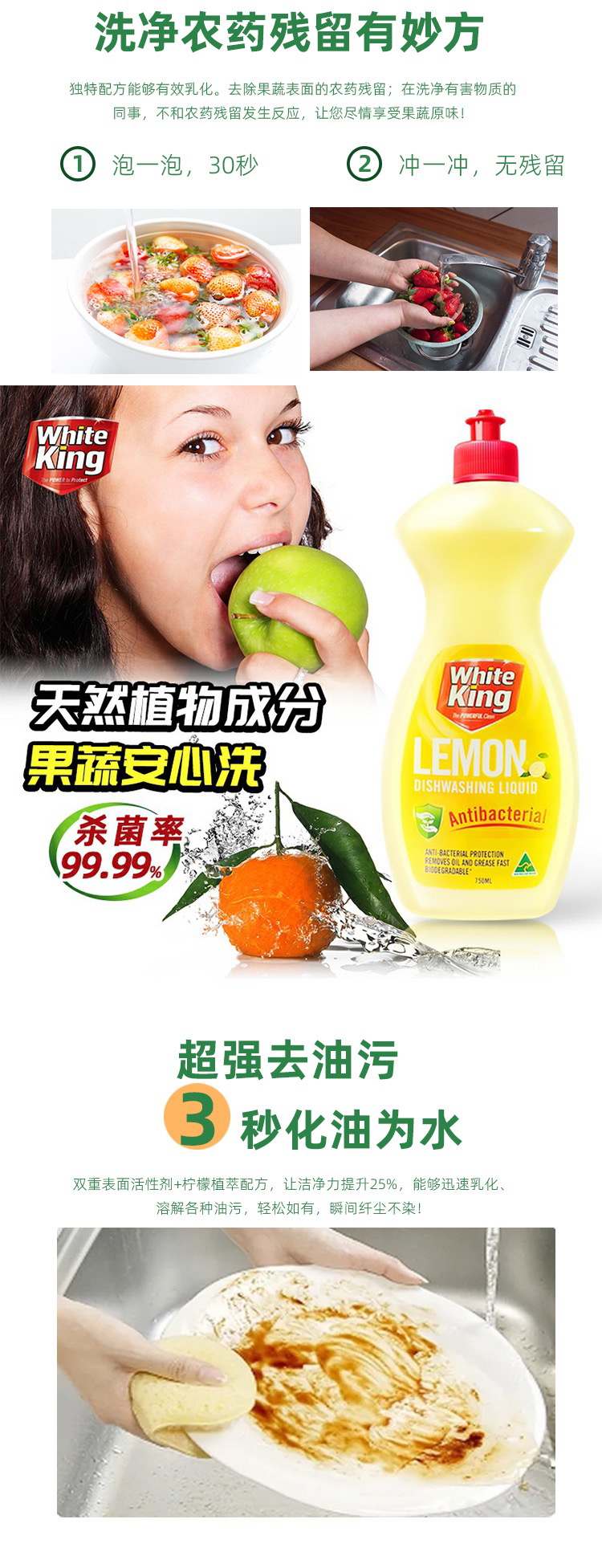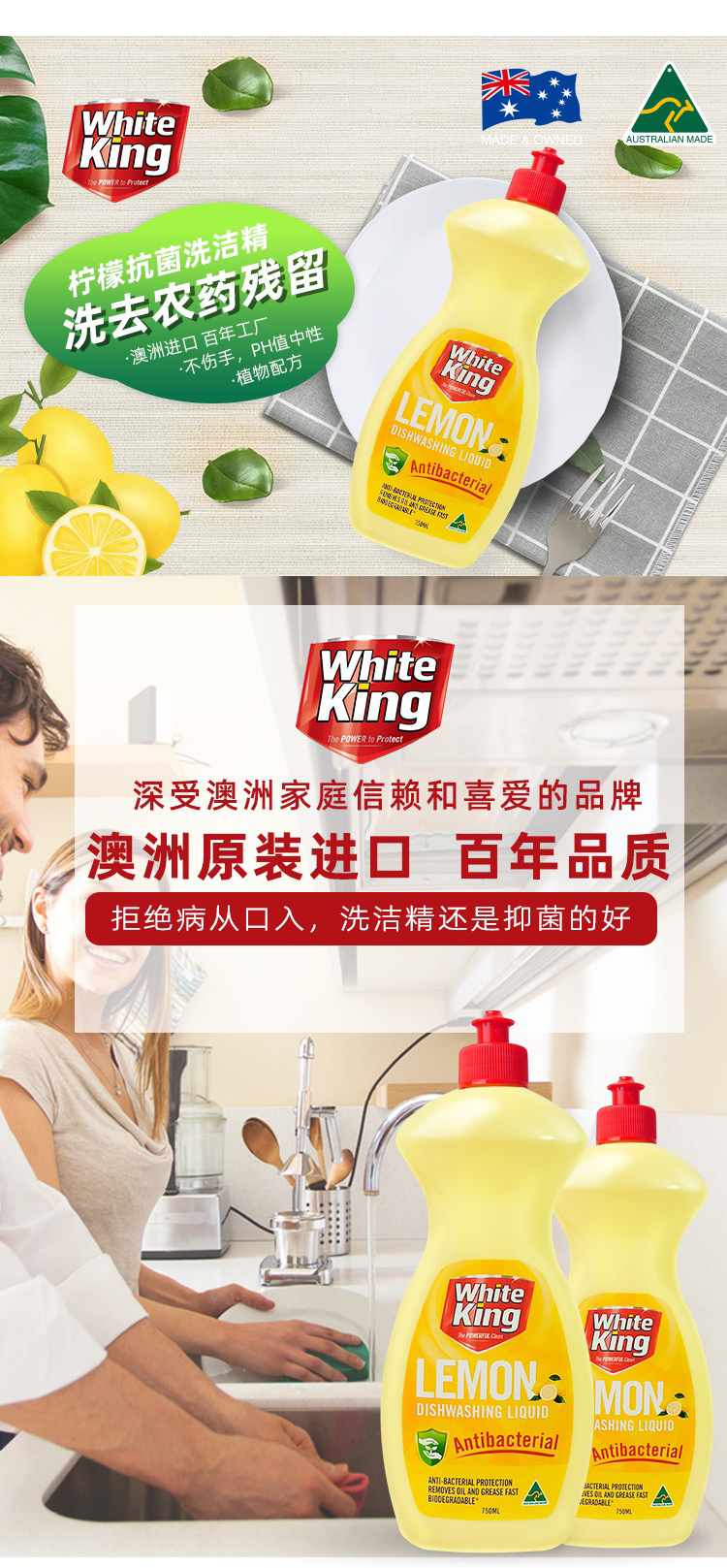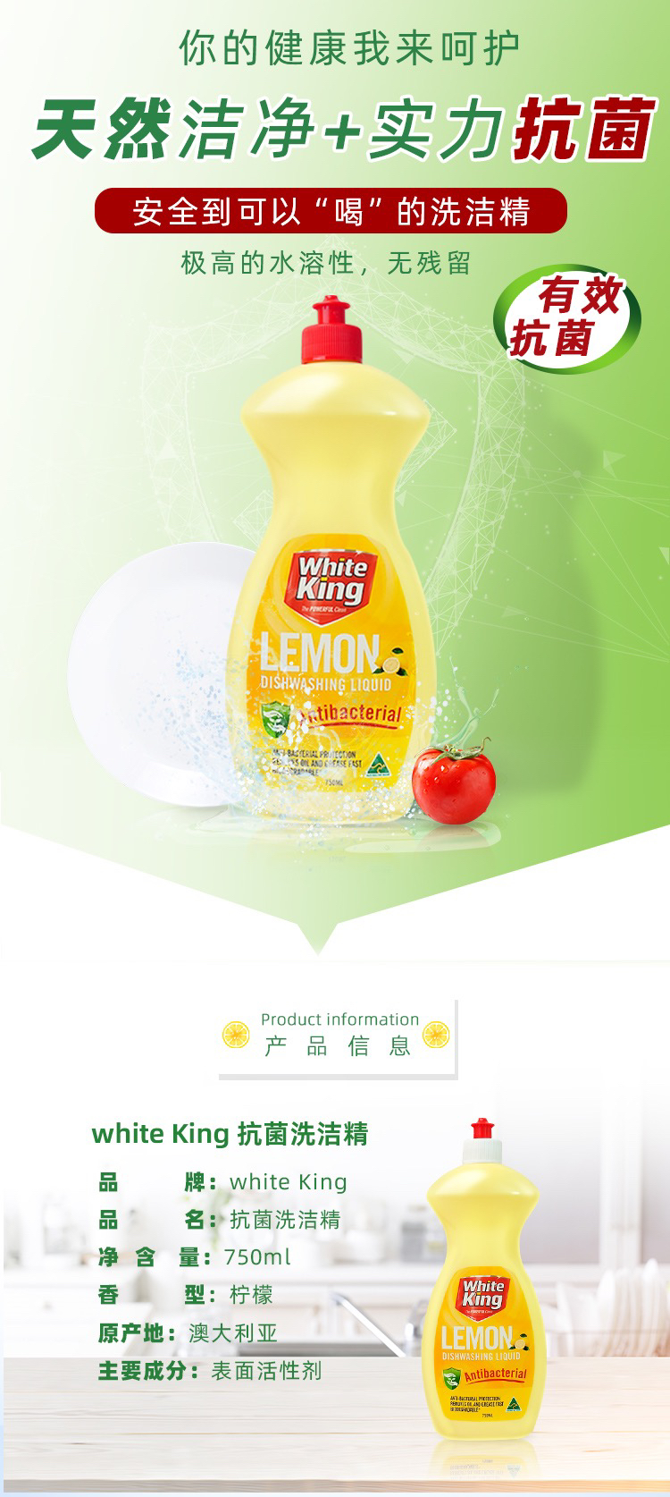 澳洲进口whiteking抑菌浓缩洗洁精洗碗液750ml强力去油污可洗果蔬
