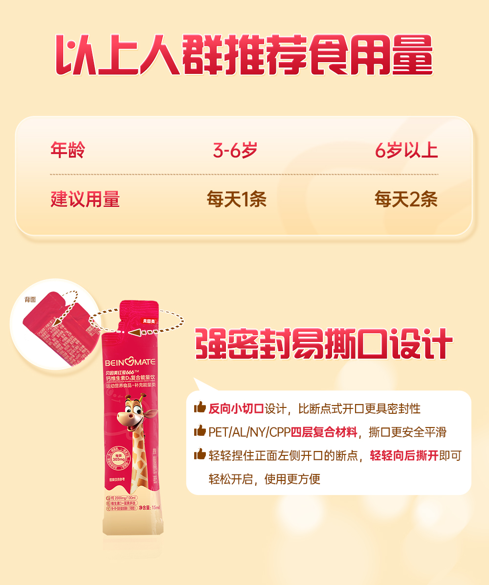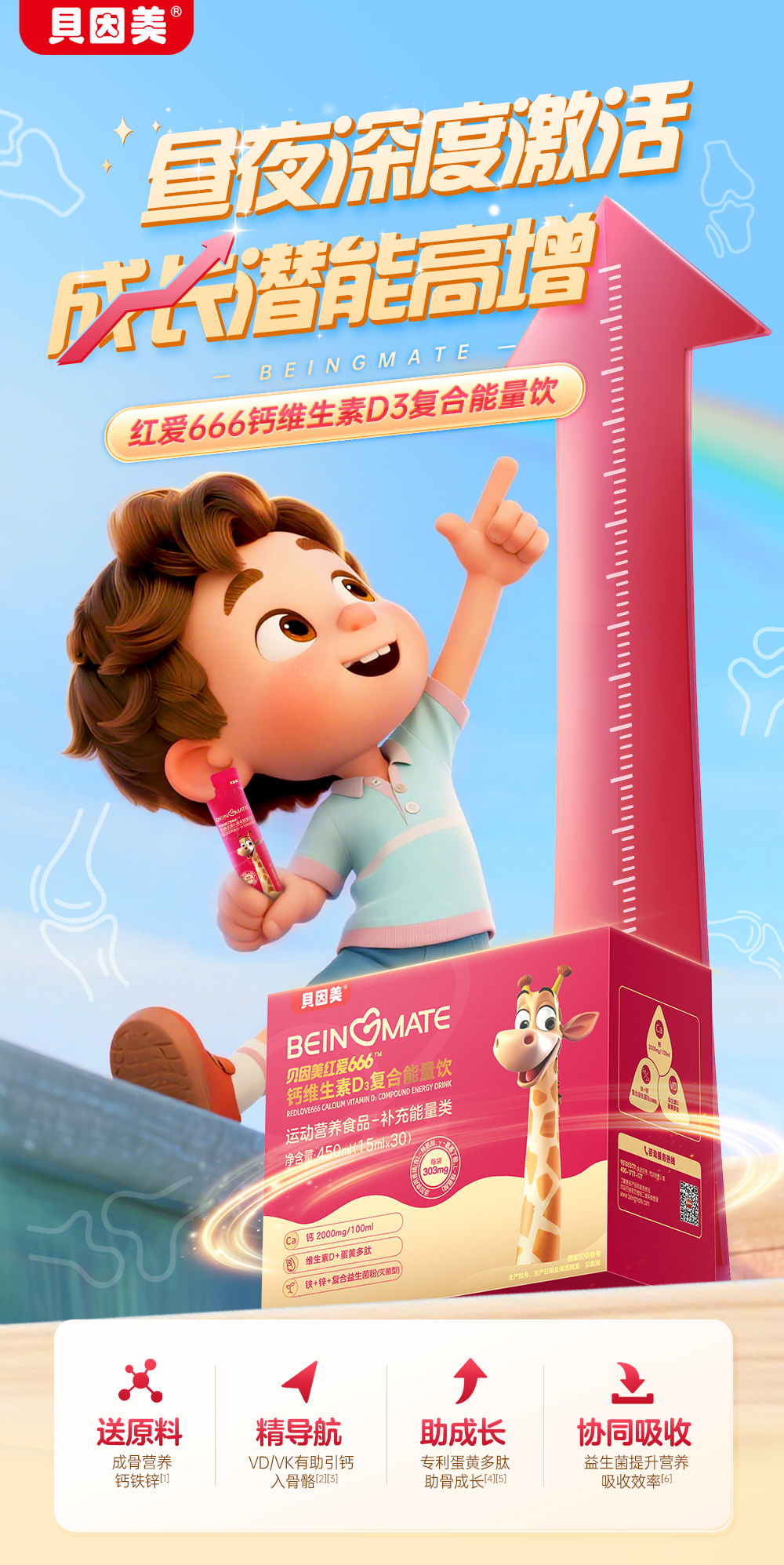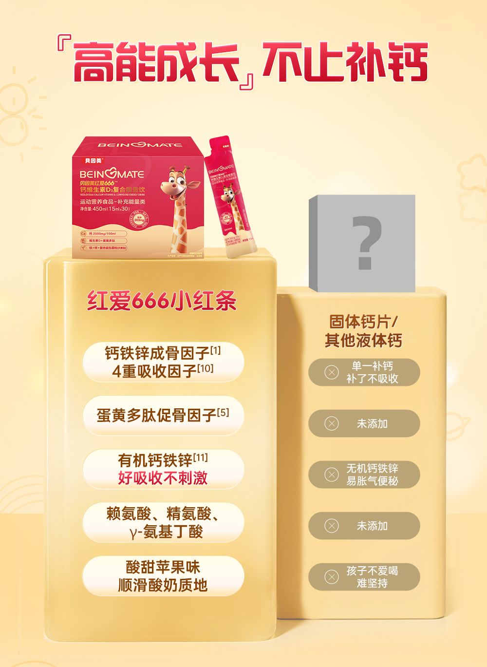 贝因美红爱666 钙维生素D3复合能量饮1盒(15ml*30条)