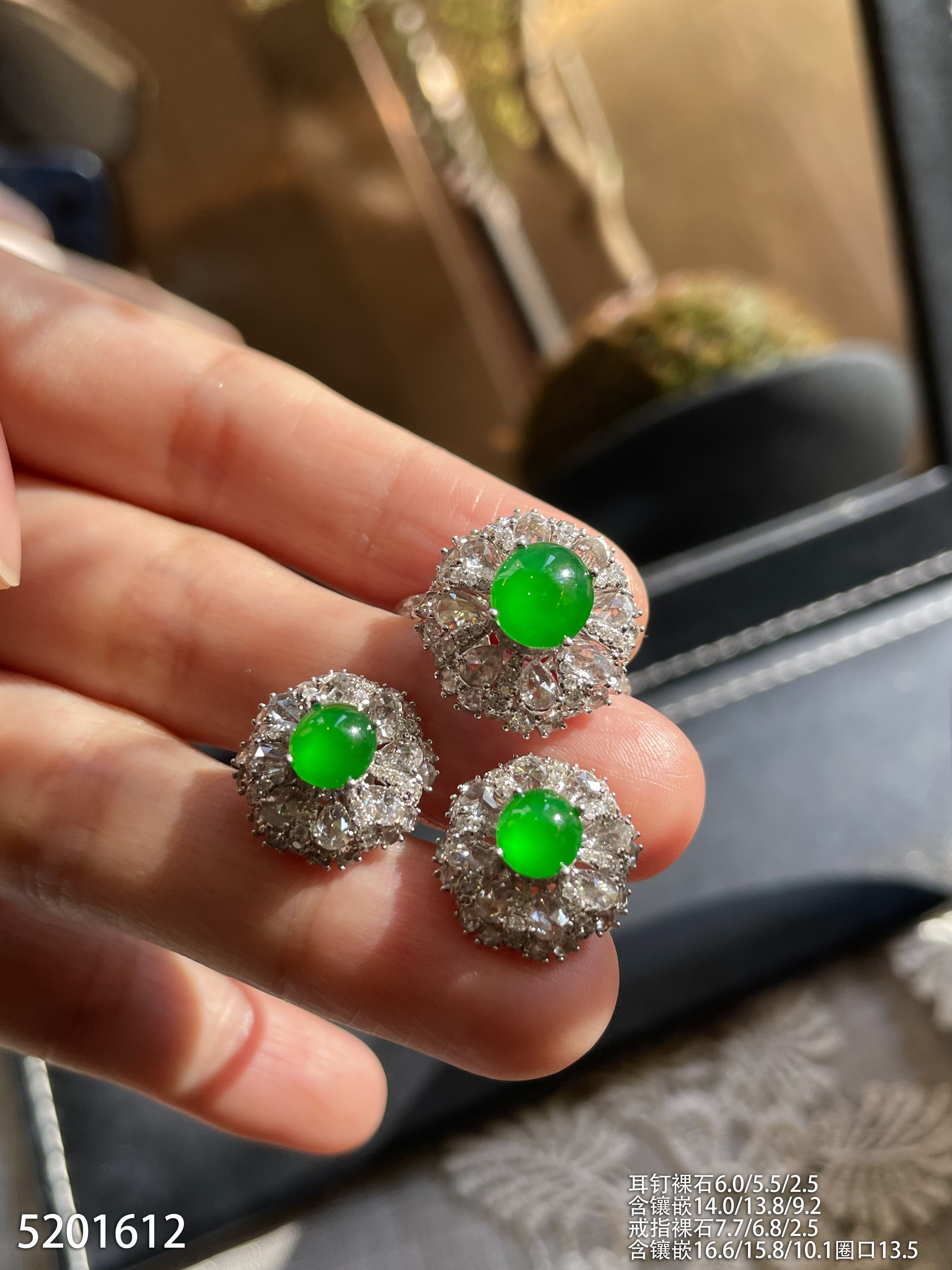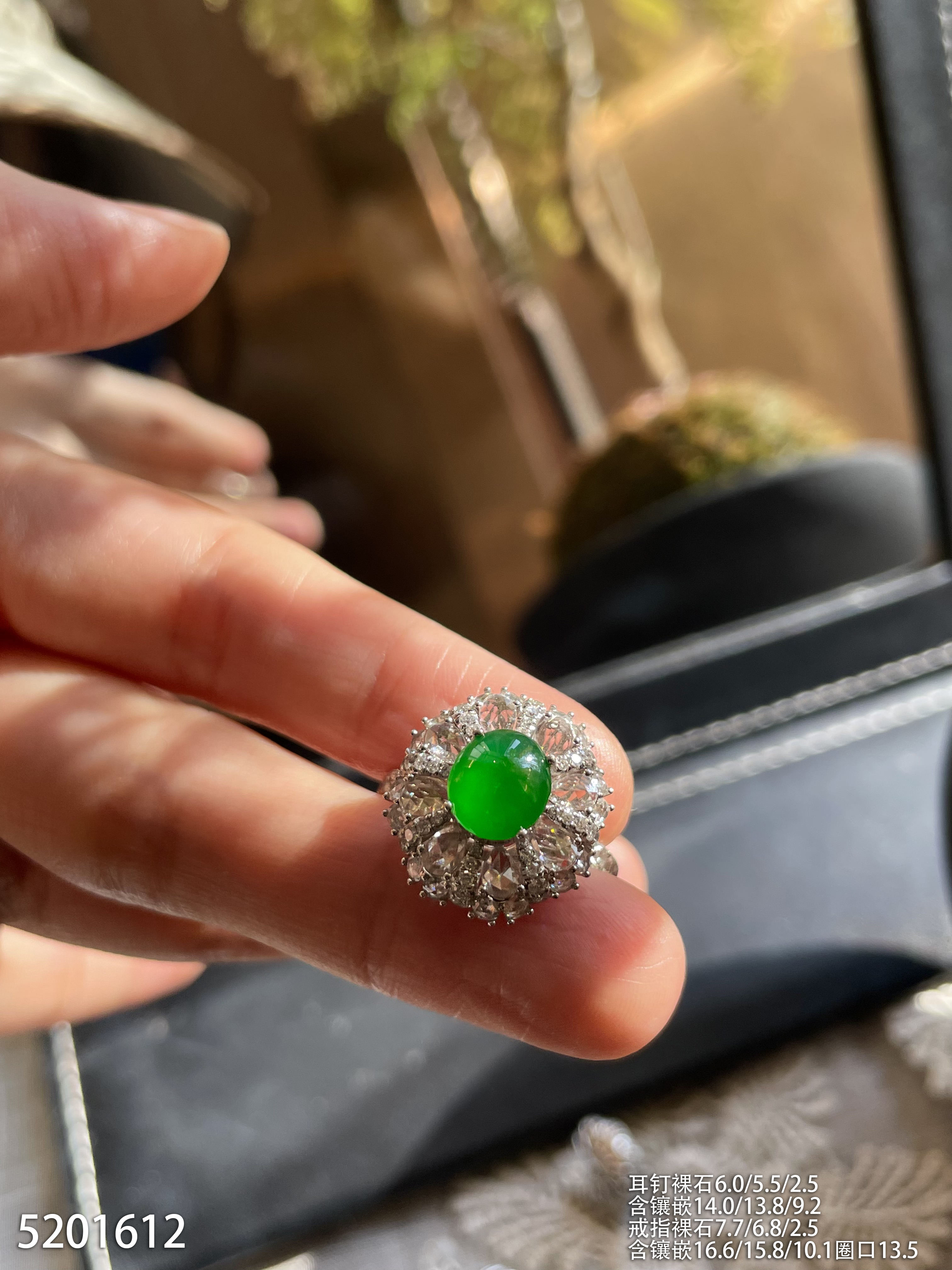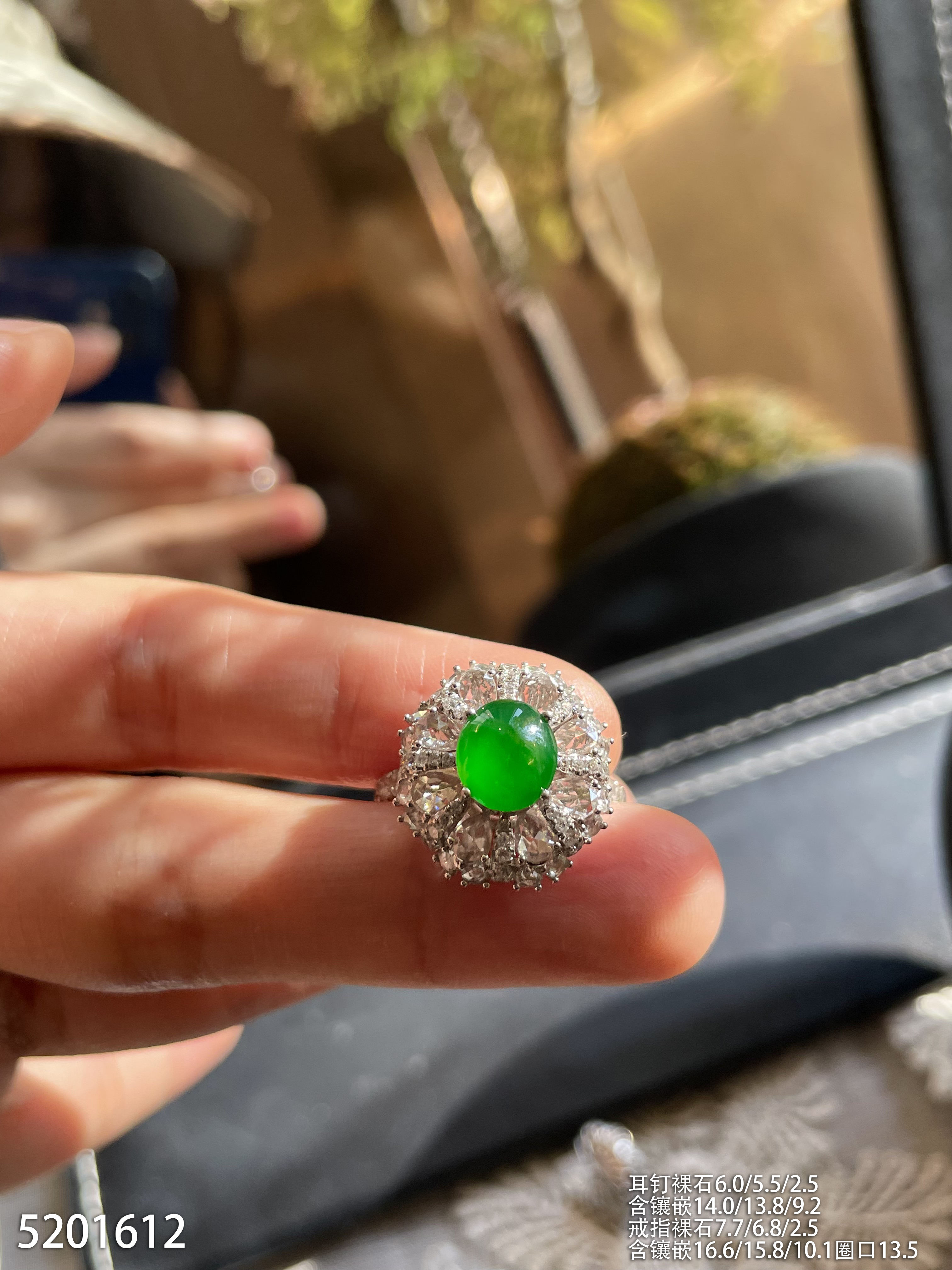 120-1232908,玻璃种木那艳绿蛋面戒指,具体价格微信咨询