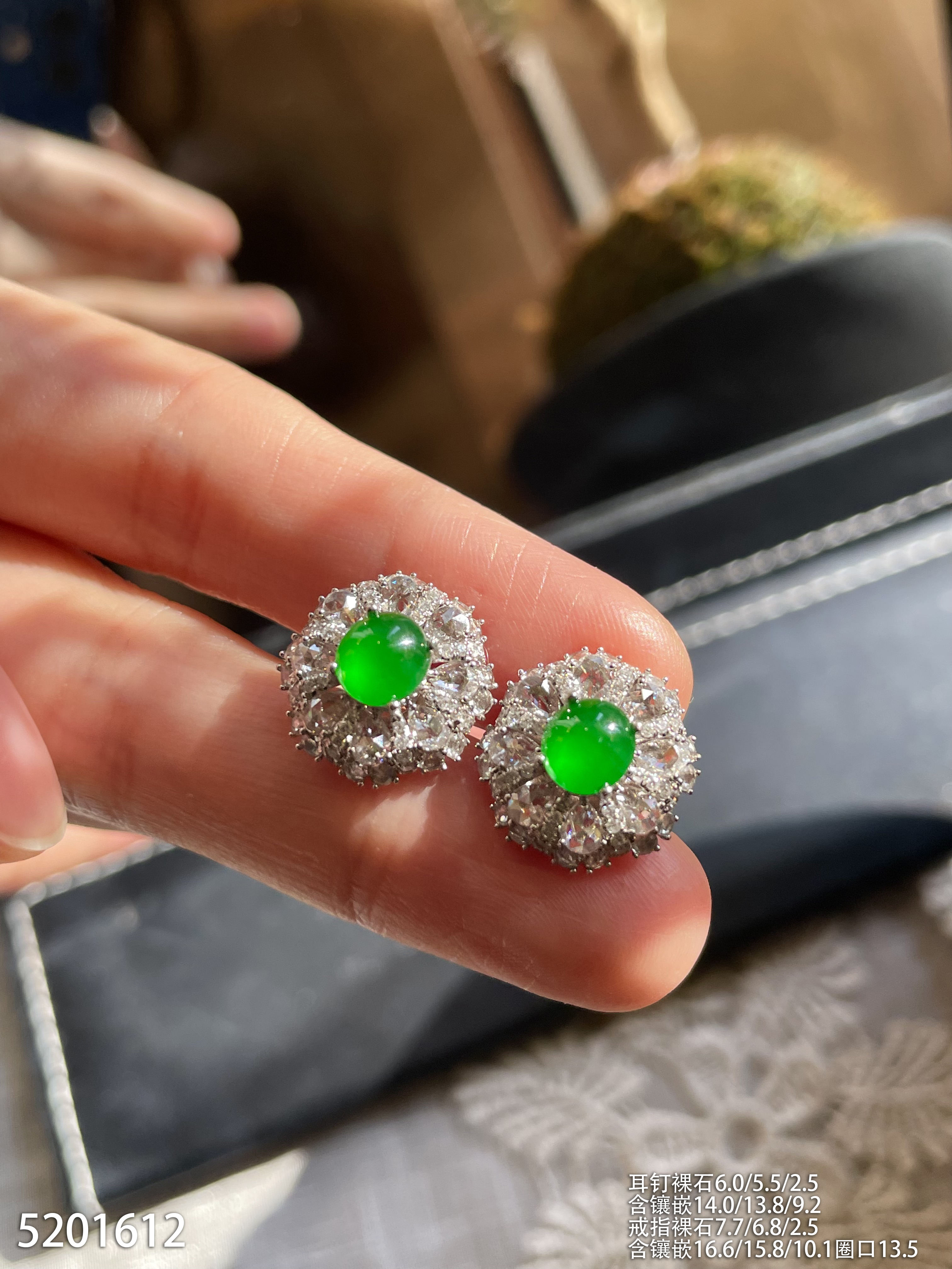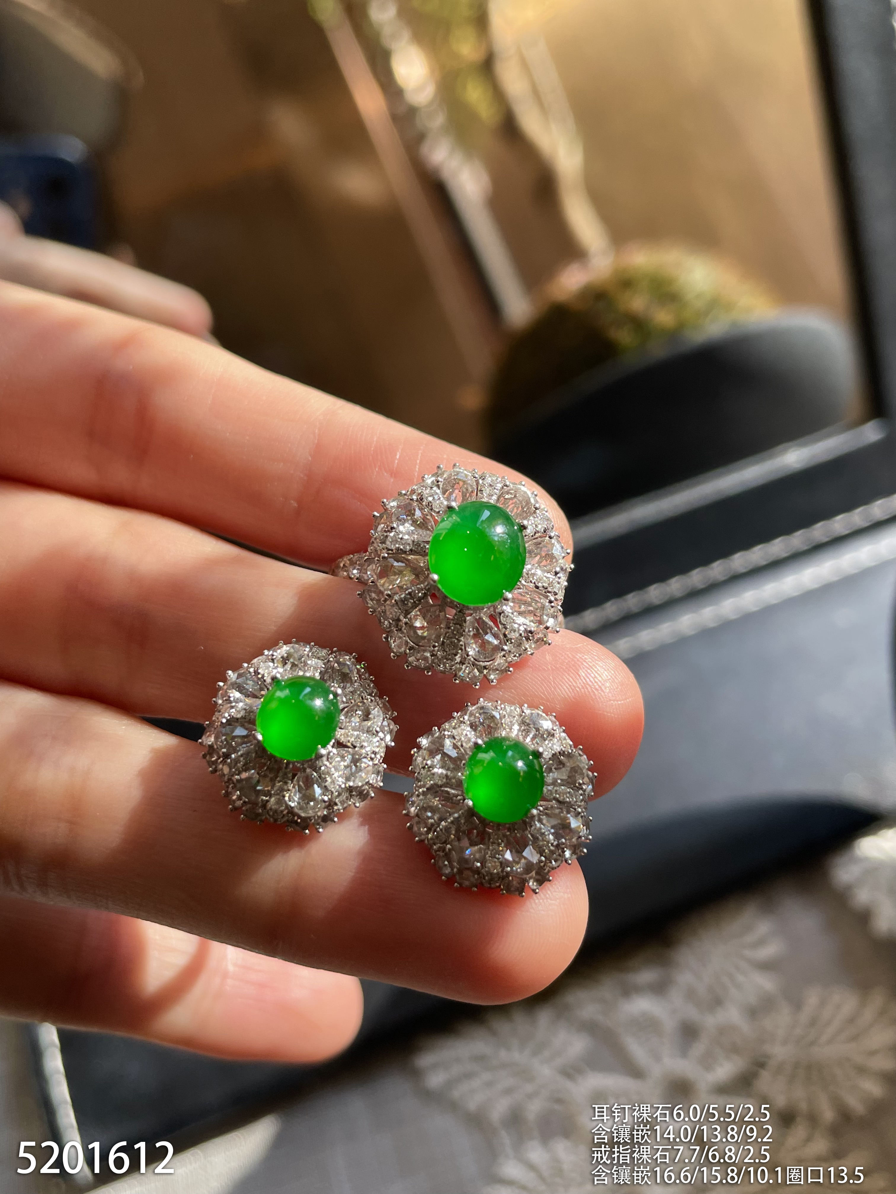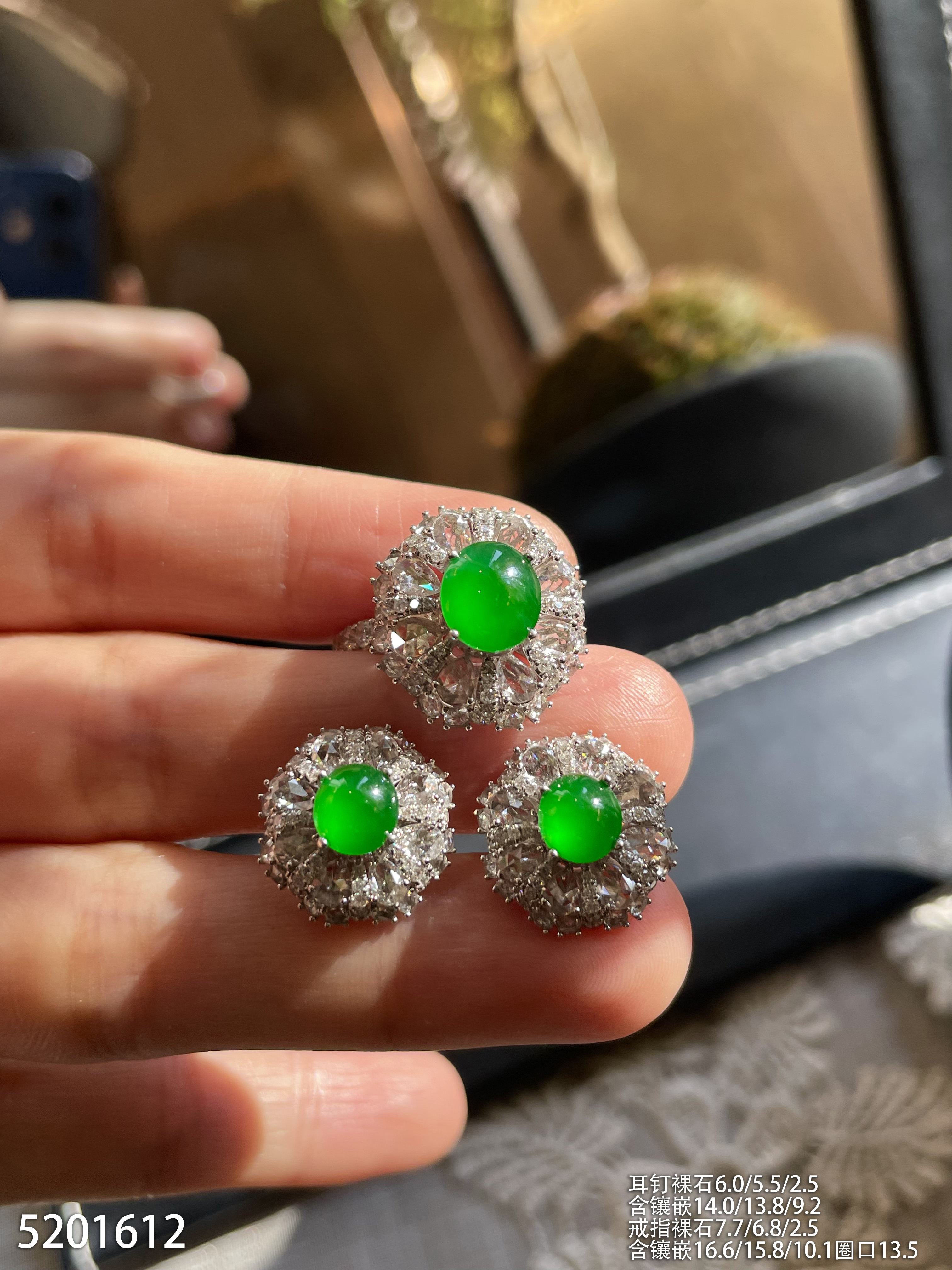 120-1232908,玻璃种木那艳绿蛋面戒指,具体价格微信咨询