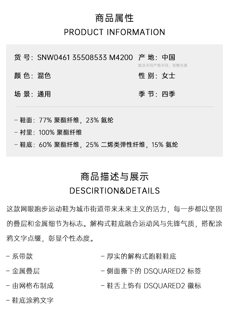 DSQUARED2 女士 Faster系列 网眼休闲运动鞋 混色 SNW0461 35508533 M4200