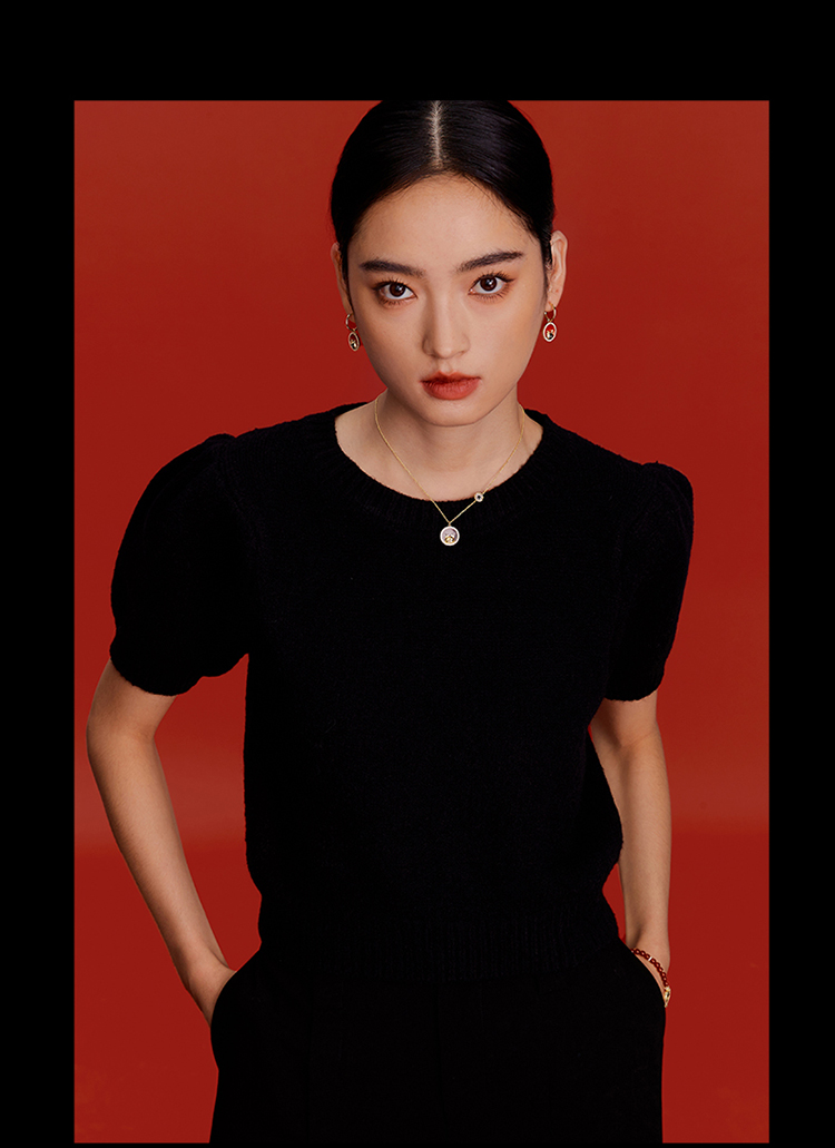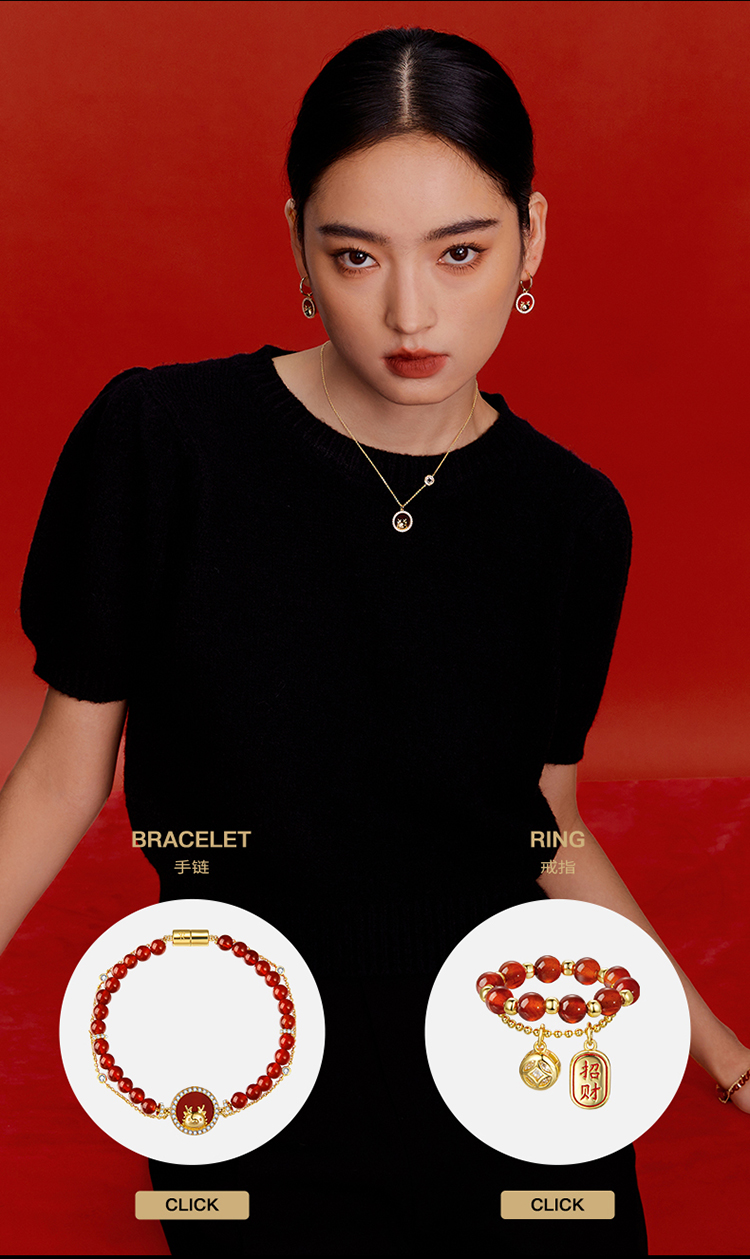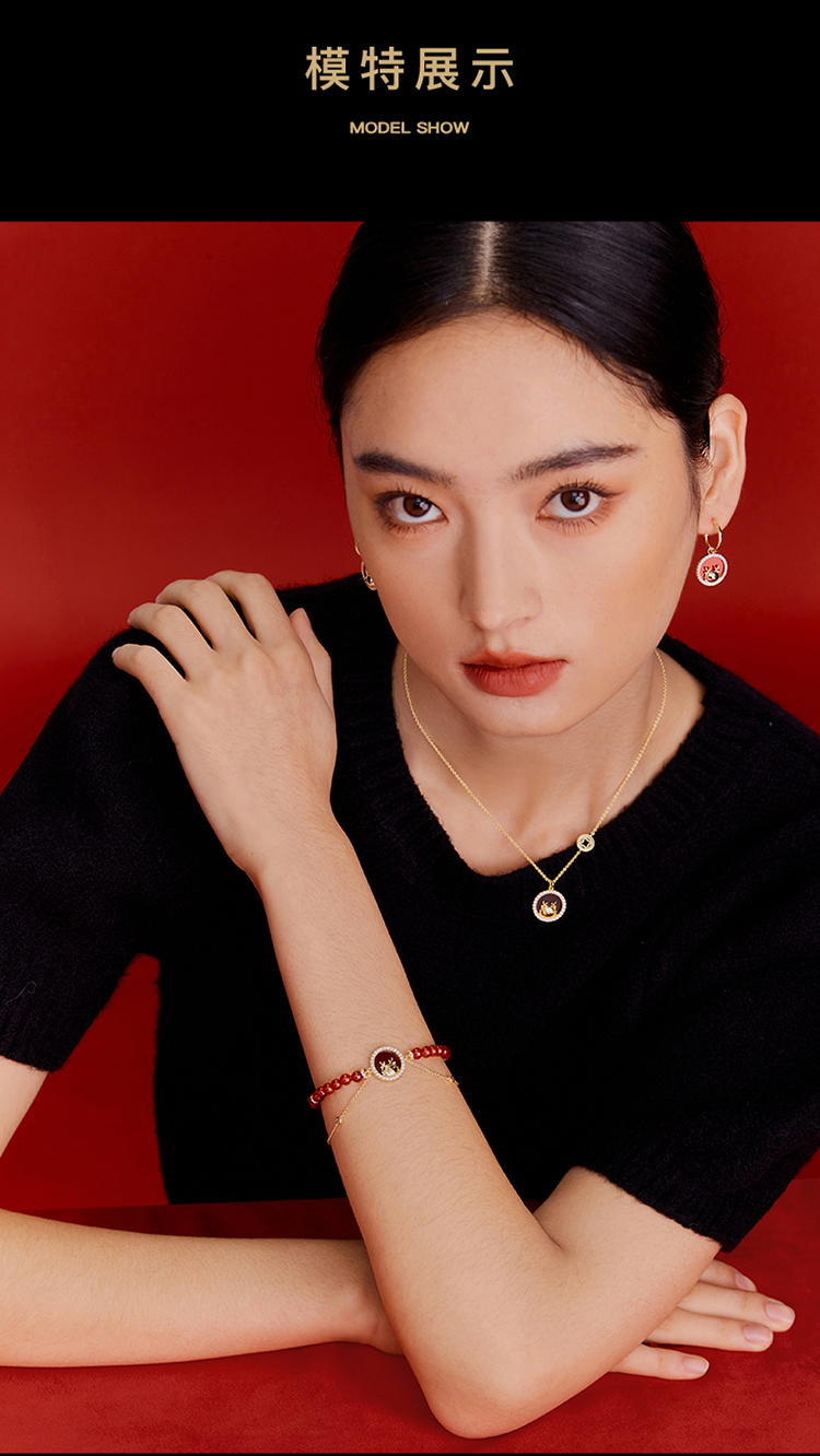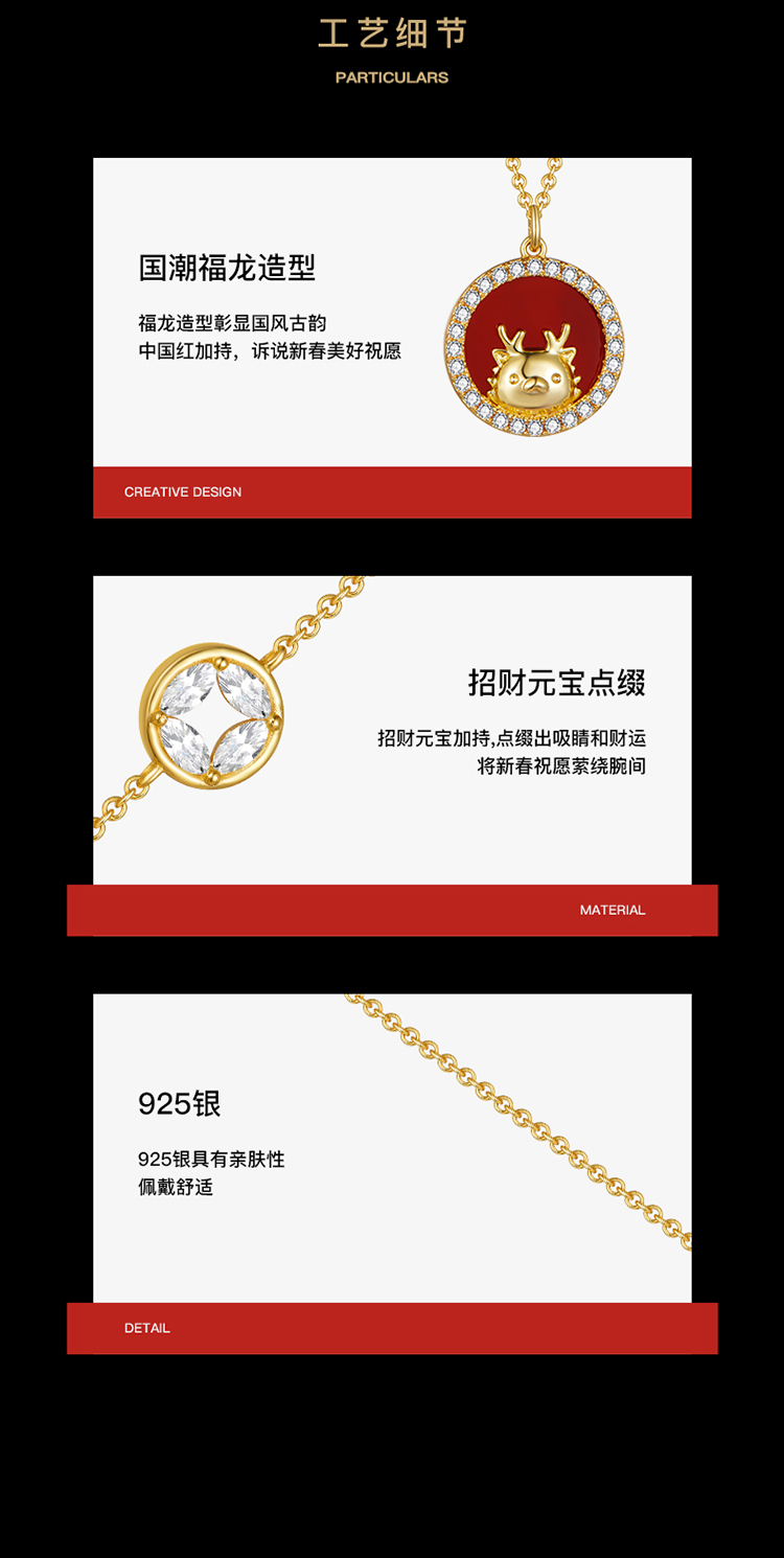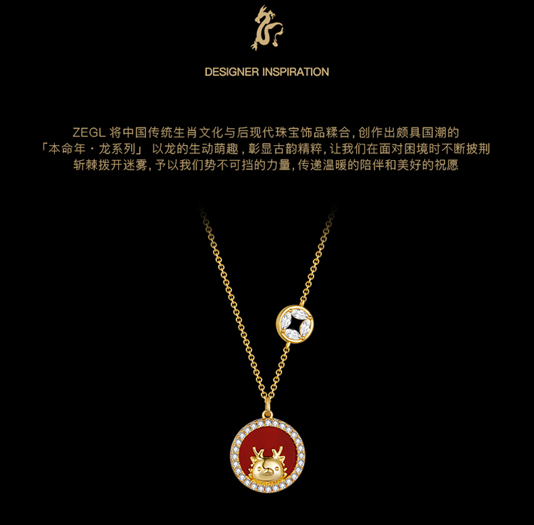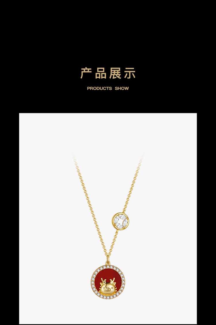 ZEGL设计师本命年龙系列925银红玛瑙圆牌项链女生锁骨链新年礼物