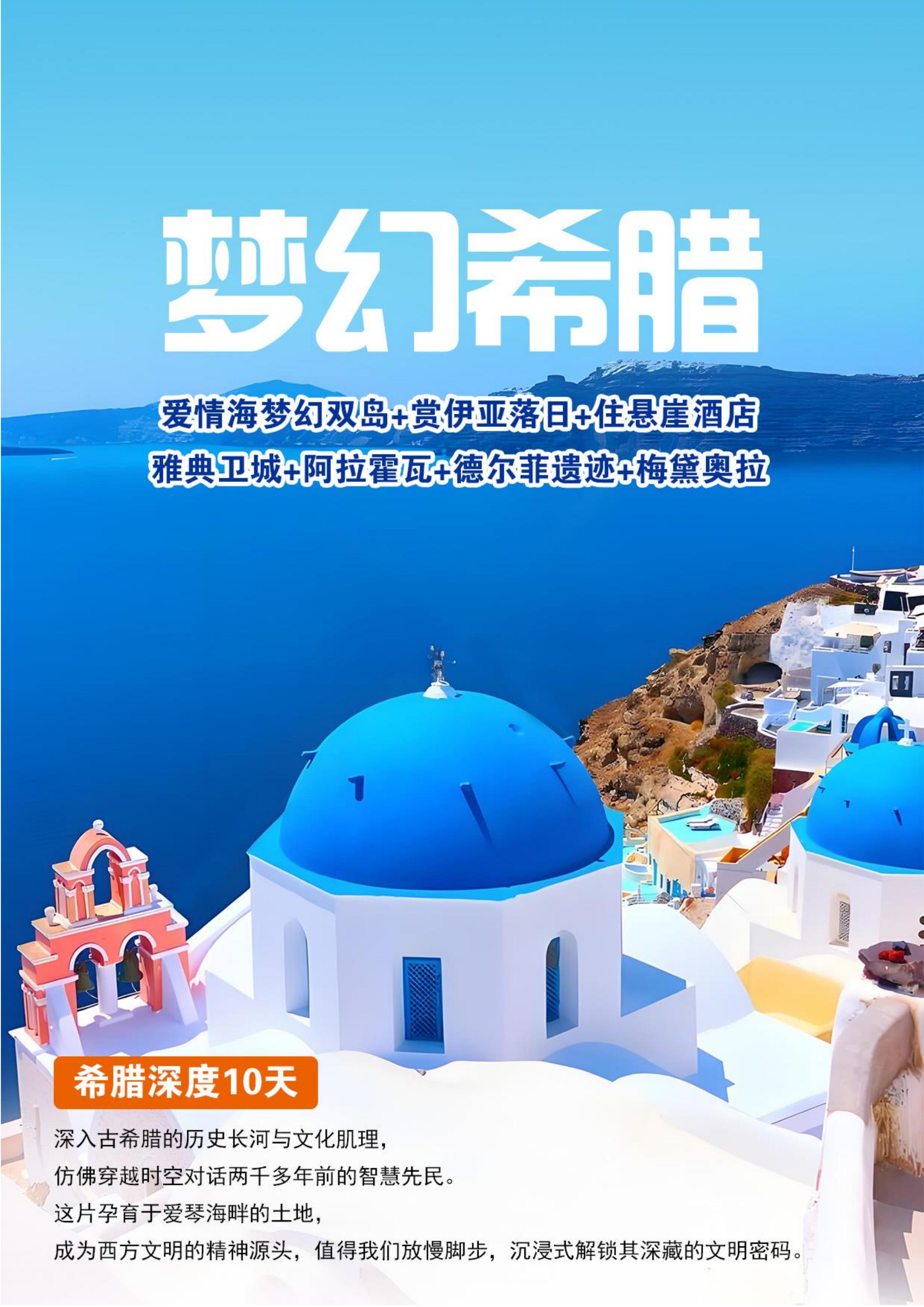 【五一】<希腊10天深度浪漫之旅(20人精品团)>爱情海梦幻双岛+赏伊亚落日+住悬崖酒店+雅典卫城+阿拉霍瓦+德尔菲遗迹+