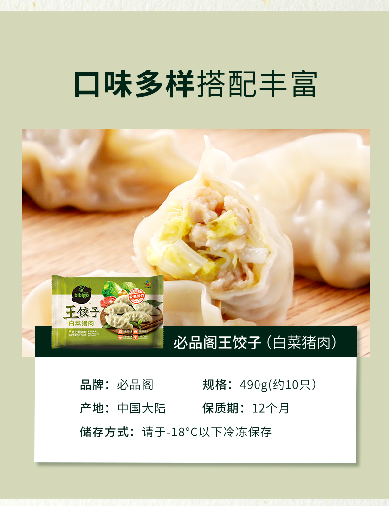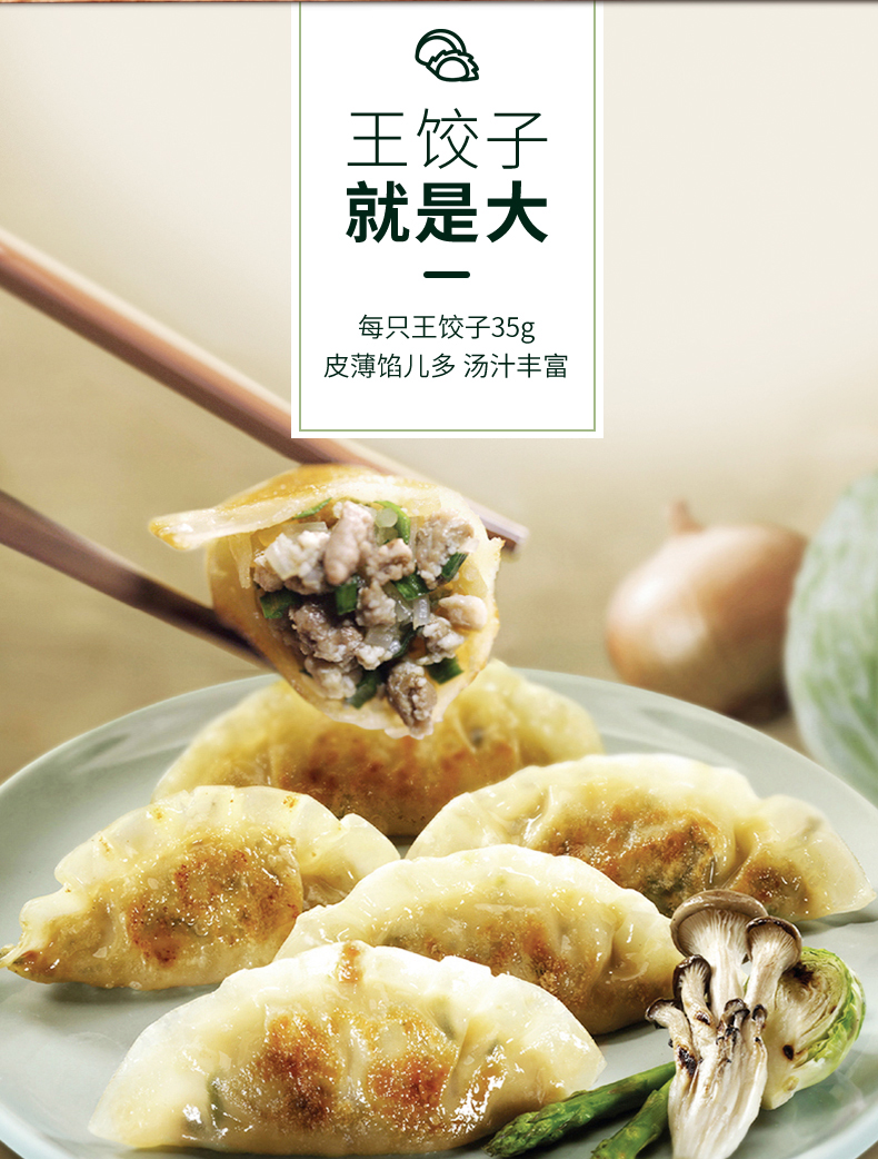 必品阁 王饺子白菜猪肉王饺子490g 蒸煎煮炸 样样出色 72小时发货