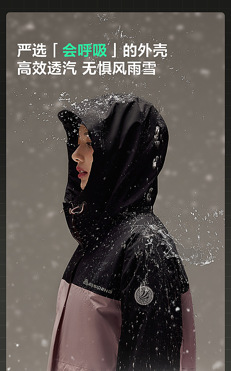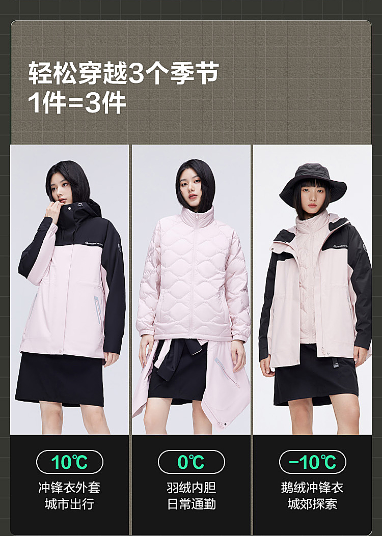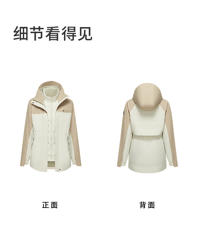 B30132402【鹅绒】波司登户外三合一羽绒秋季防水夹克登山露营外女士冲锋衣